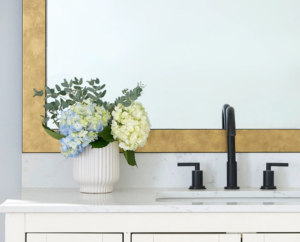 MirrorMate frames are compatible with with almost all rectangular mirrors, including those that rest on a backsplash or touch a side wall, and are even designed to conceal any existing clips and channels.