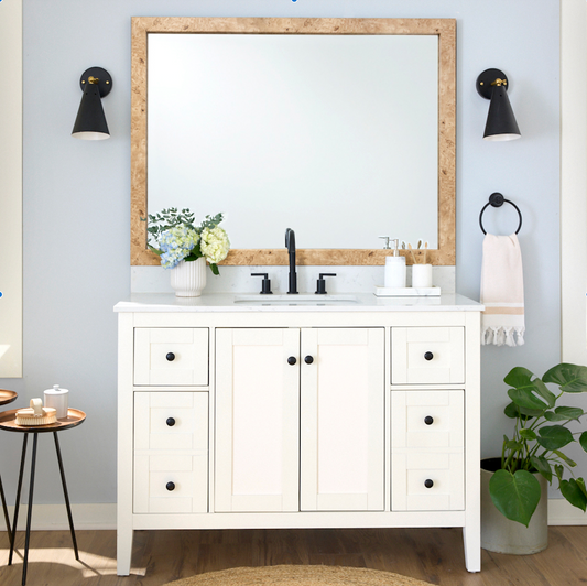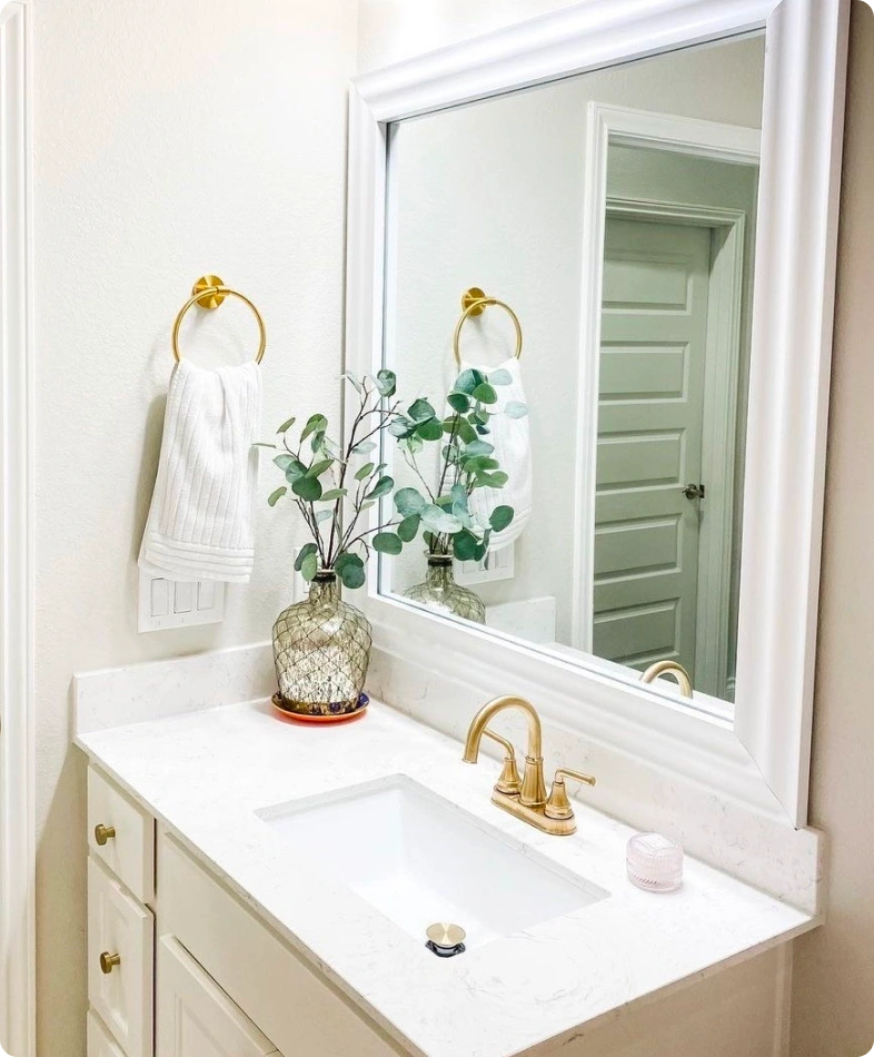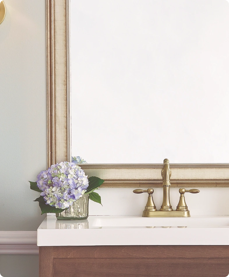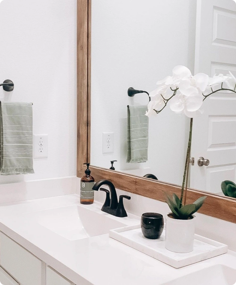 Instantly upgrade new construction or dated, decaying bathroom mirrors with our easy DIY mirror frame kit.