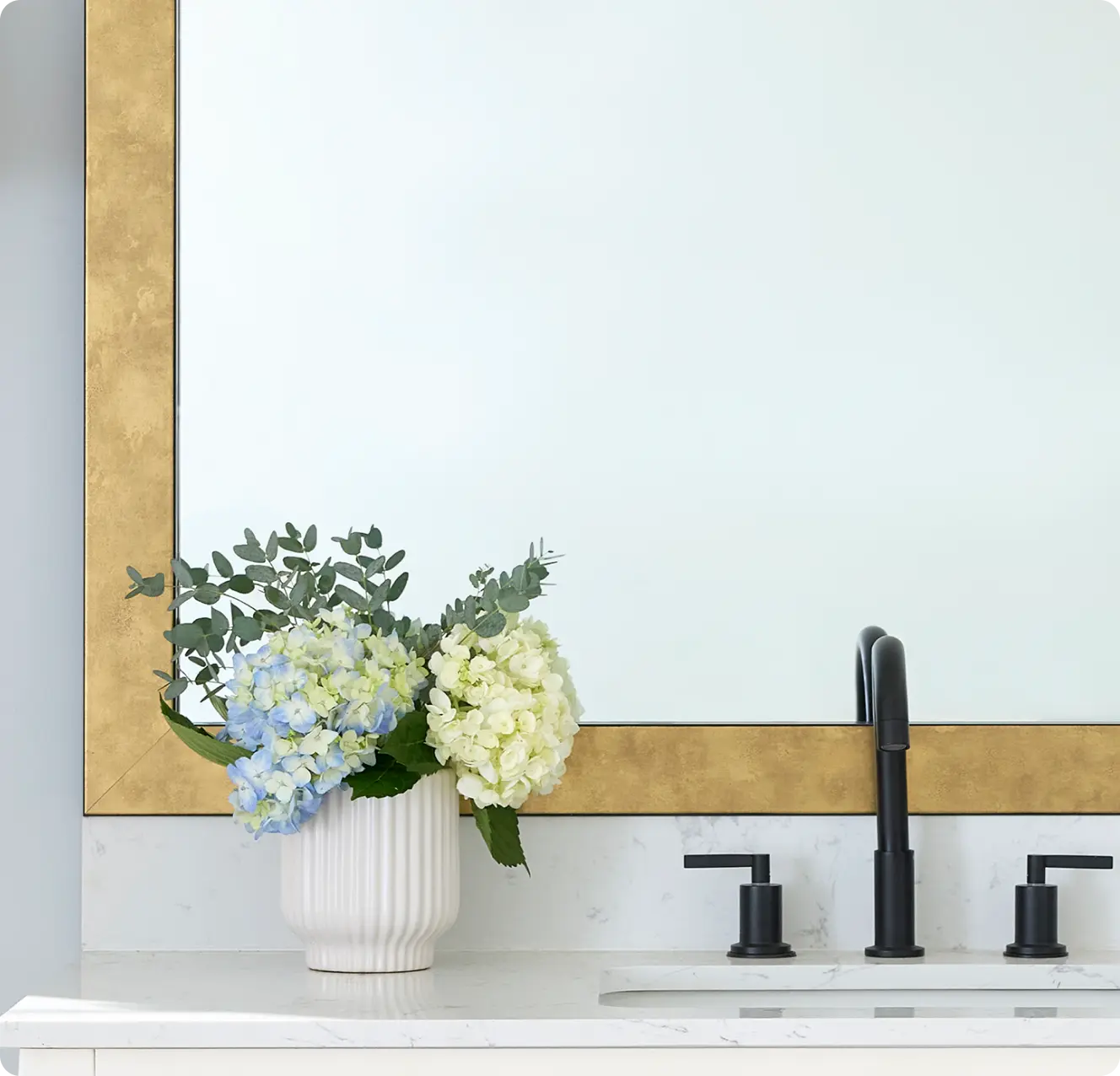 Whether your mirror sits on a backsplash, runs into a wall, or has clips on it, our mirror frames are designed to fit
