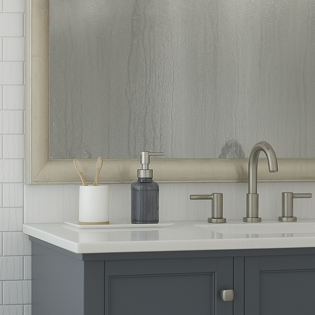 MirrorMate frames cover those dark edges—no demo, no power tools—just a clean, polished finish that instantly elevates your builder-grade mirror.