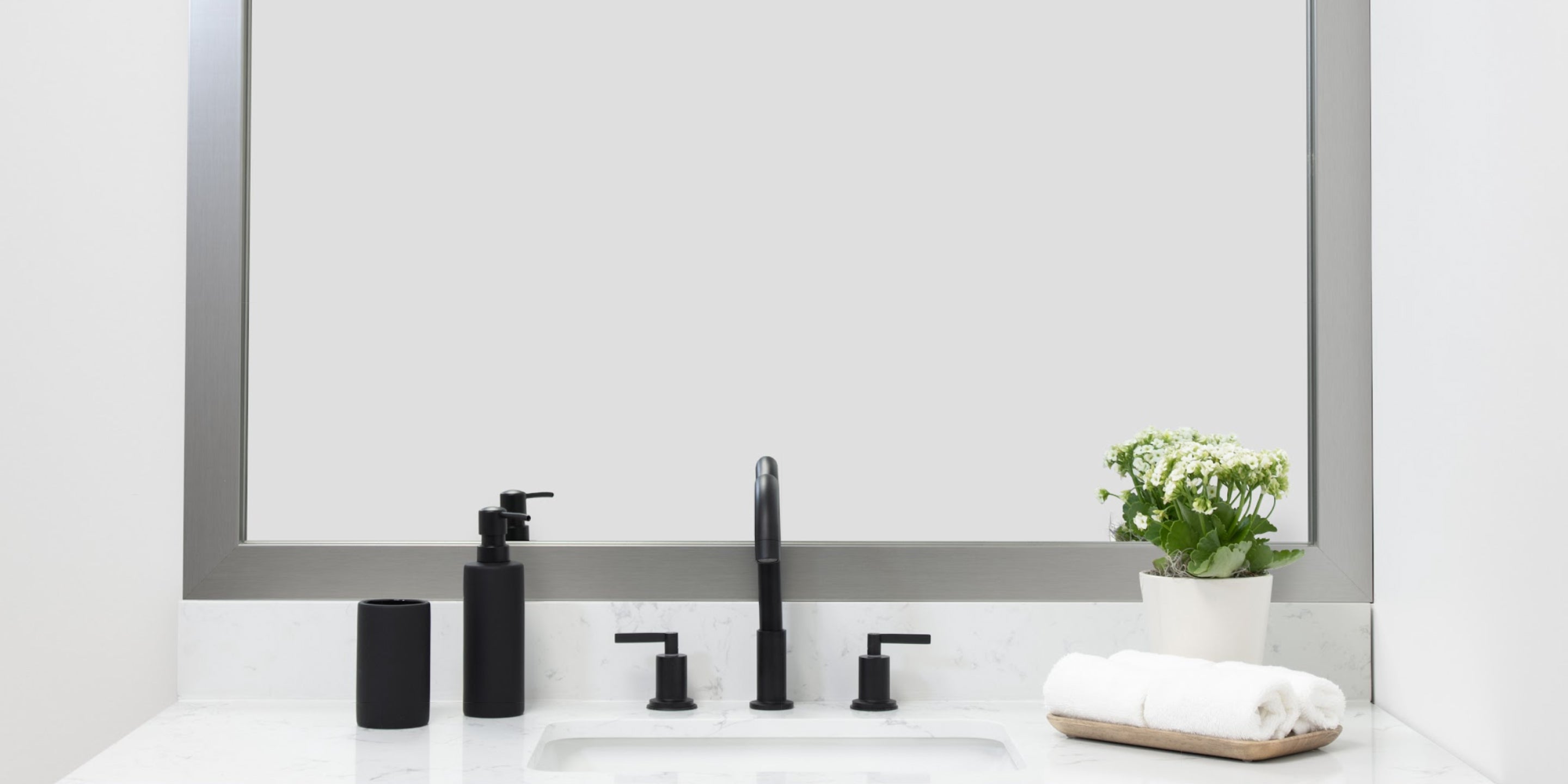 The perfect facelift for new construction, dated, or decaying bathroom mirrors.