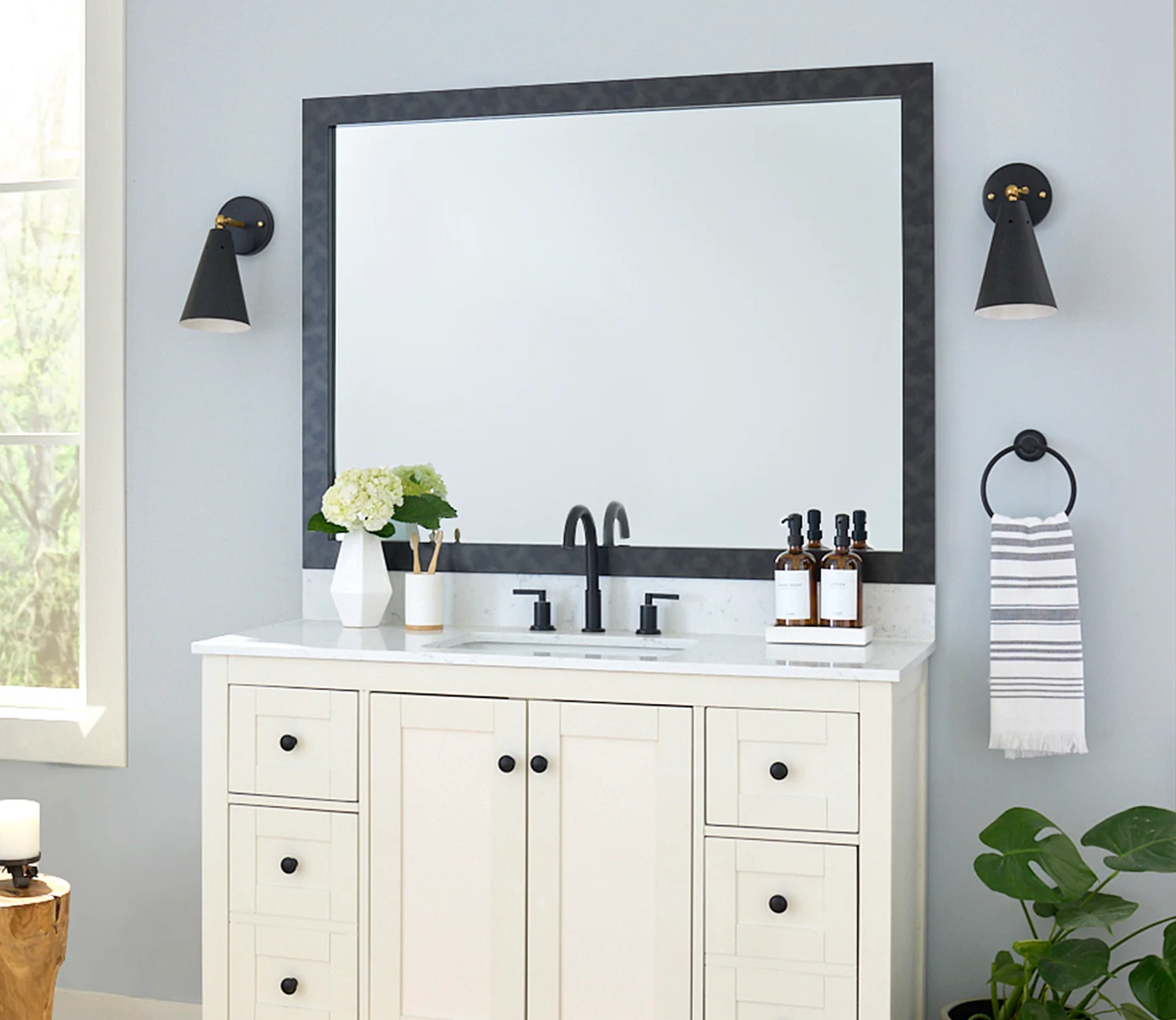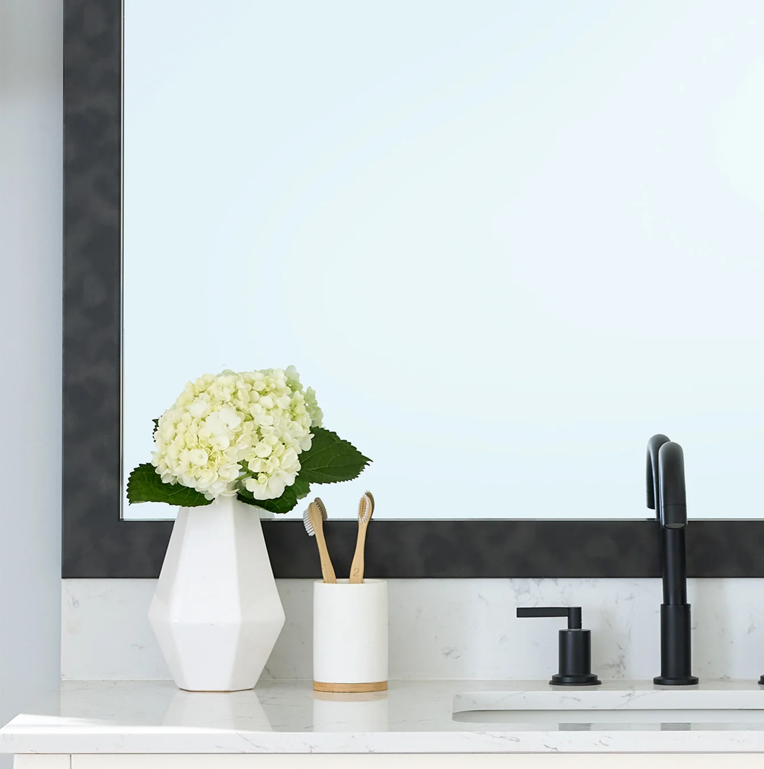 The perfect facelift for new construction, dated, or decaying bathroom mirrors.