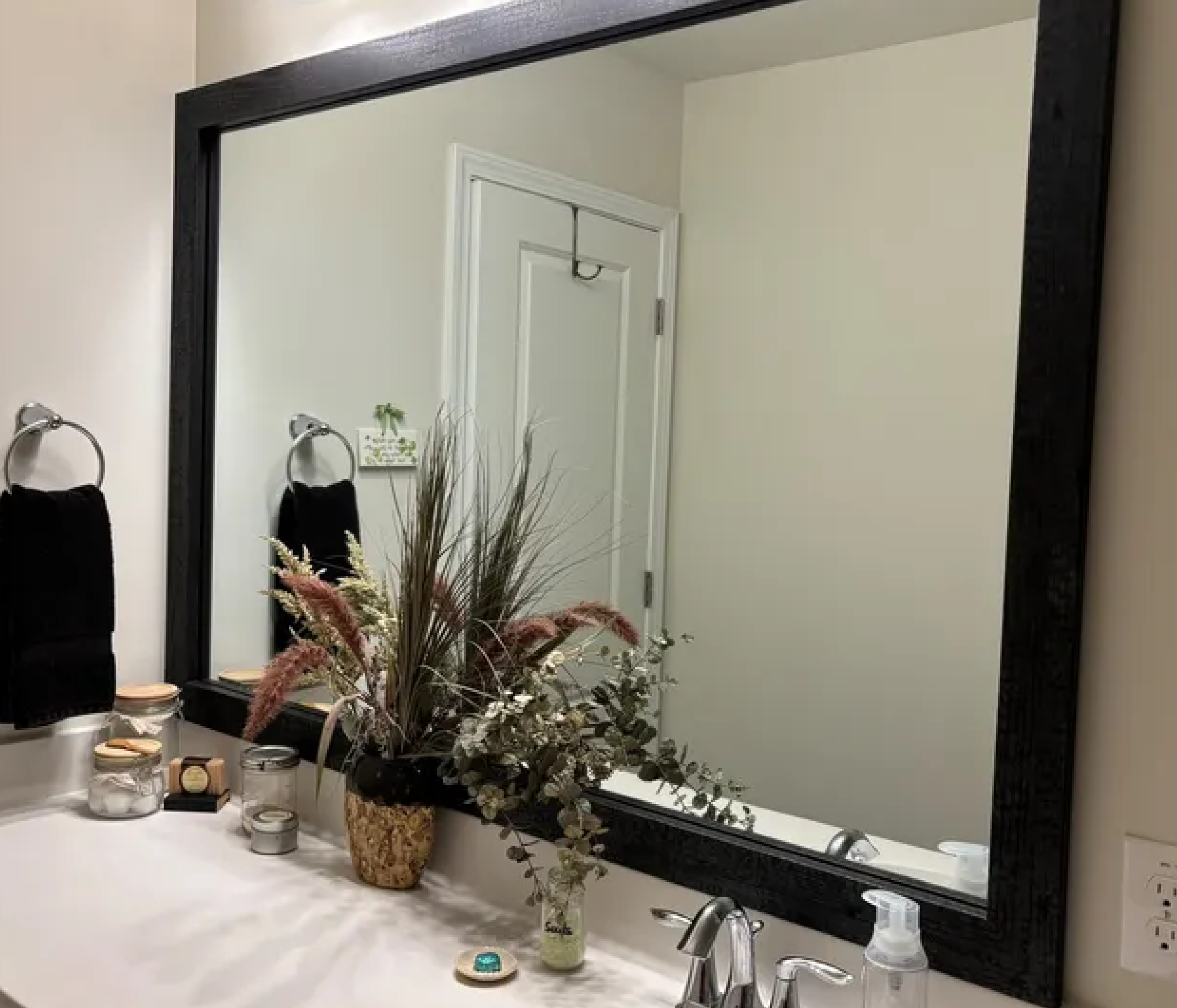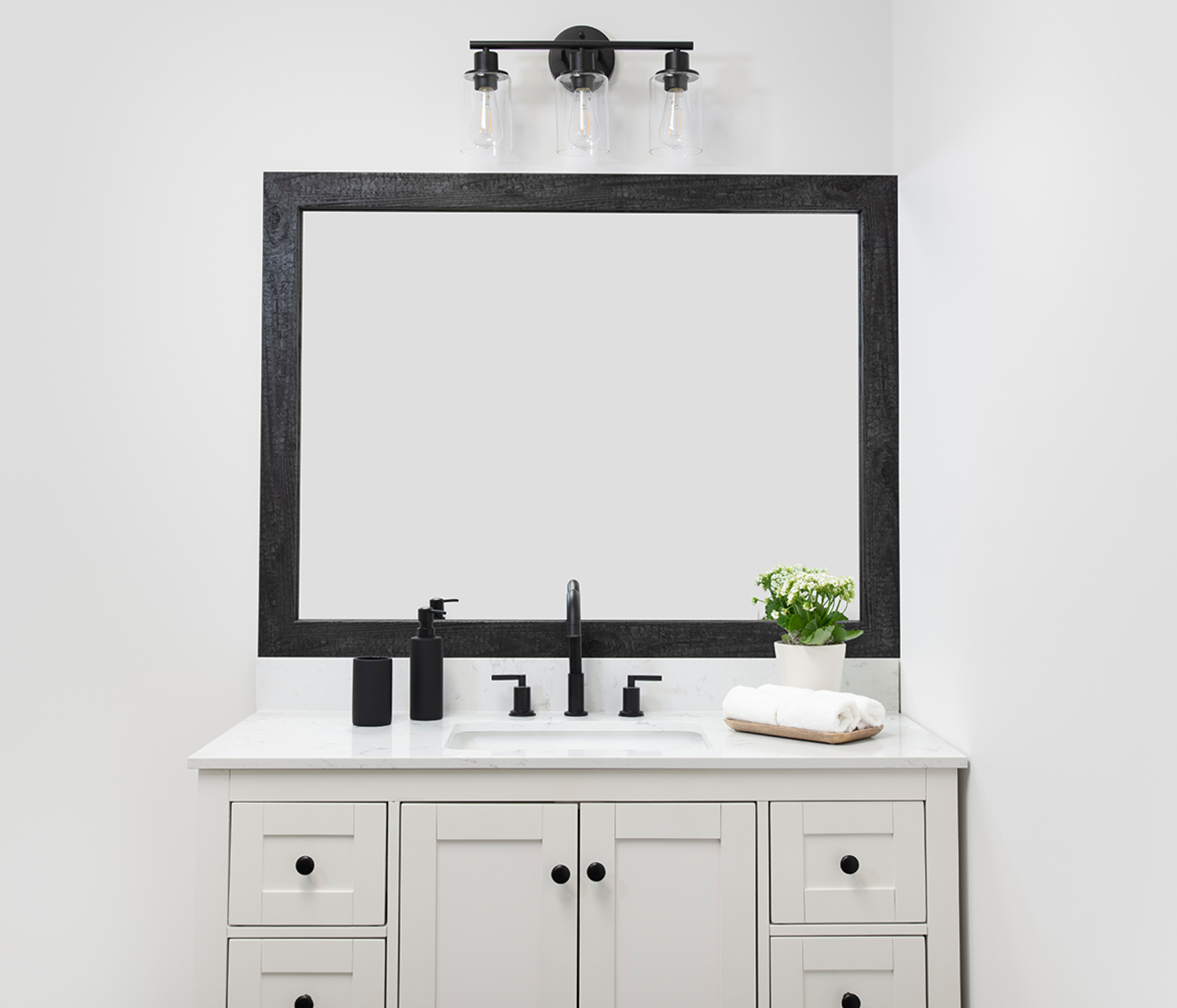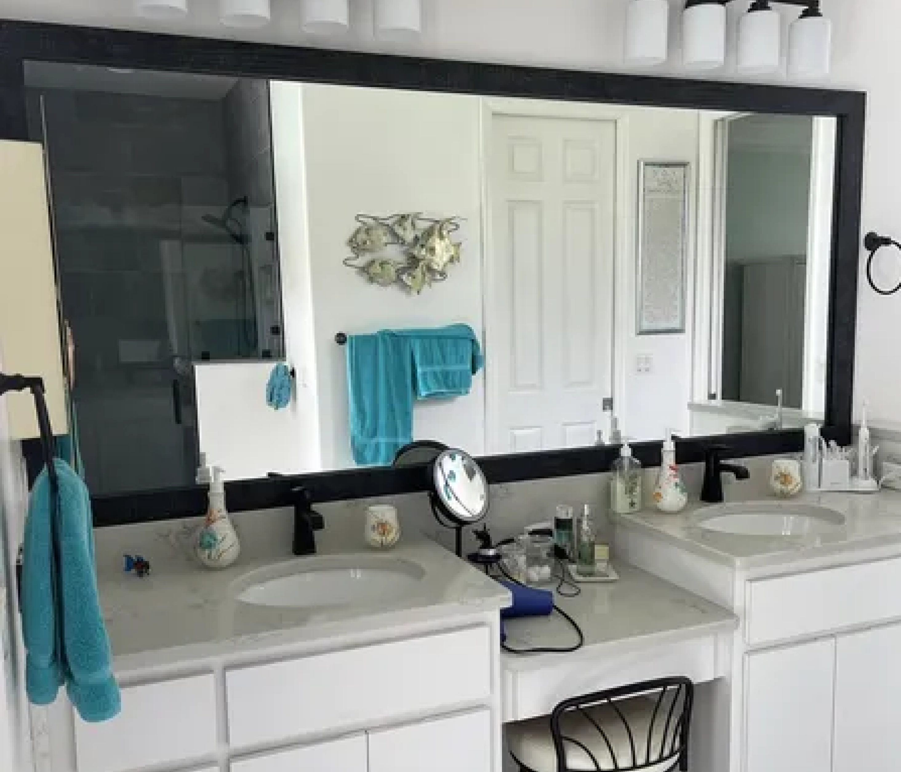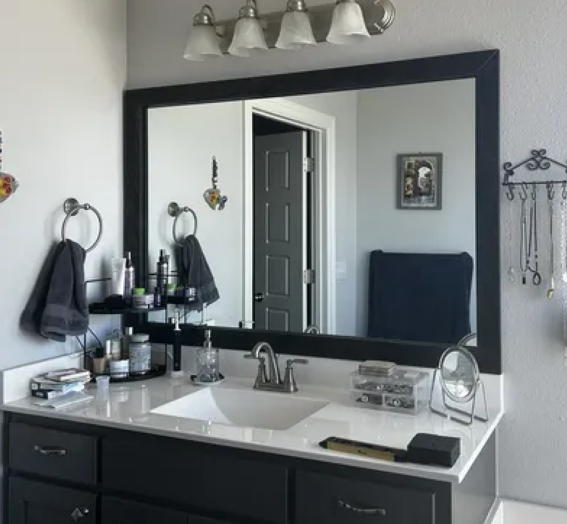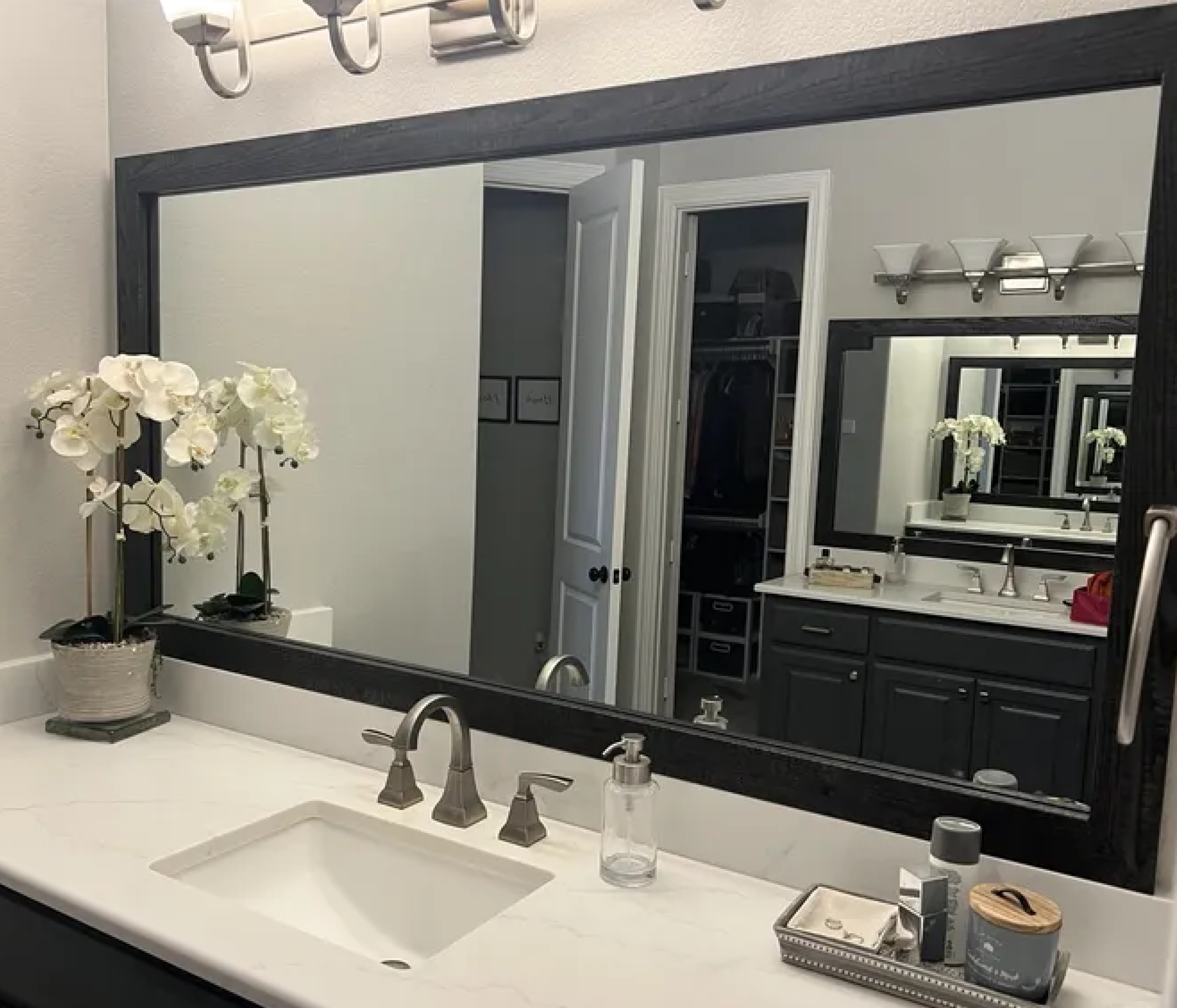 The perfect facelift for new construction, dated, or decaying bathroom mirrors.