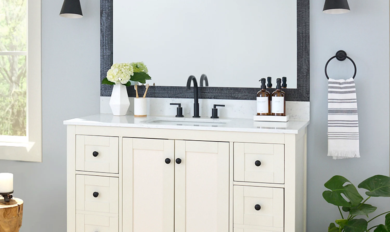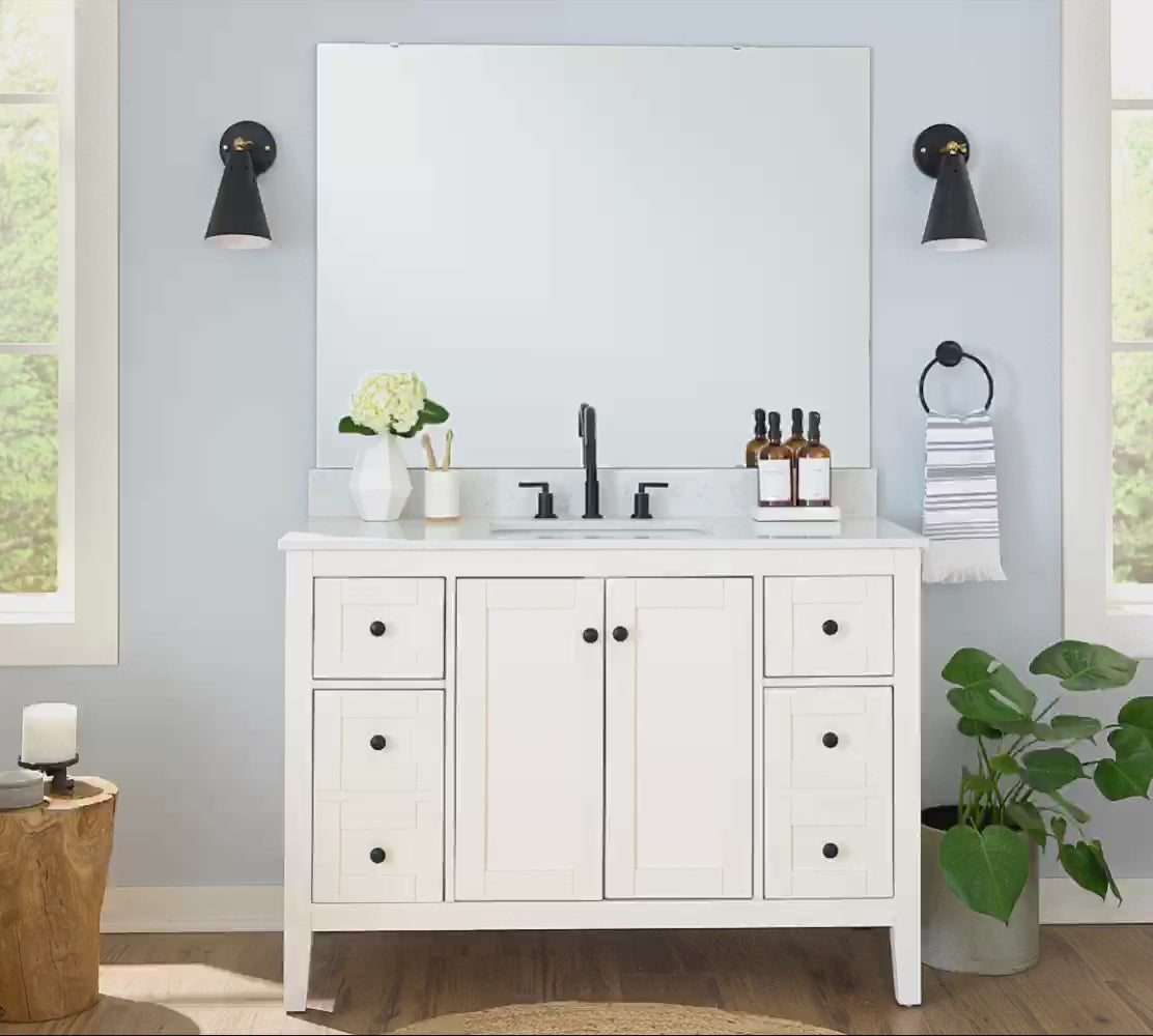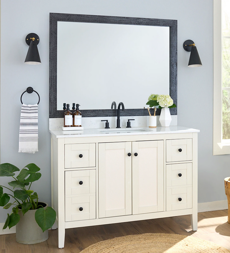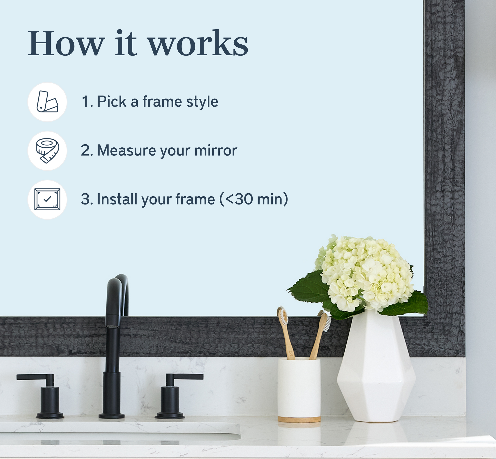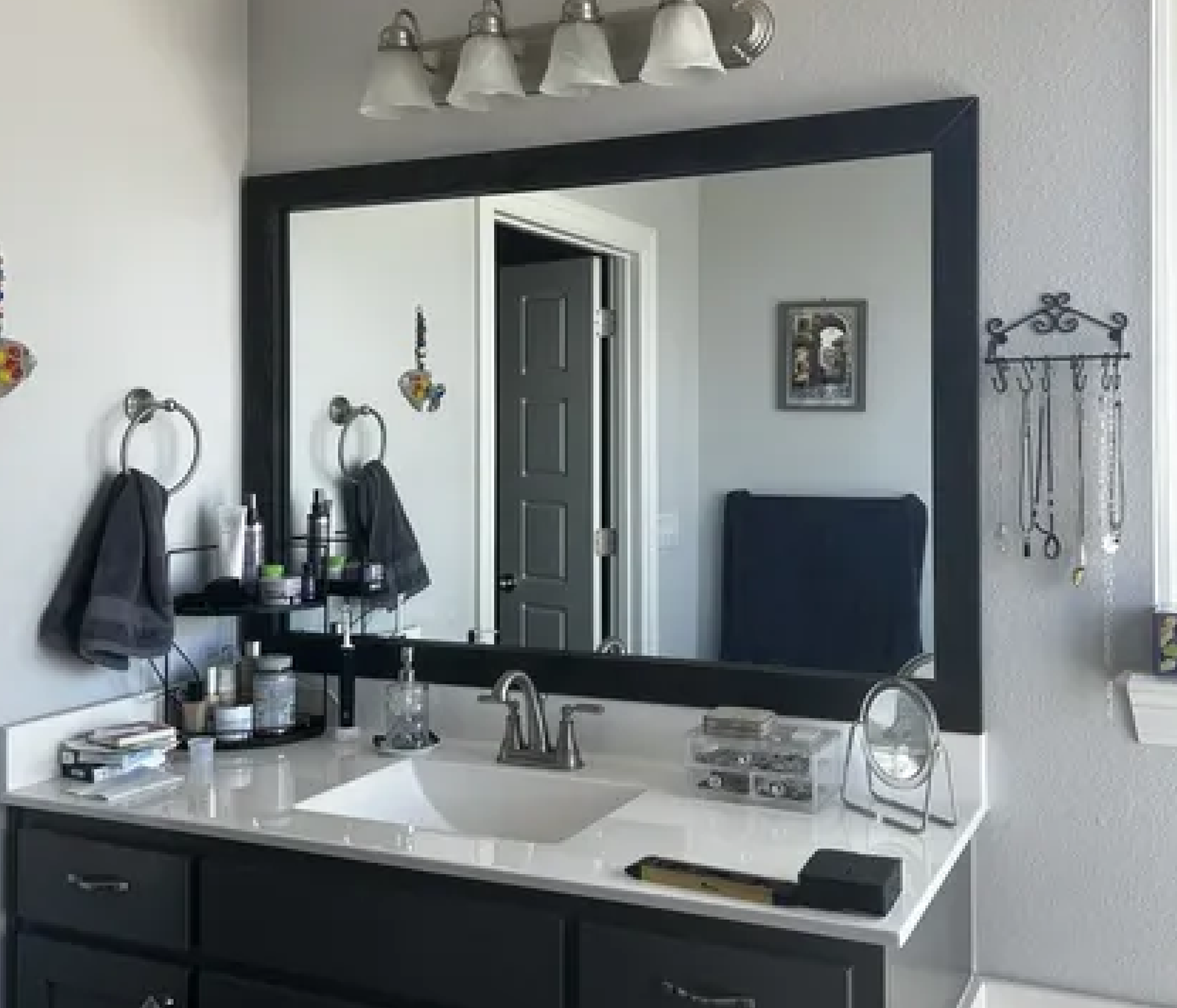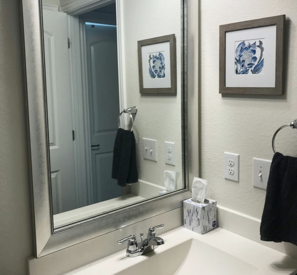 The perfect facelift for new construction, dated, or decaying bathroom mirrors.