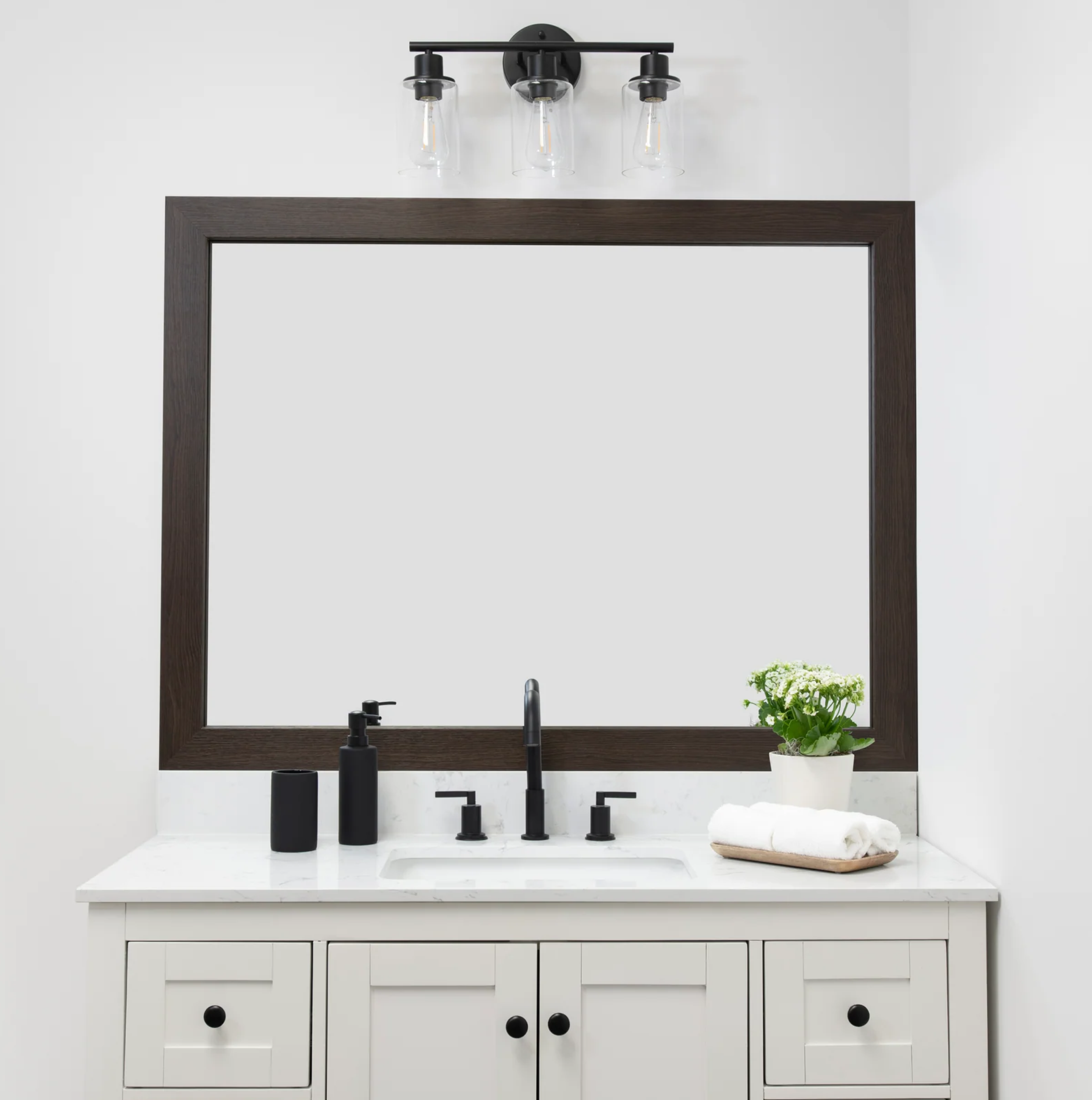 Compare your color options to your bathroom hardware. Frames that are in the same color family as your hardware are a great choice!