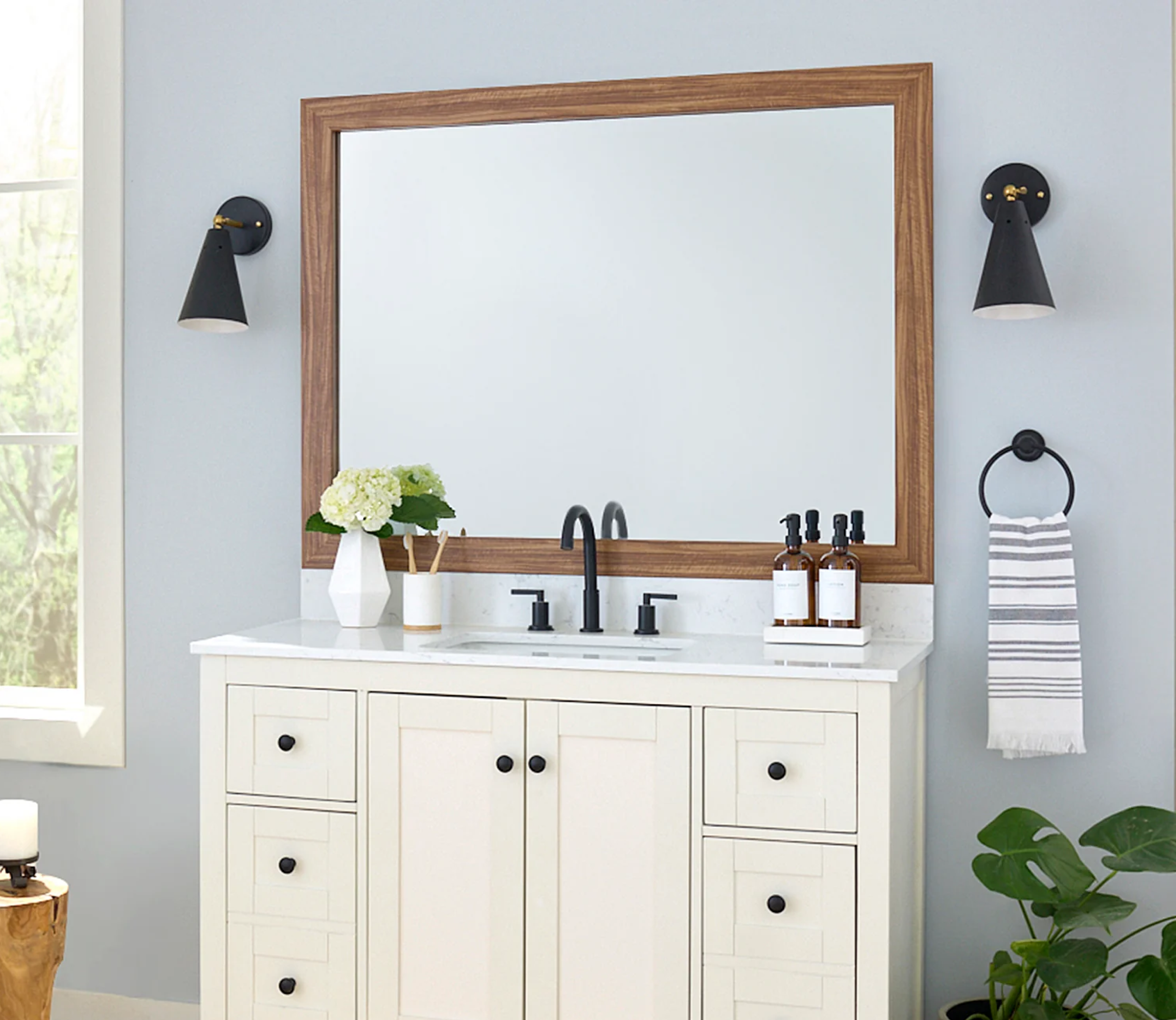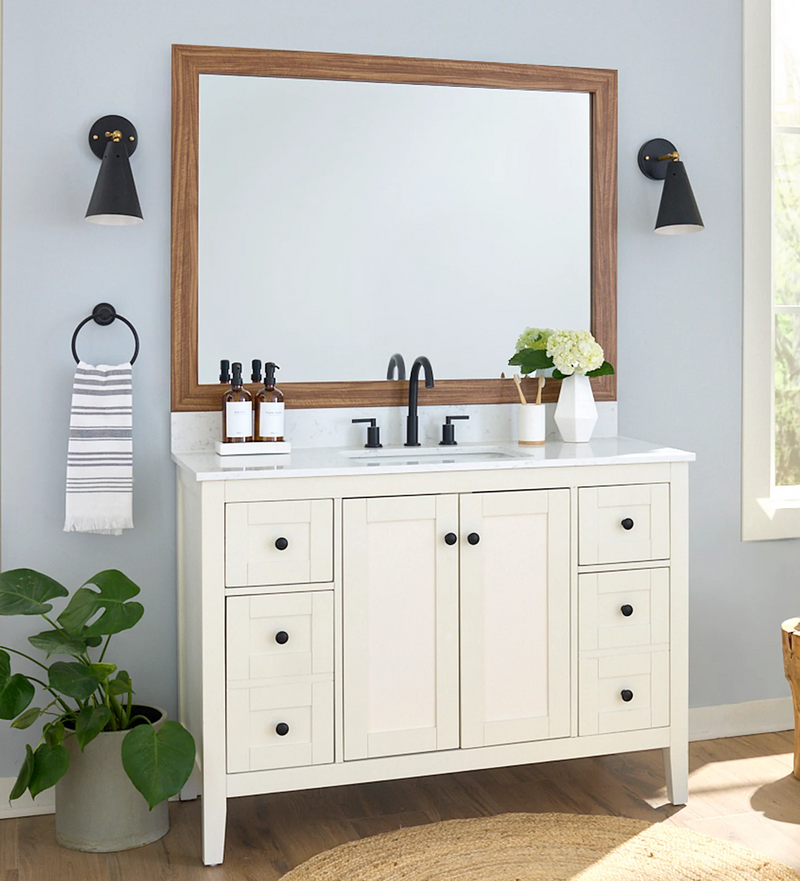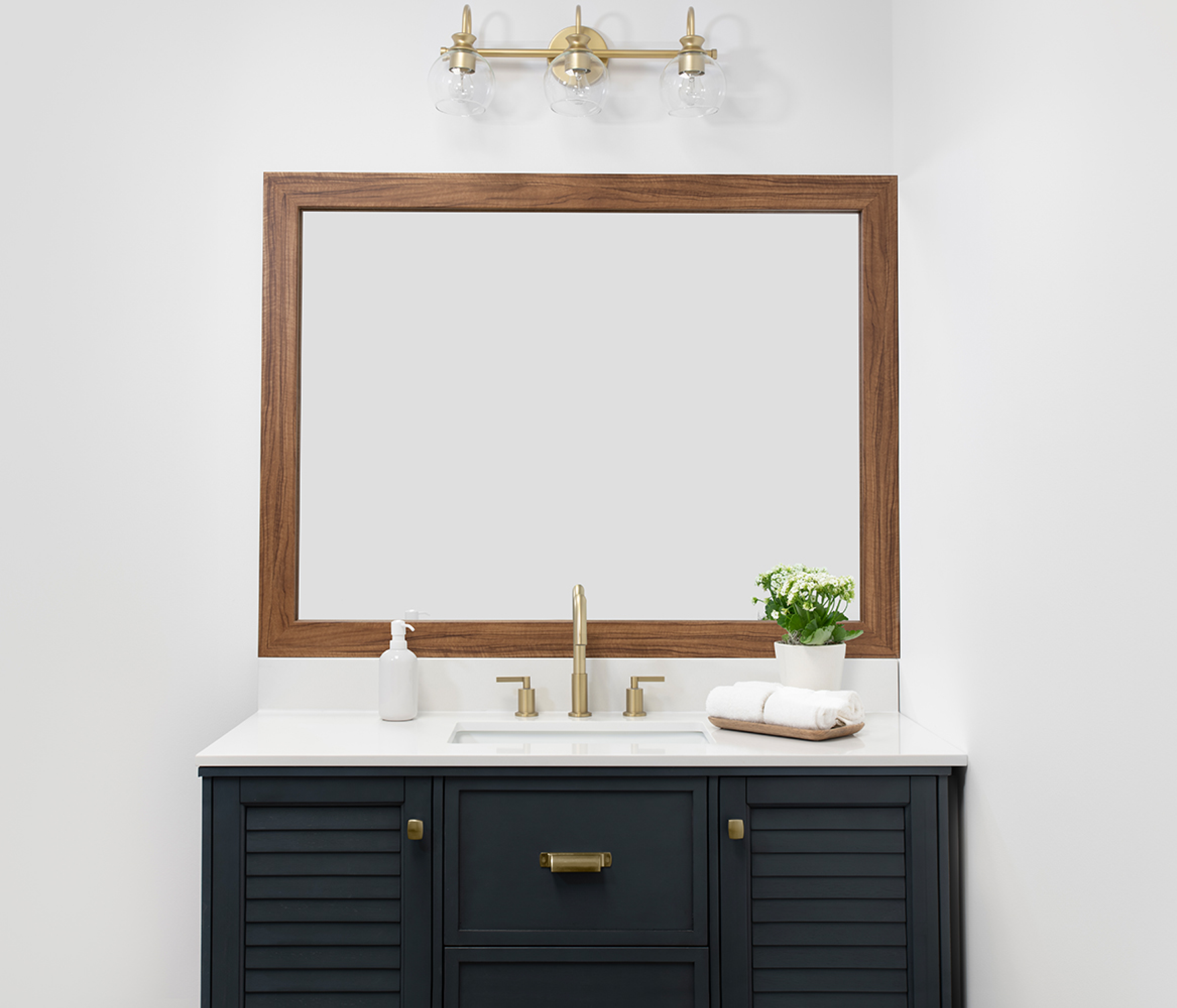 The perfect facelift for new construction, dated, or decaying bathroom mirrors.