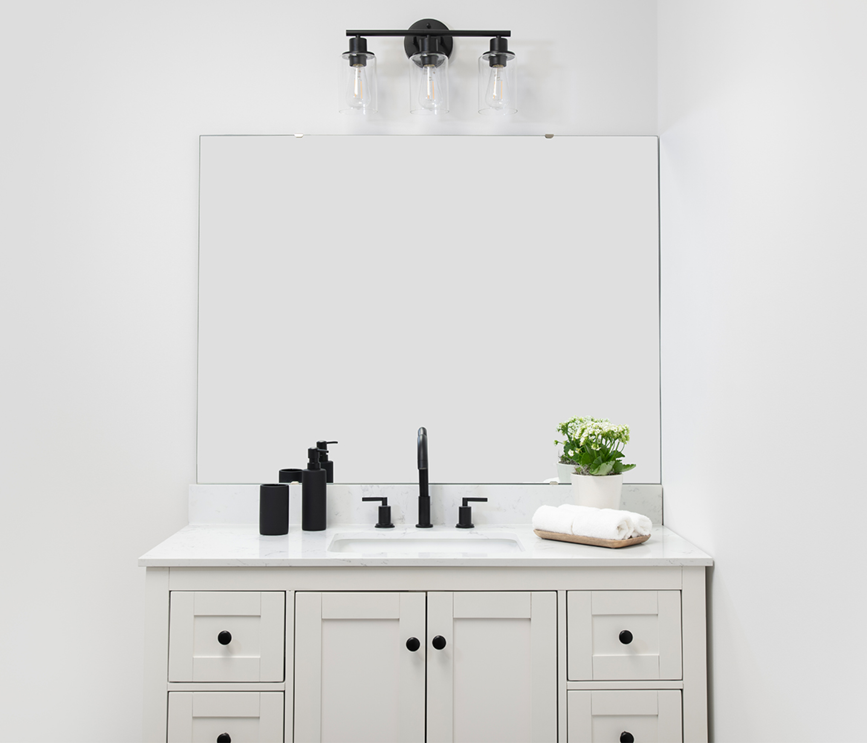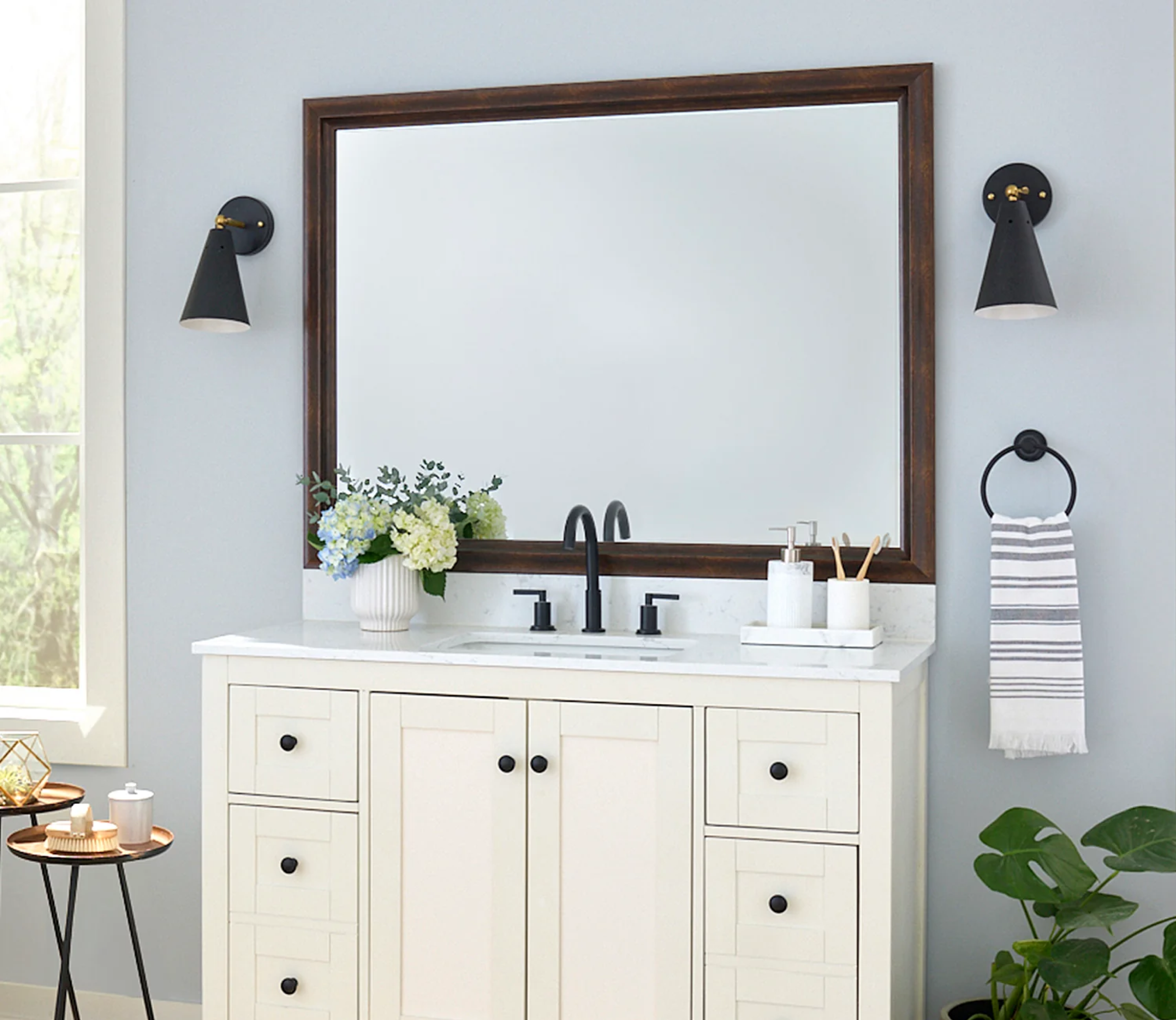 The perfect facelift for new construction, dated, or decaying bathroom mirrors.