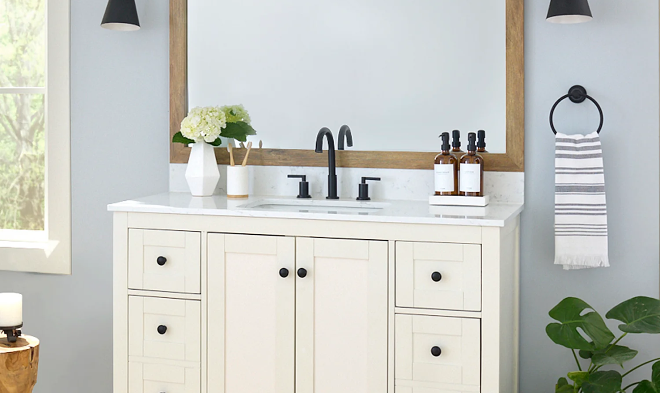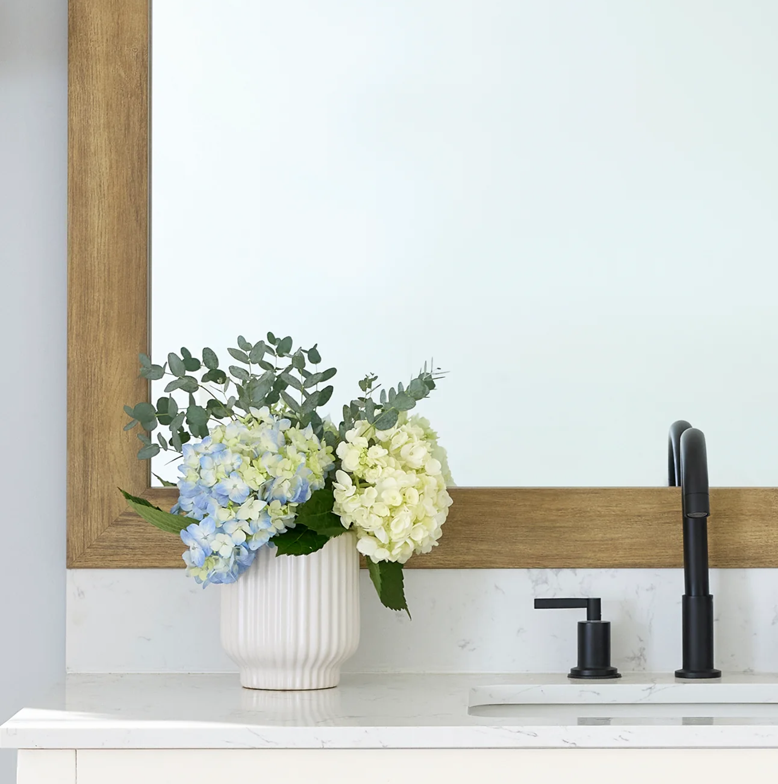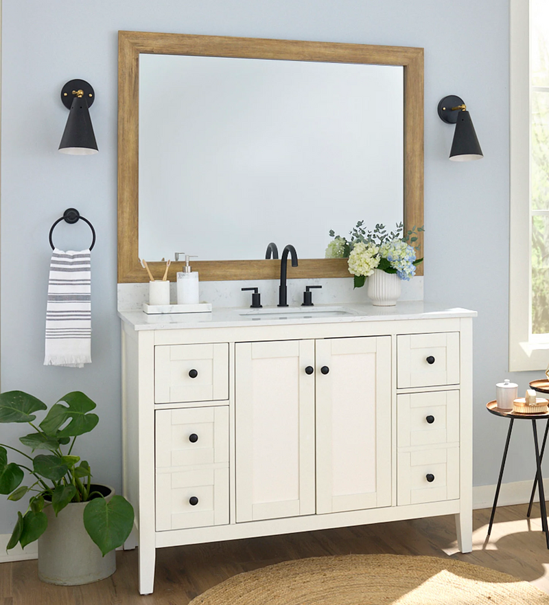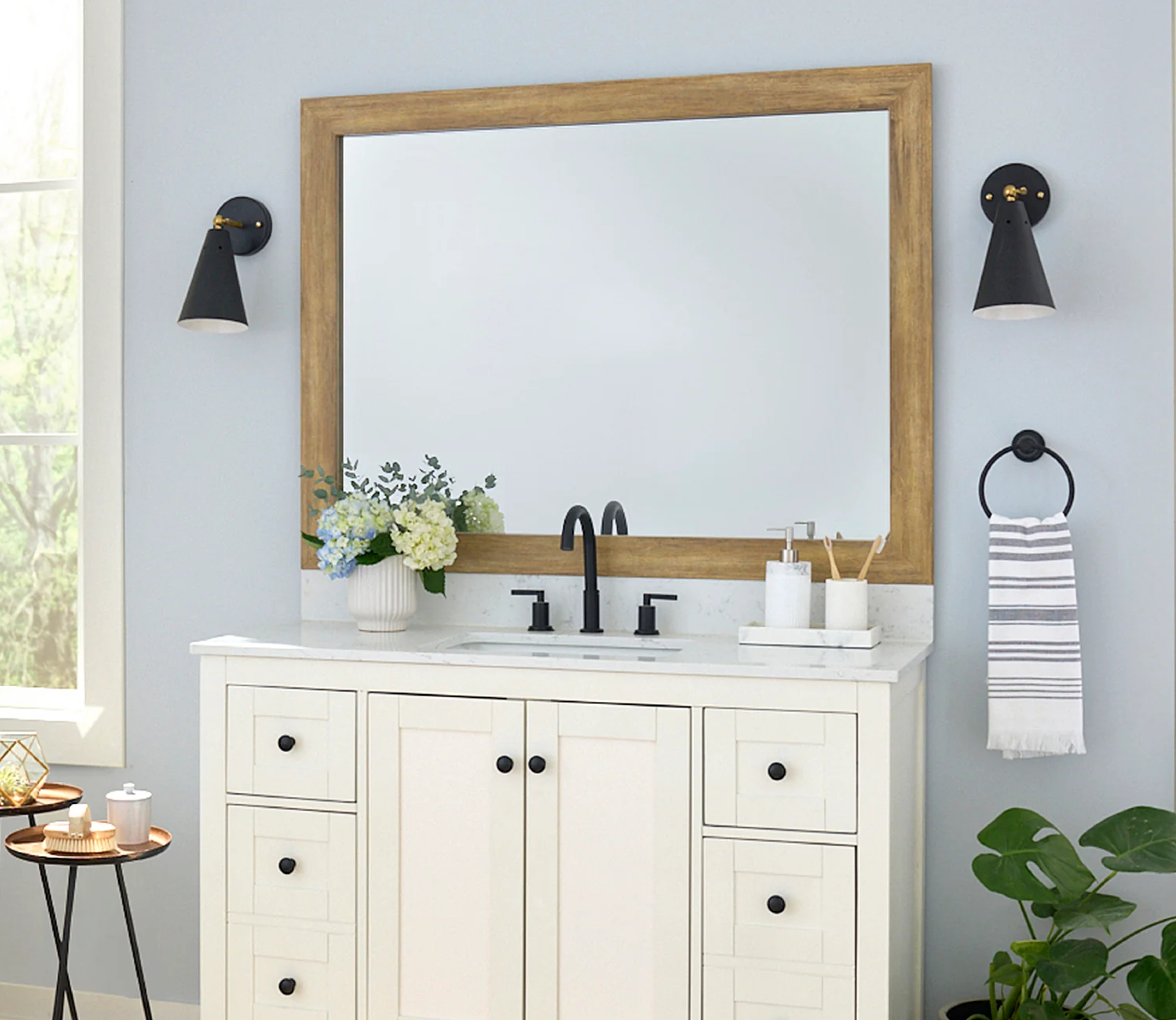 The perfect facelift for new construction, dated, or decaying bathroom mirrors.