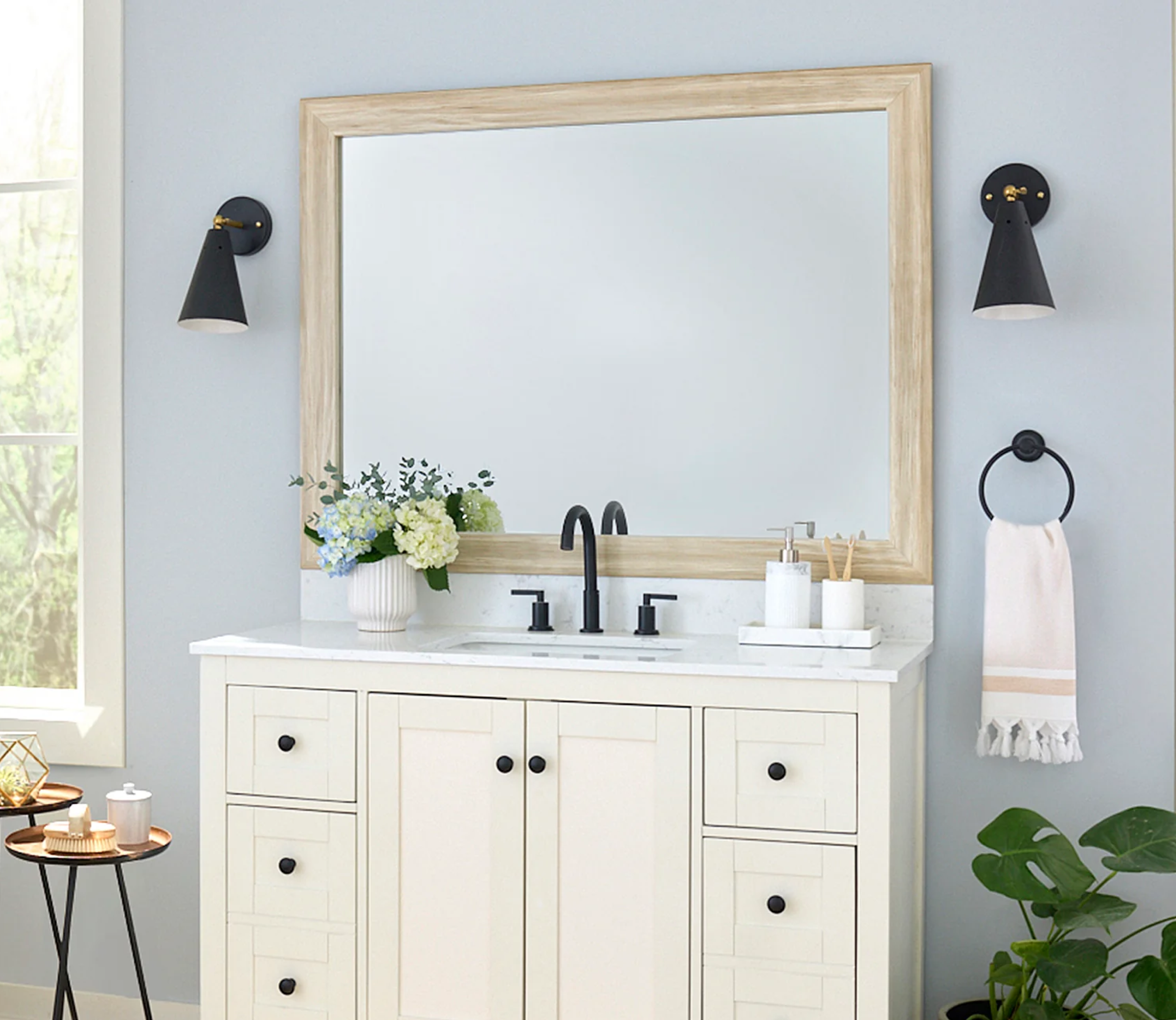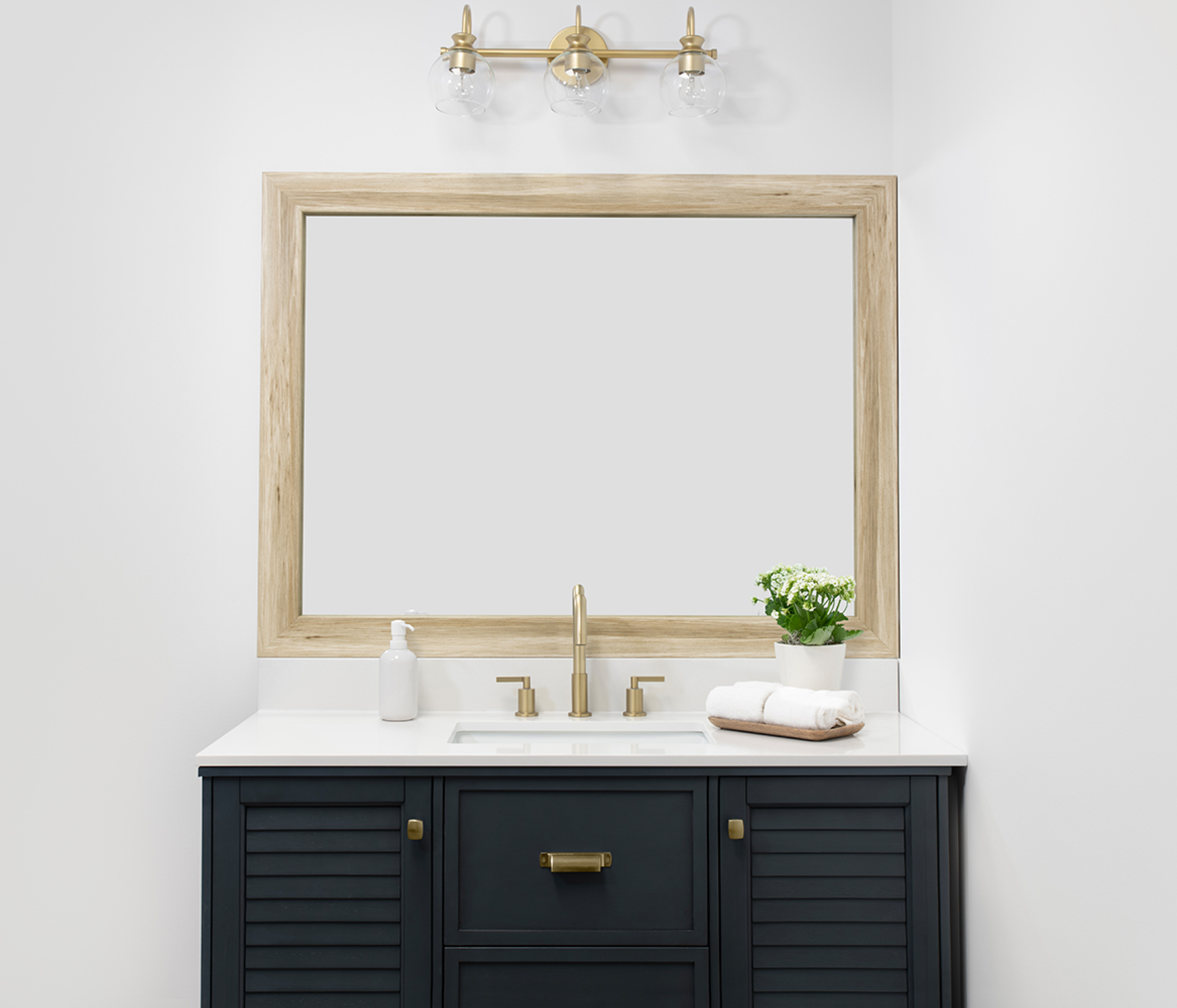 The perfect facelift for new construction, dated, or decaying bathroom mirrors.