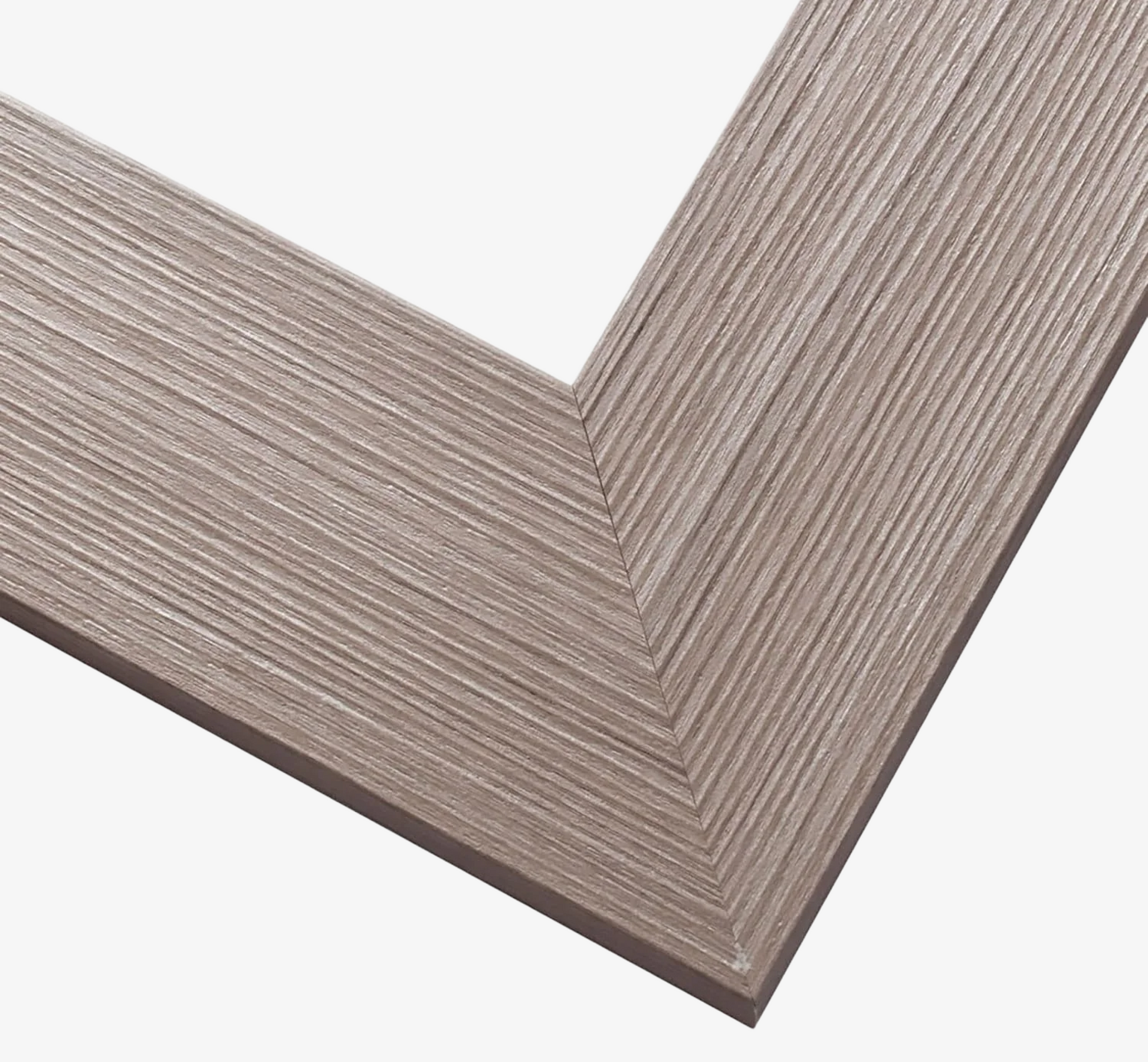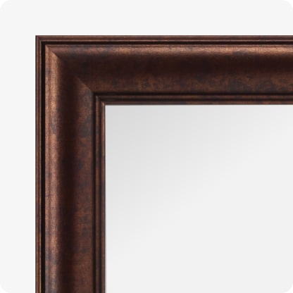 All frames are made of MDF: an environmentally-responsible, strong, non-warping wood-base. They are then finished with a moisture-impervious decorative wrap and seal. If for any reason your frame warps we’ll replace it! We also use an industrial grade adhesive so you can be sure your frame won’t fall off your mirror.