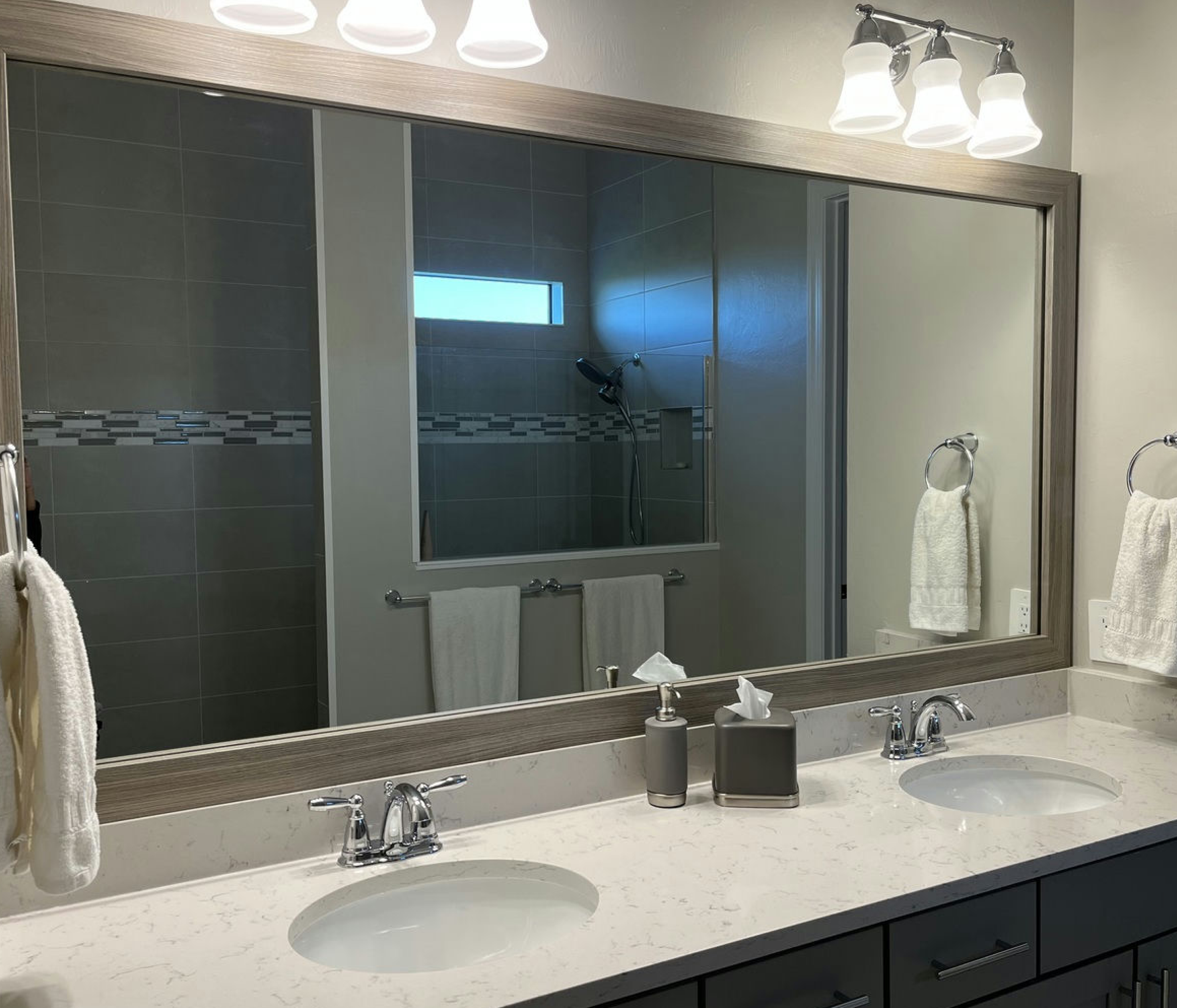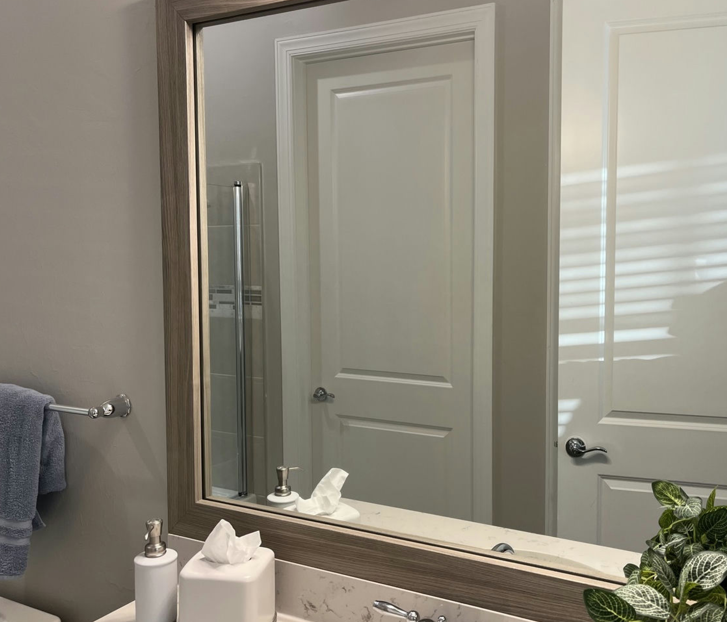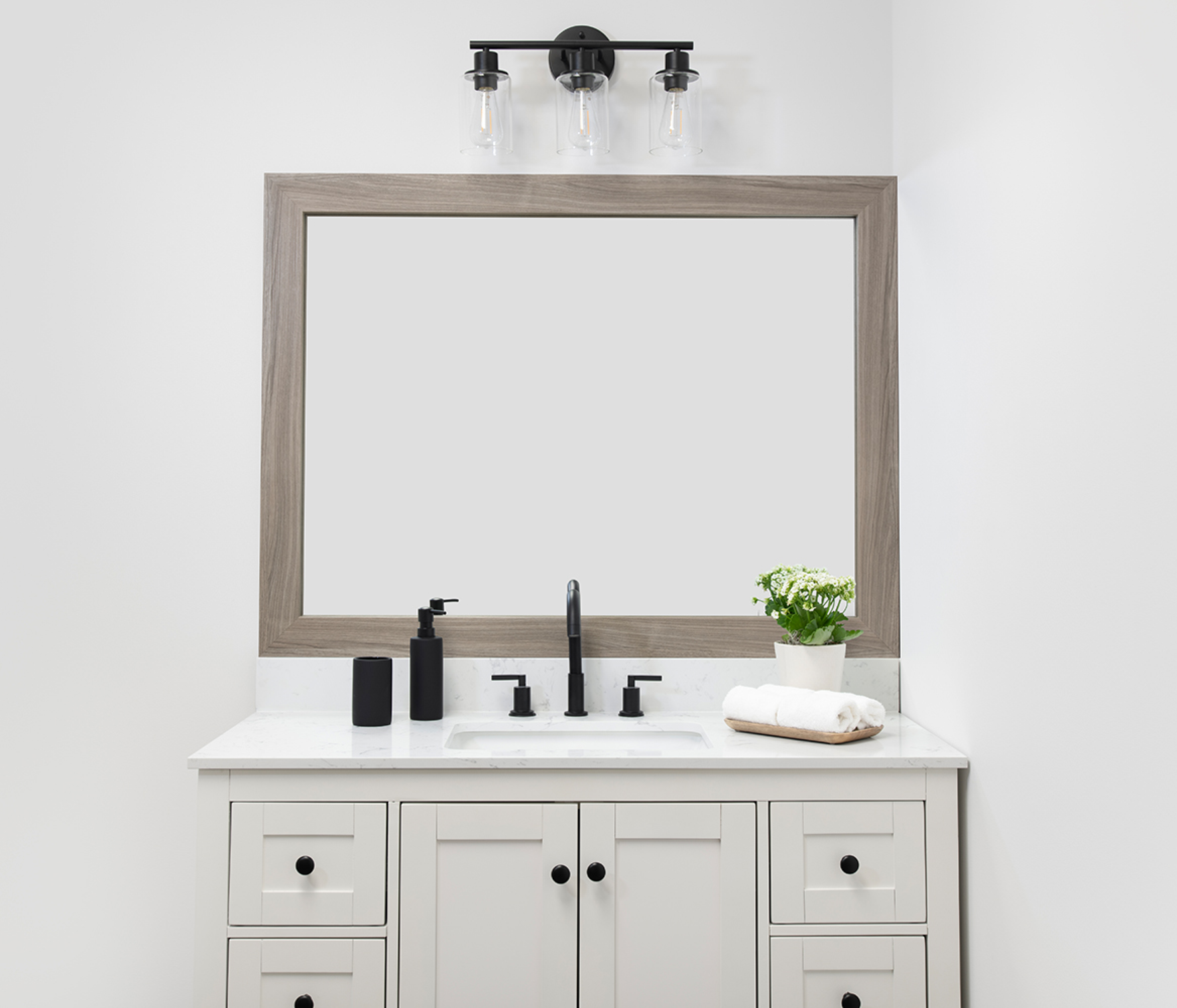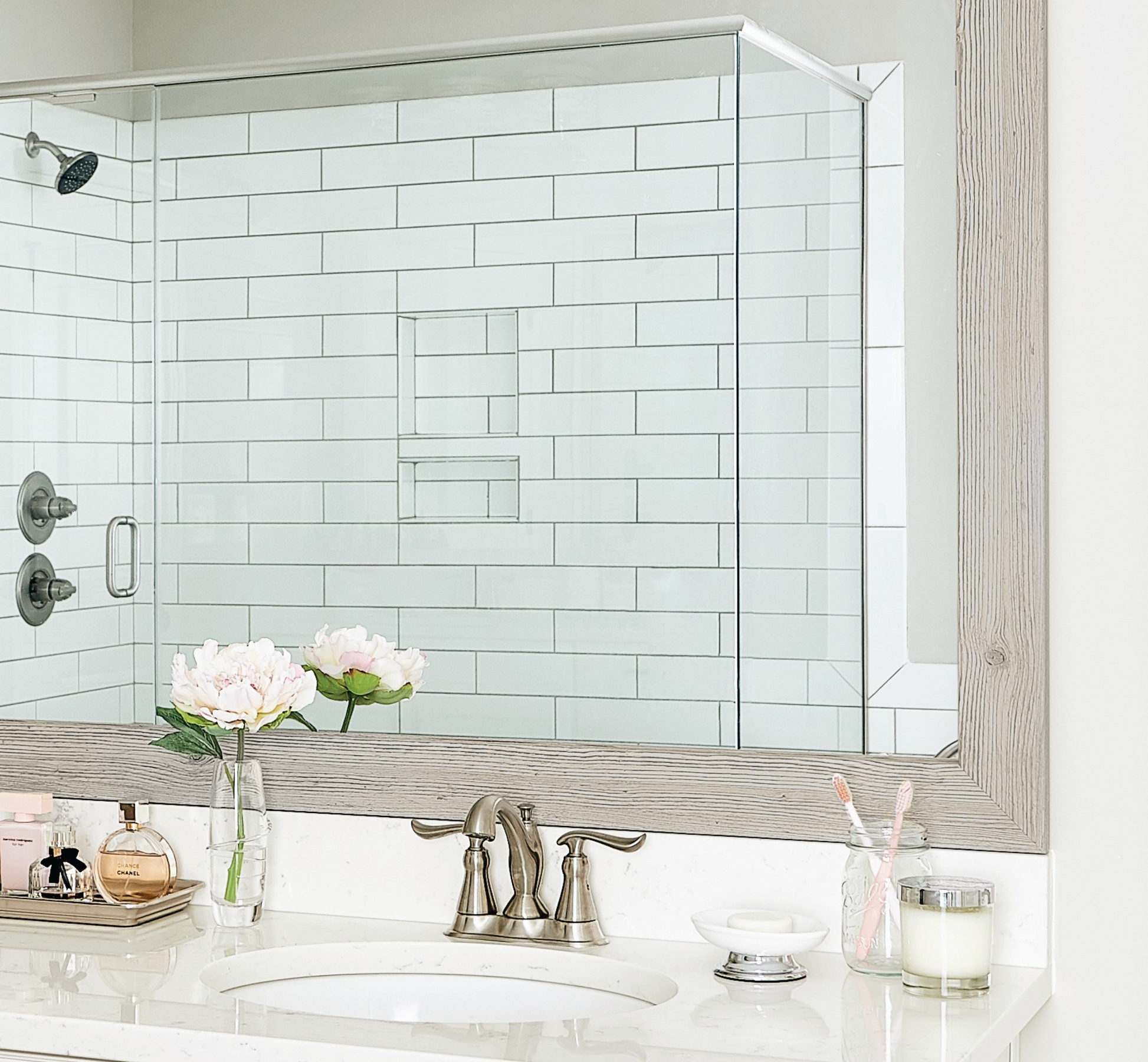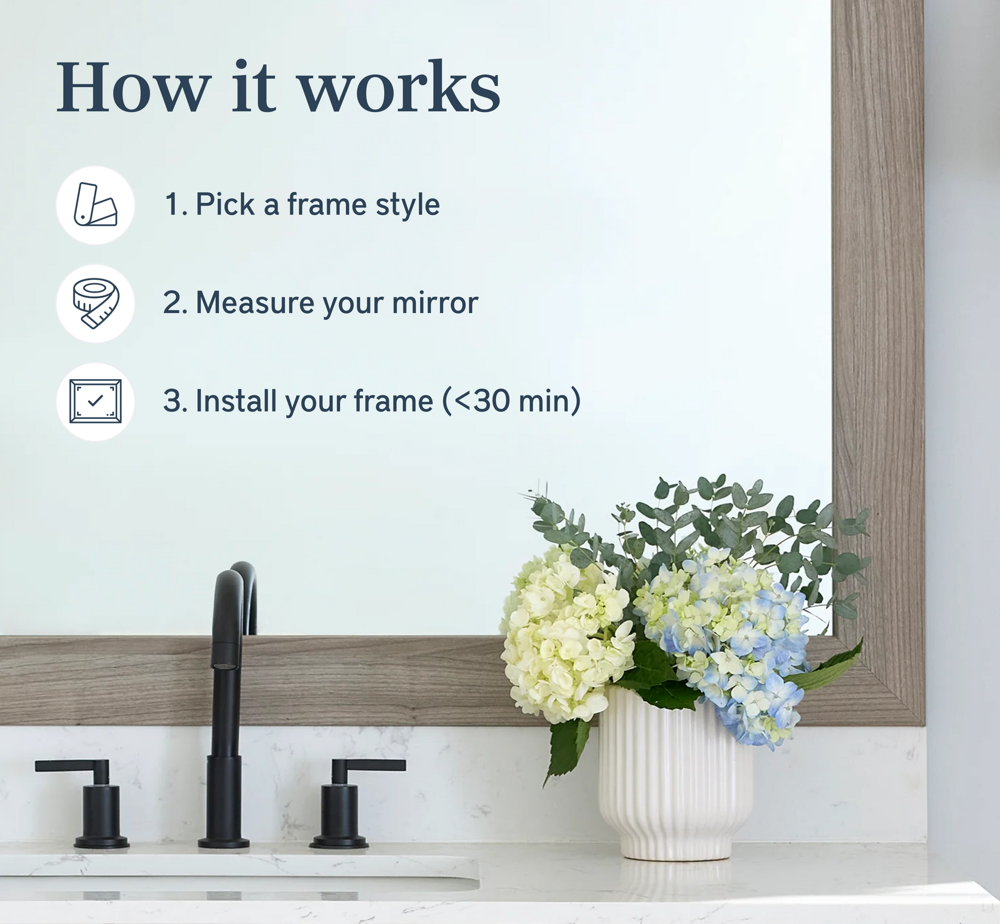 The perfect facelift for new construction, dated, or decaying bathroom mirrors.