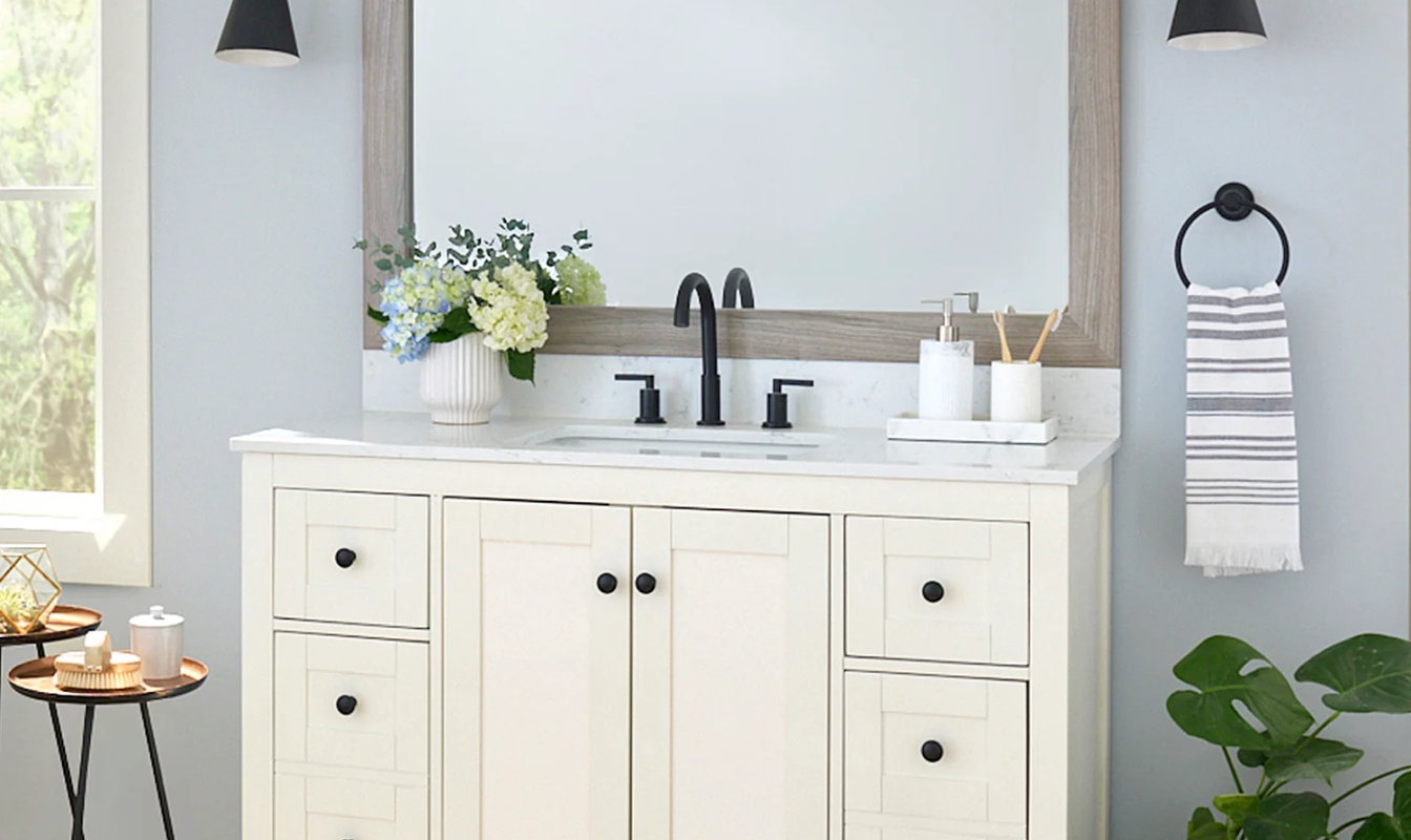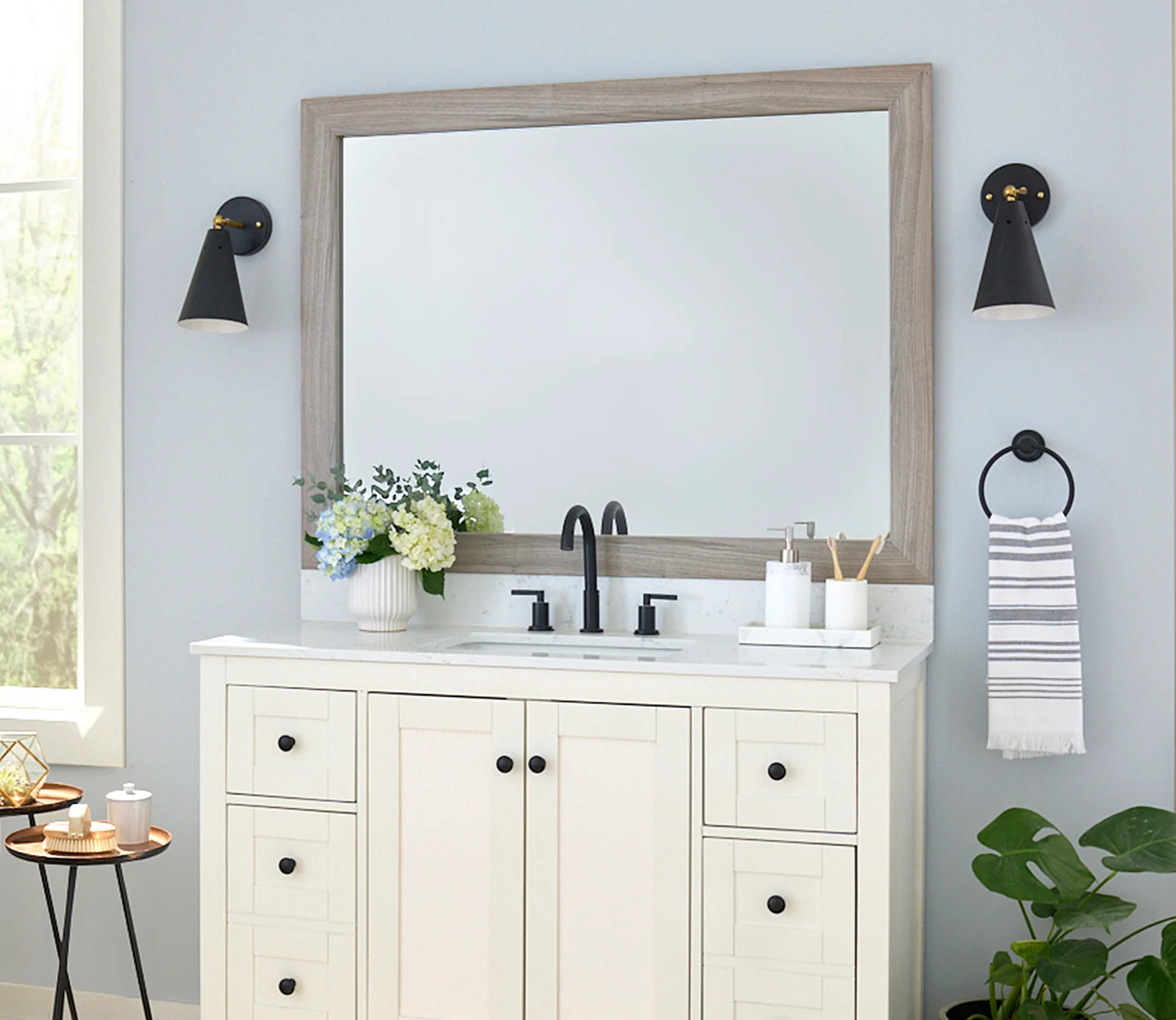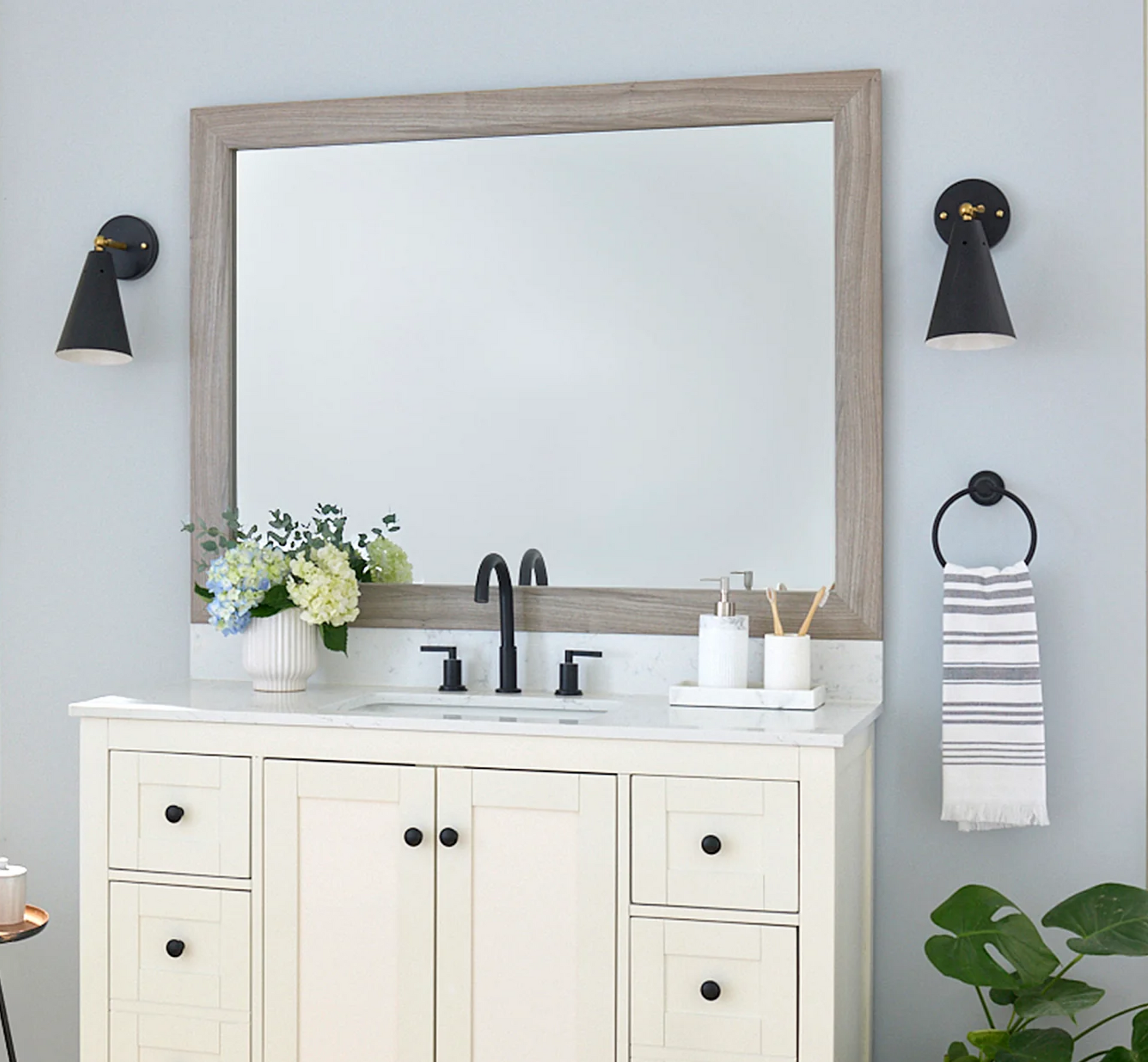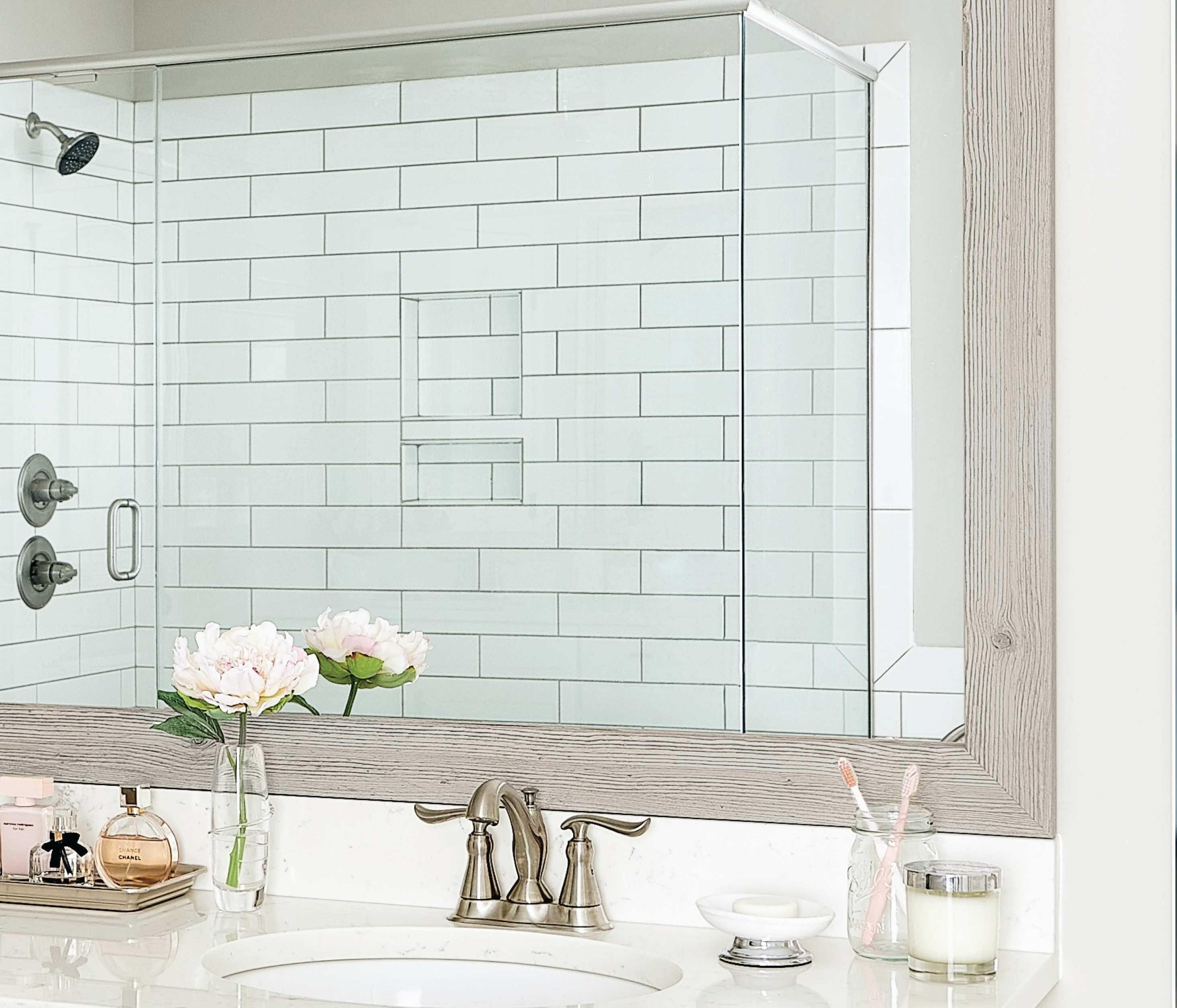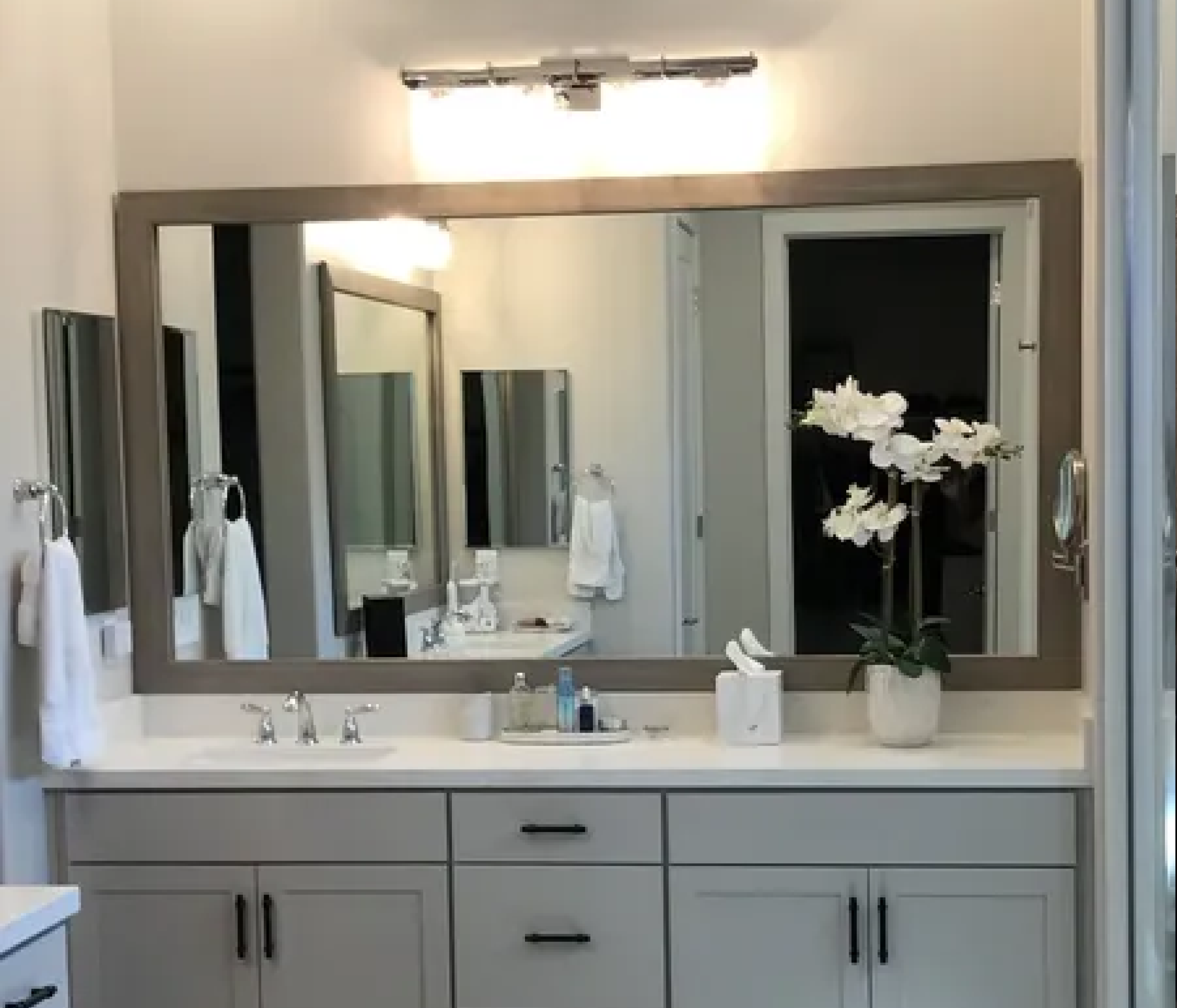 The perfect facelift for new construction, dated, or decaying bathroom mirrors.