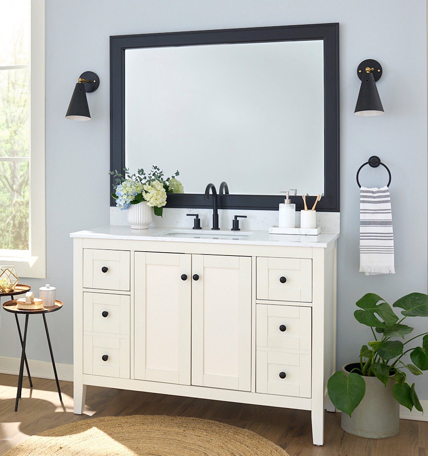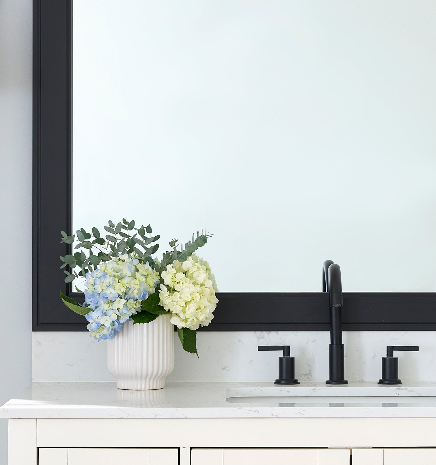 The perfect facelift for new construction, dated, or decaying bathroom mirrors.