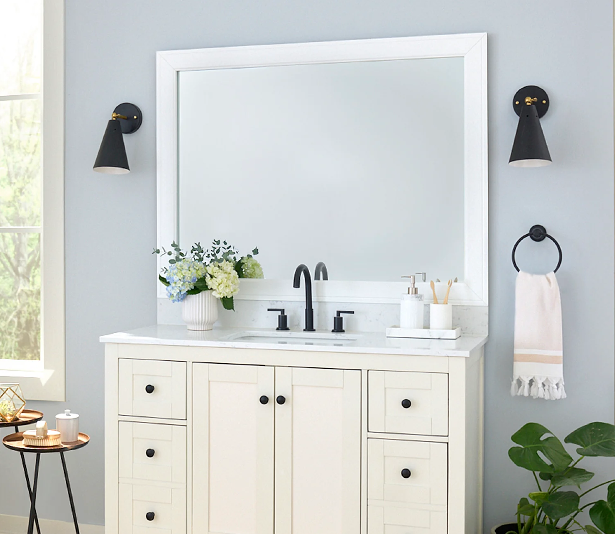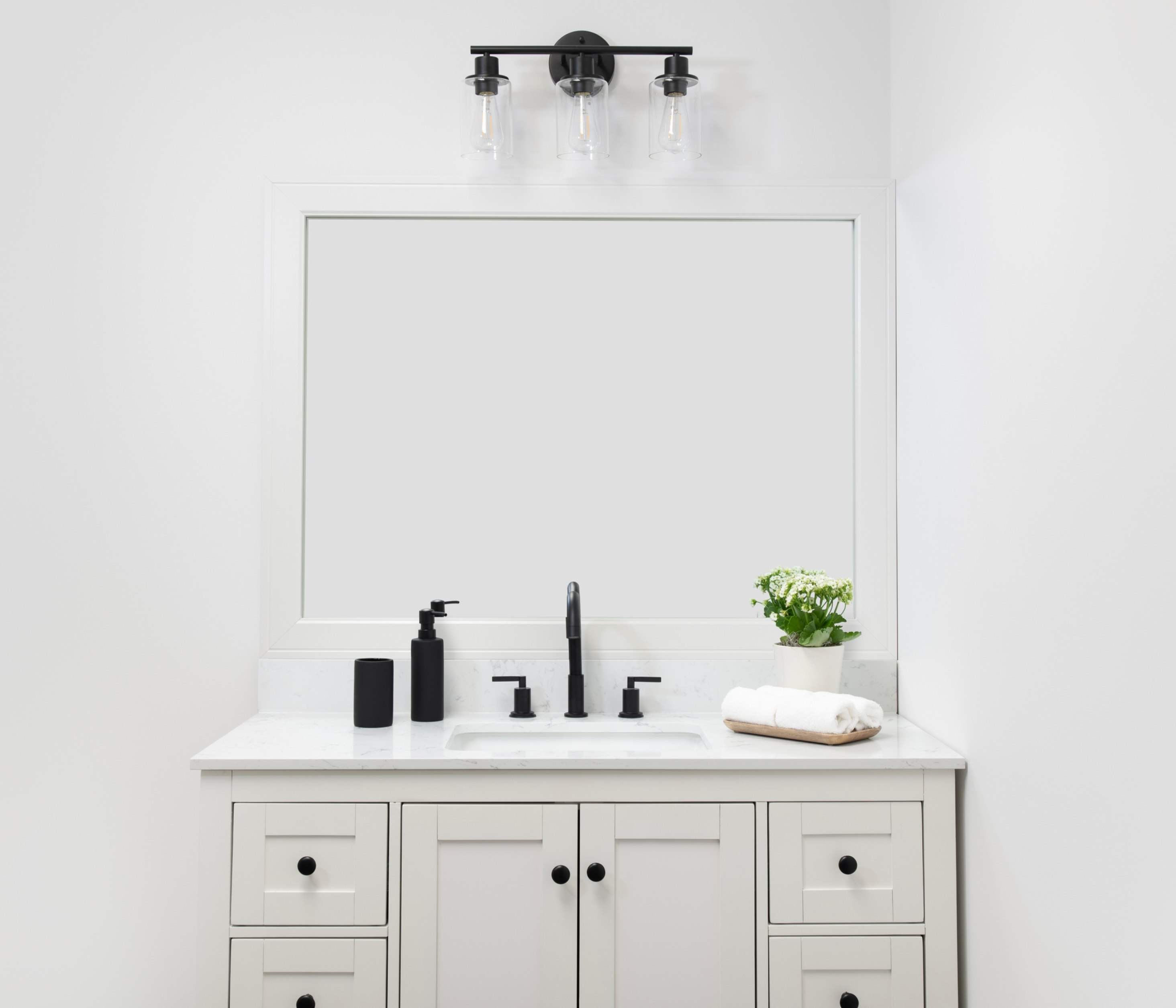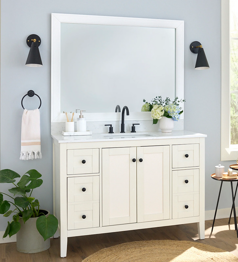 The perfect facelift for new construction, dated, or decaying bathroom mirrors.