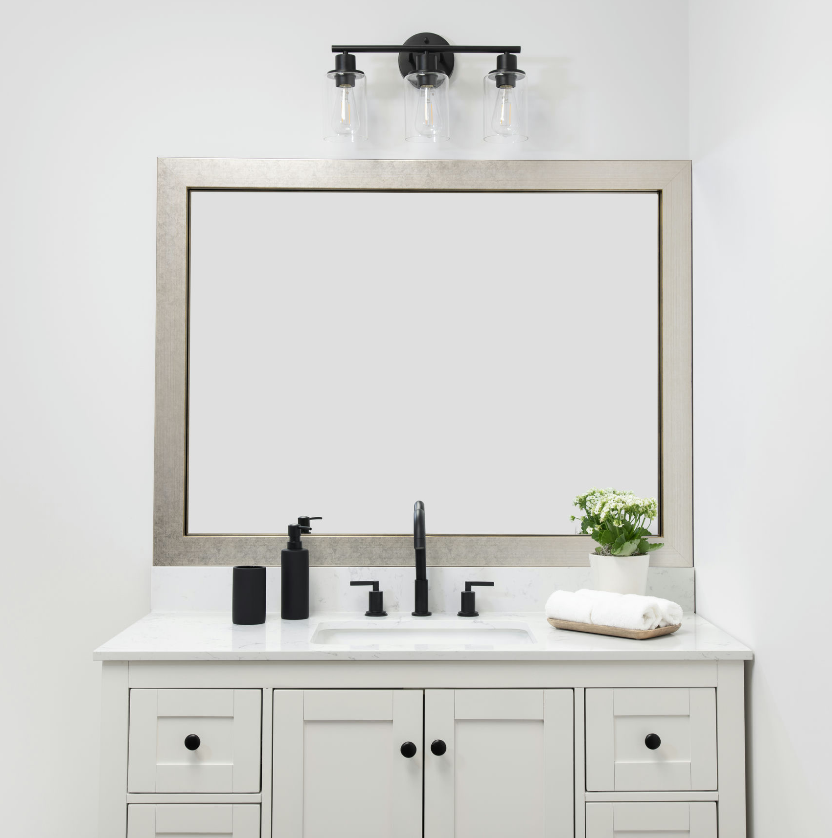 Compare your color options to your bathroom hardware. Frames that are in the same color family as your hardware are a great choice!