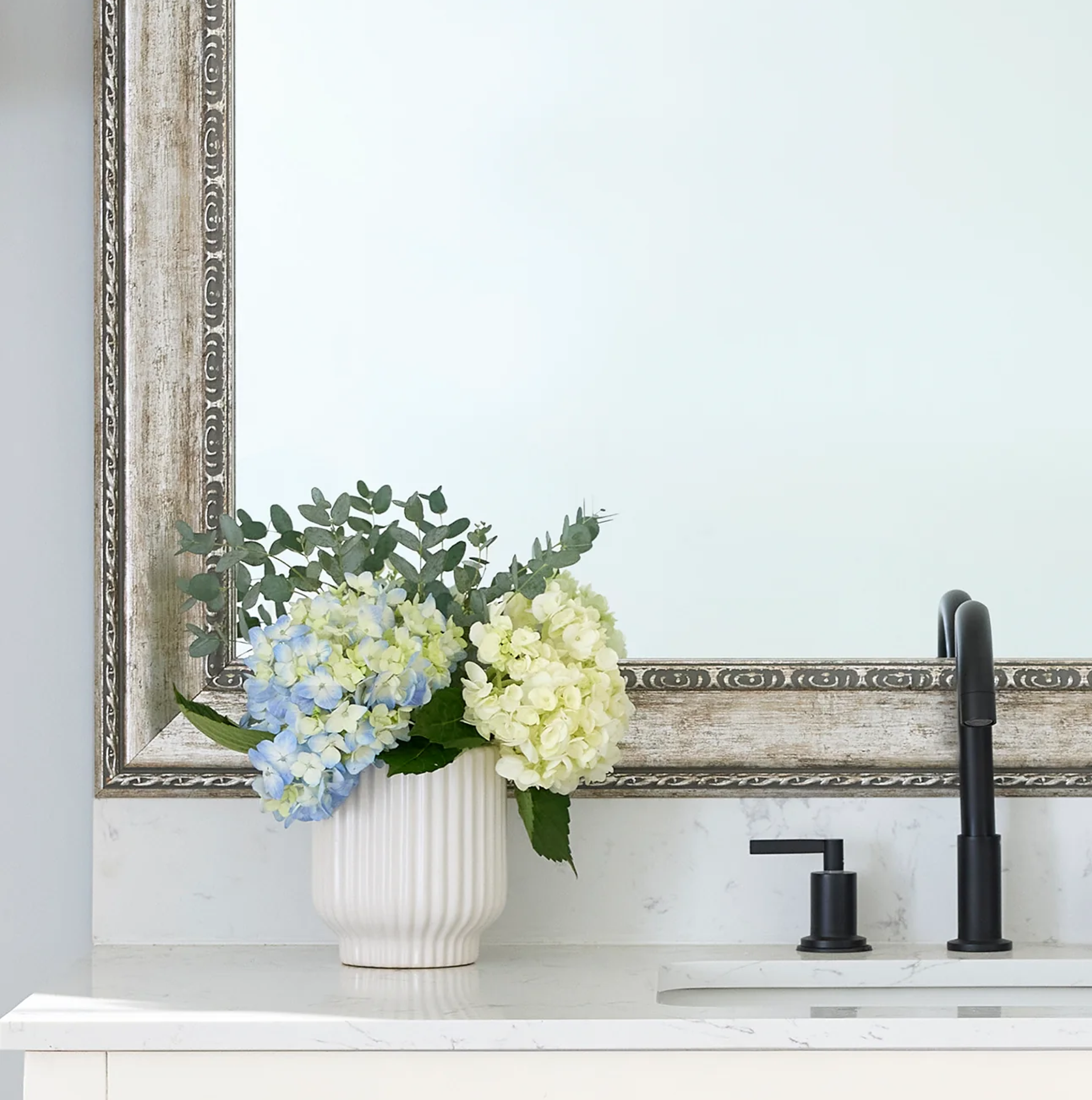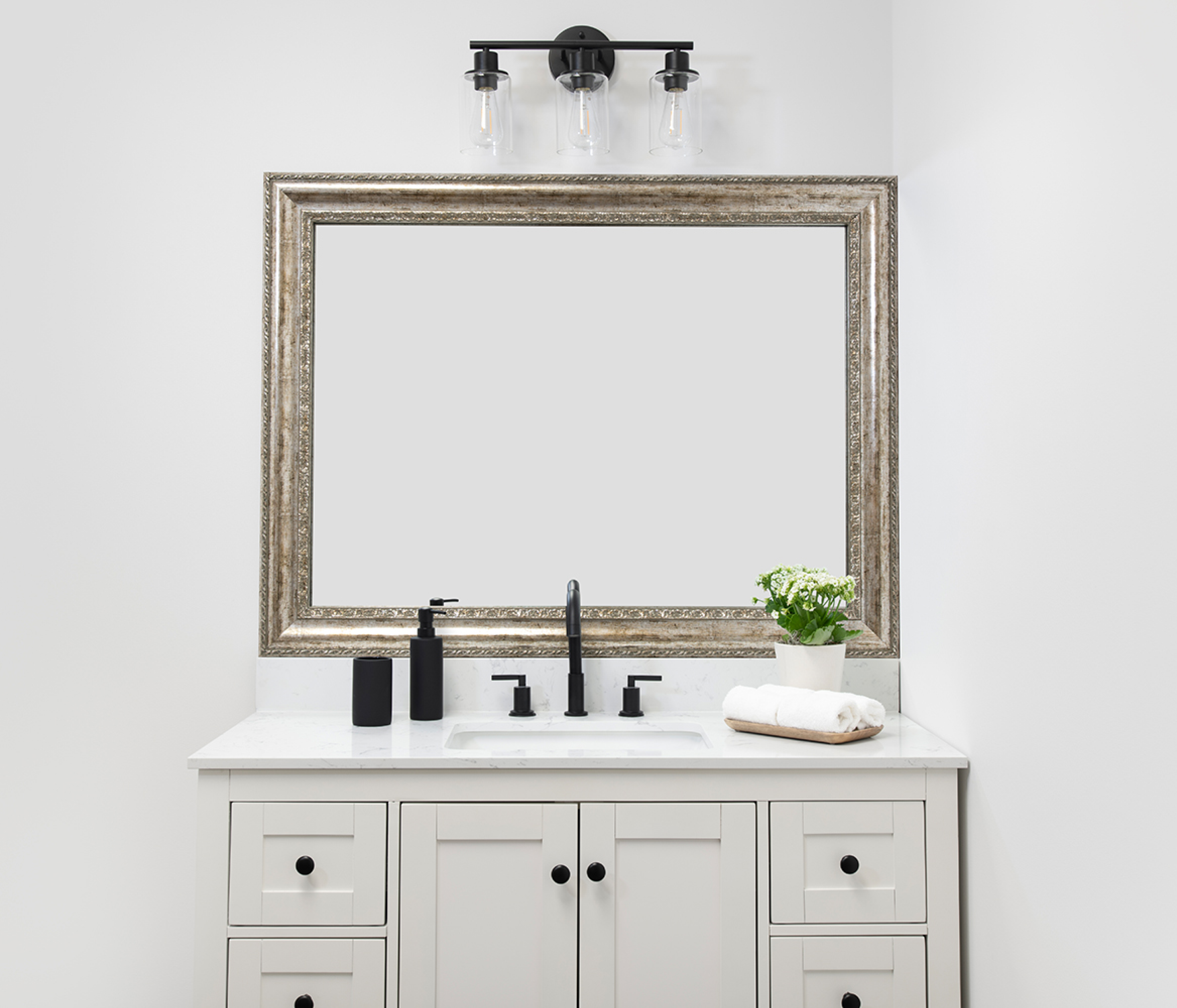 The perfect facelift for new construction, dated, or decaying bathroom mirrors.