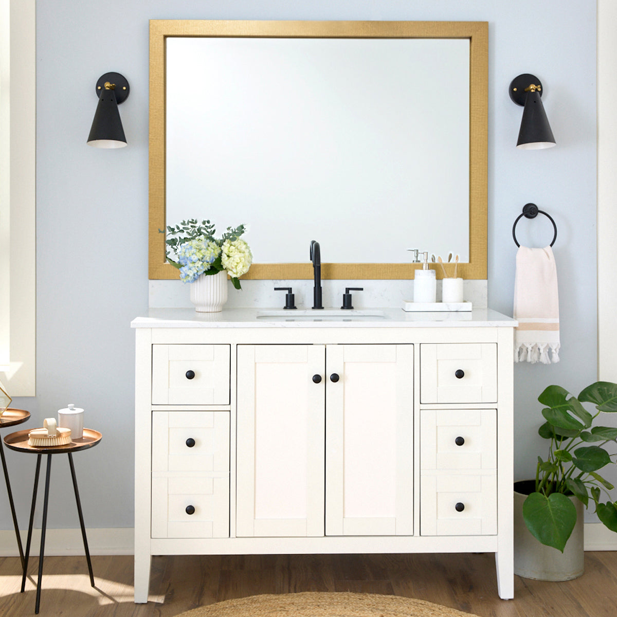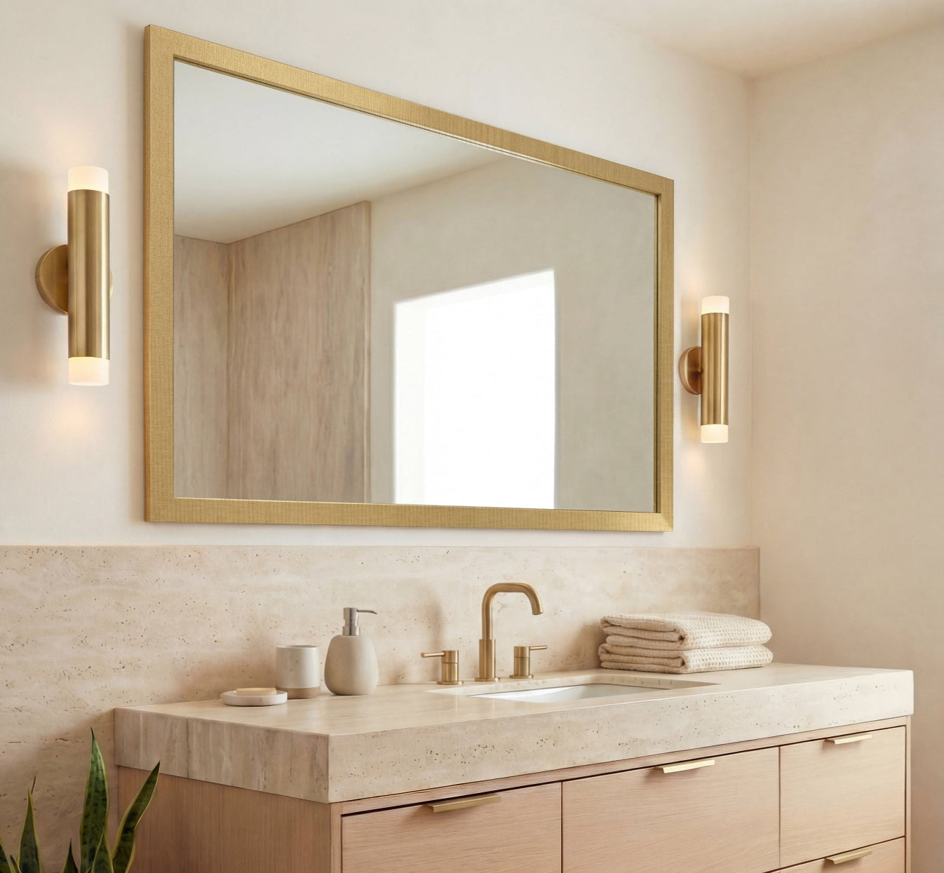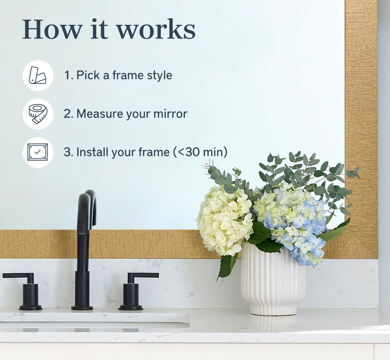 The perfect facelift for new construction, dated, or decaying bathroom mirrors.