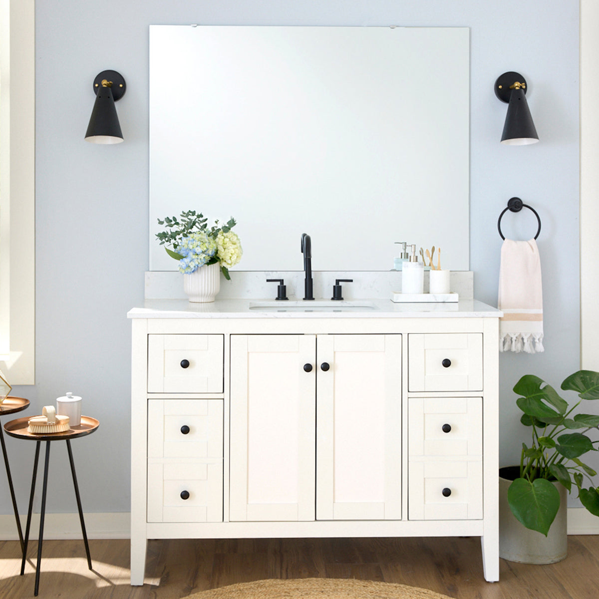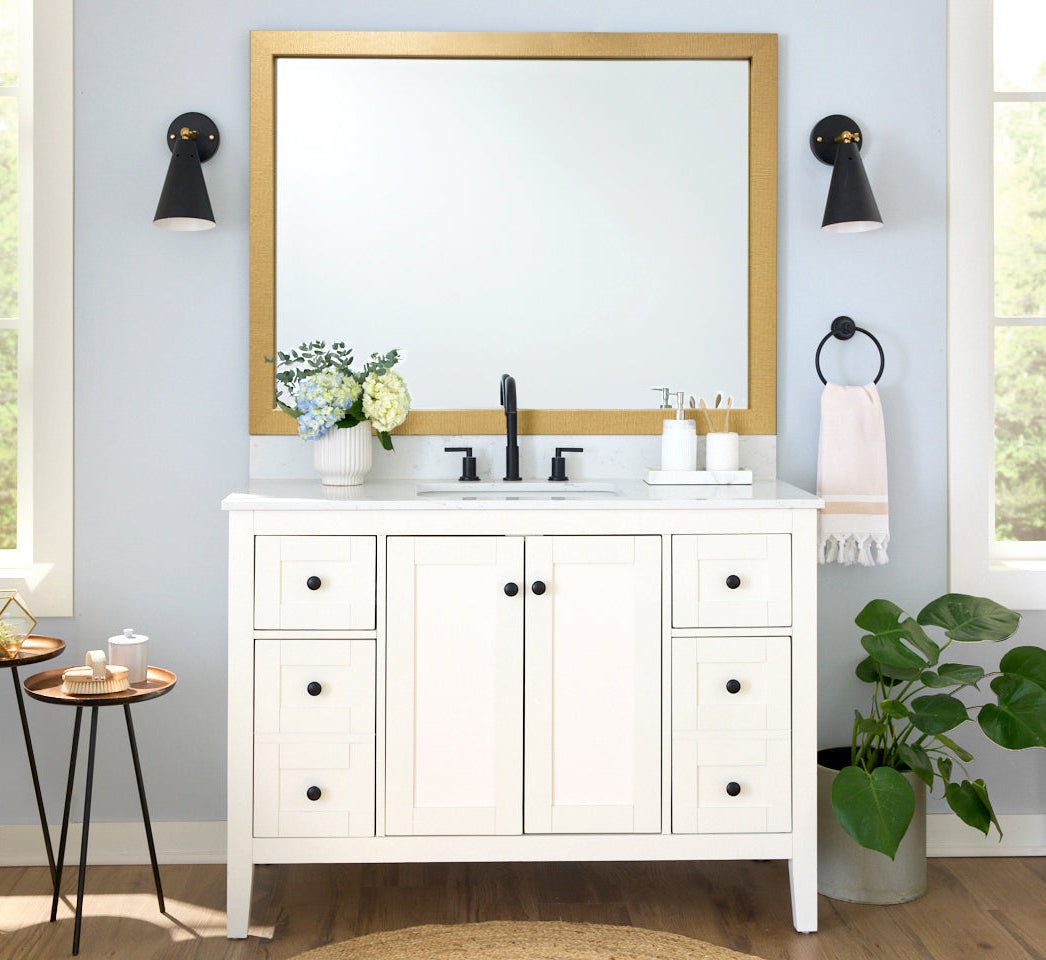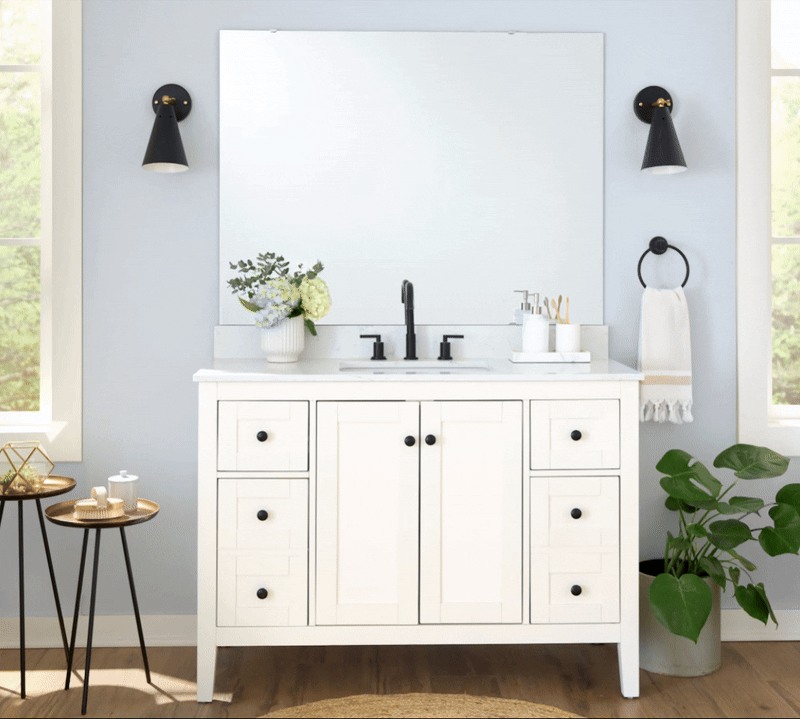 The perfect facelift for new construction, dated, or decaying bathroom mirrors.