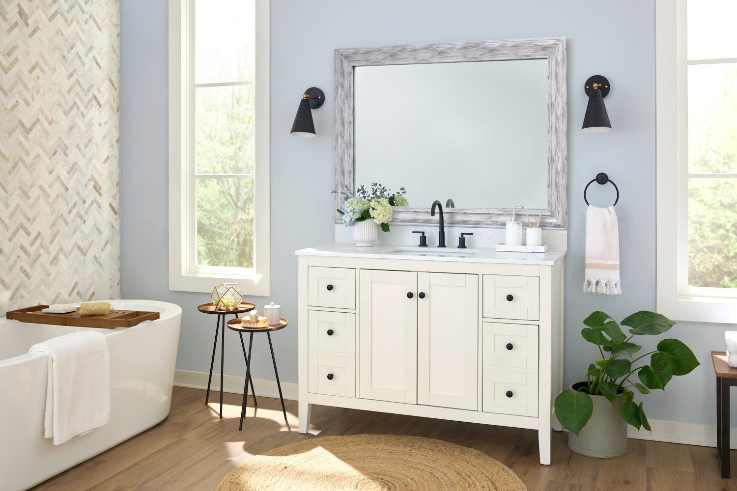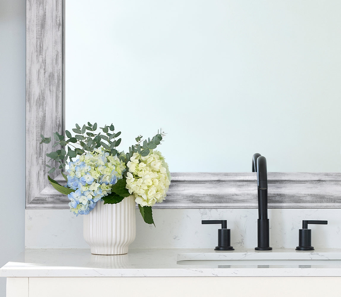The perfect facelift for new construction, dated, or decaying bathroom mirrors.