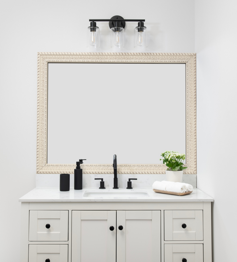 The perfect facelift for new construction, dated, or decaying bathroom mirrors.