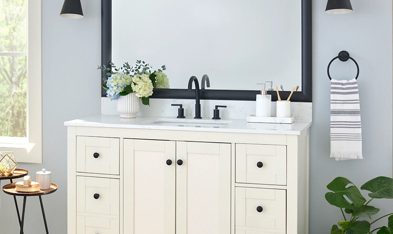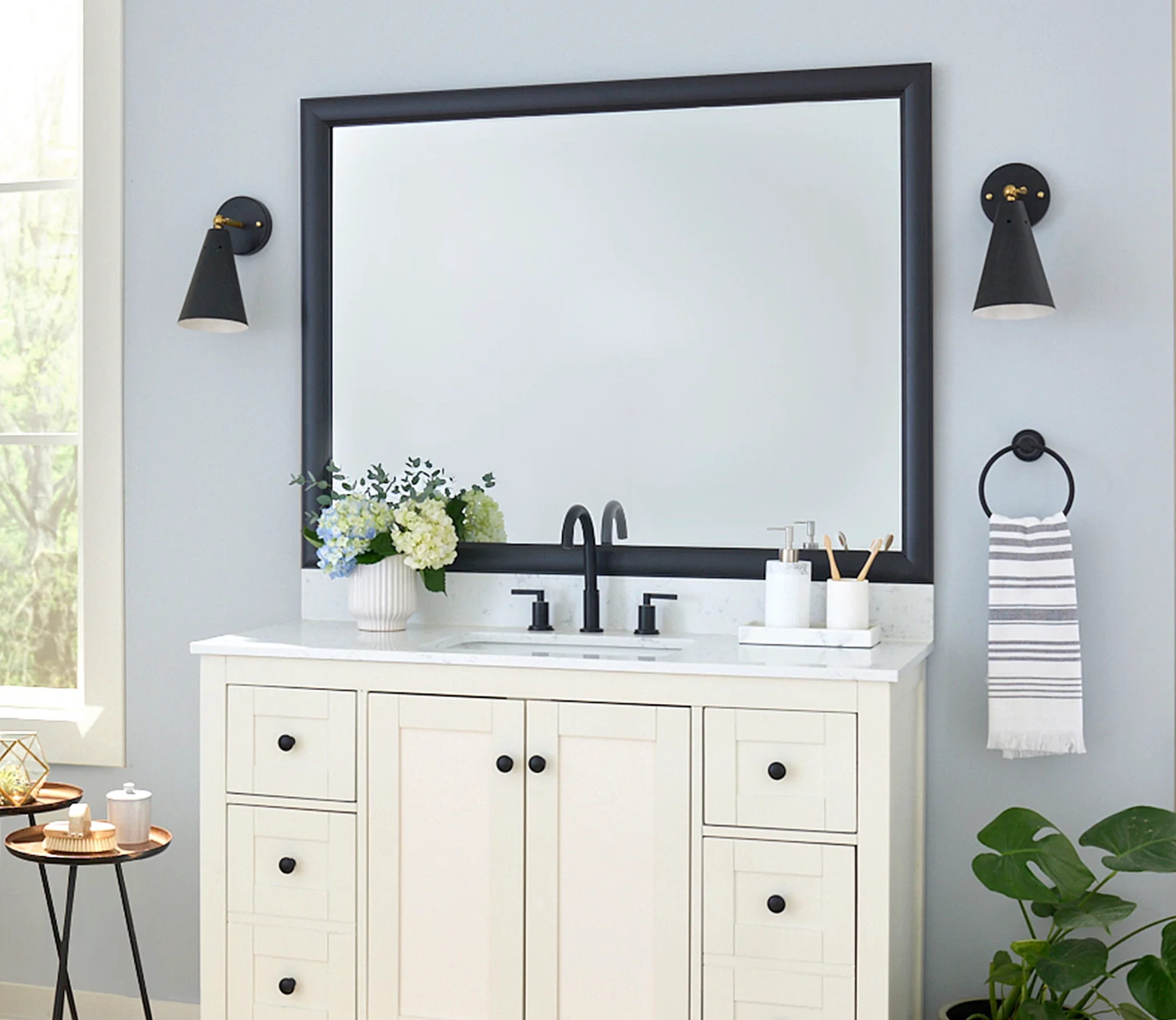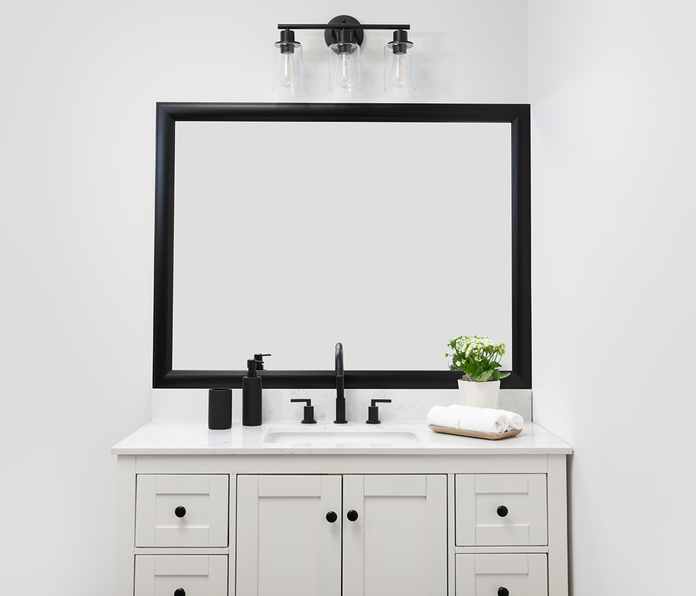 The perfect facelift for new construction, dated, or decaying bathroom mirrors.