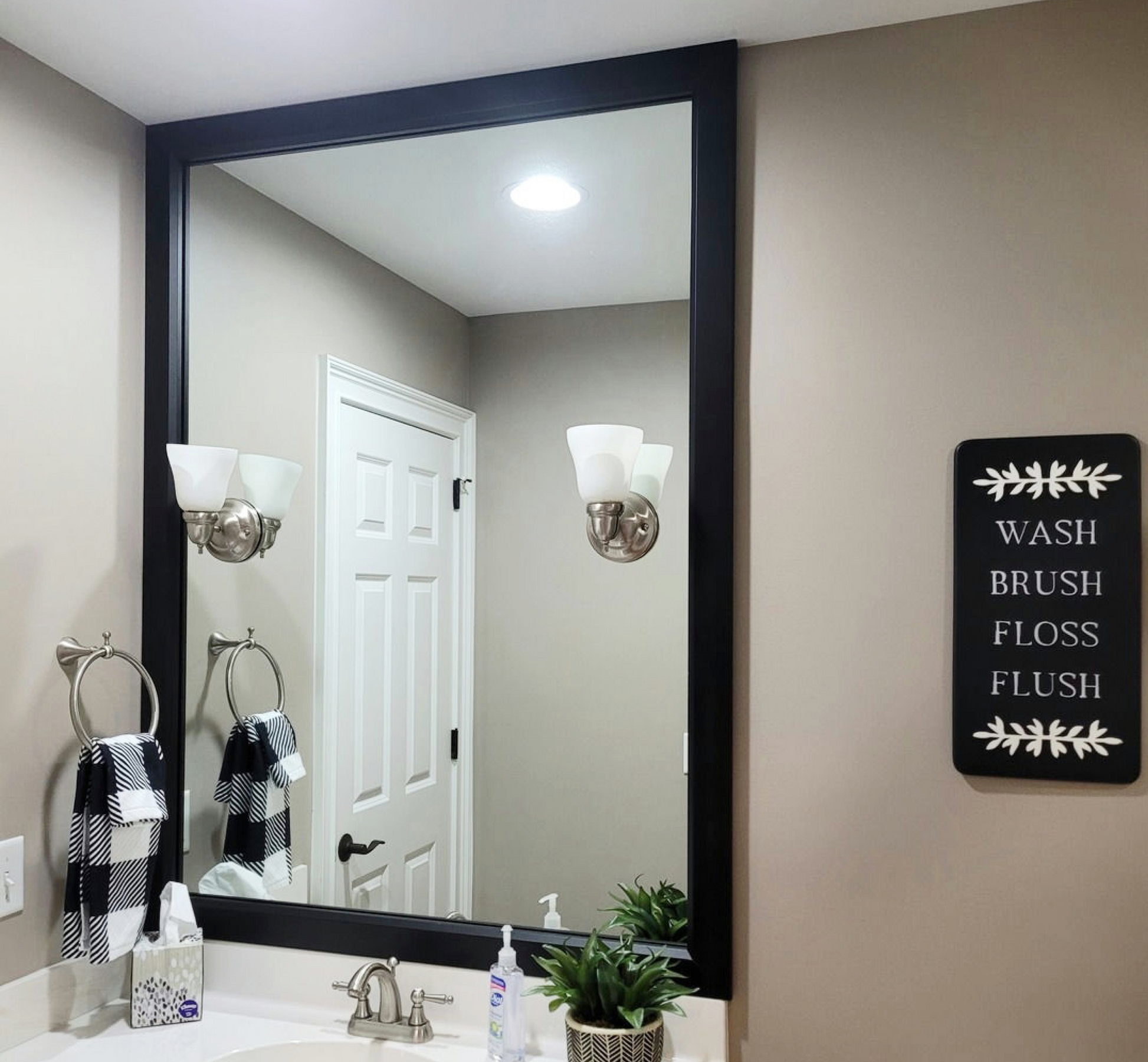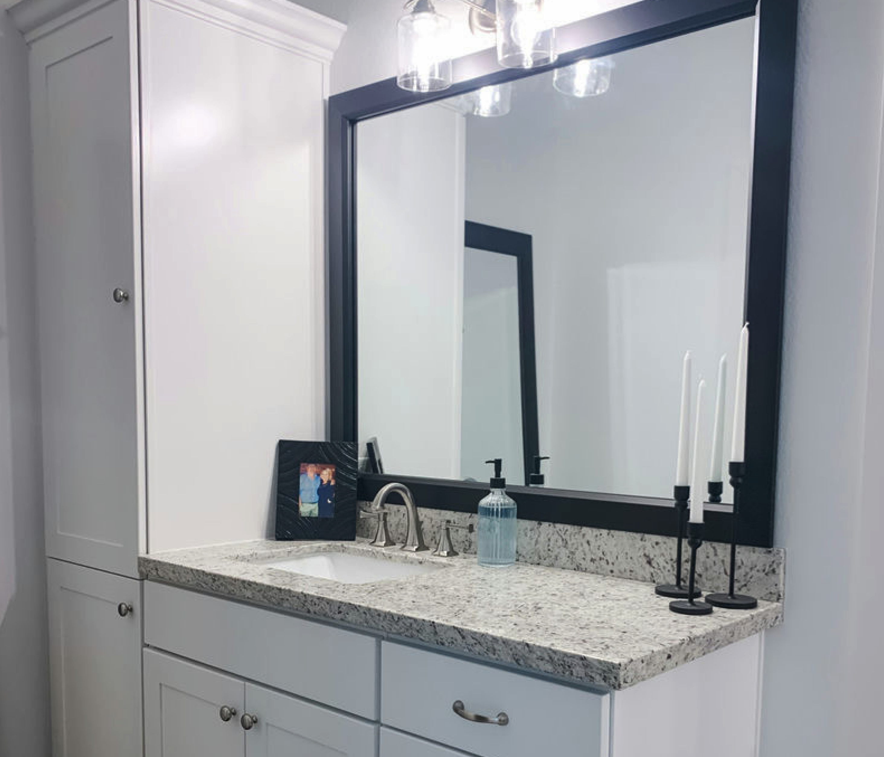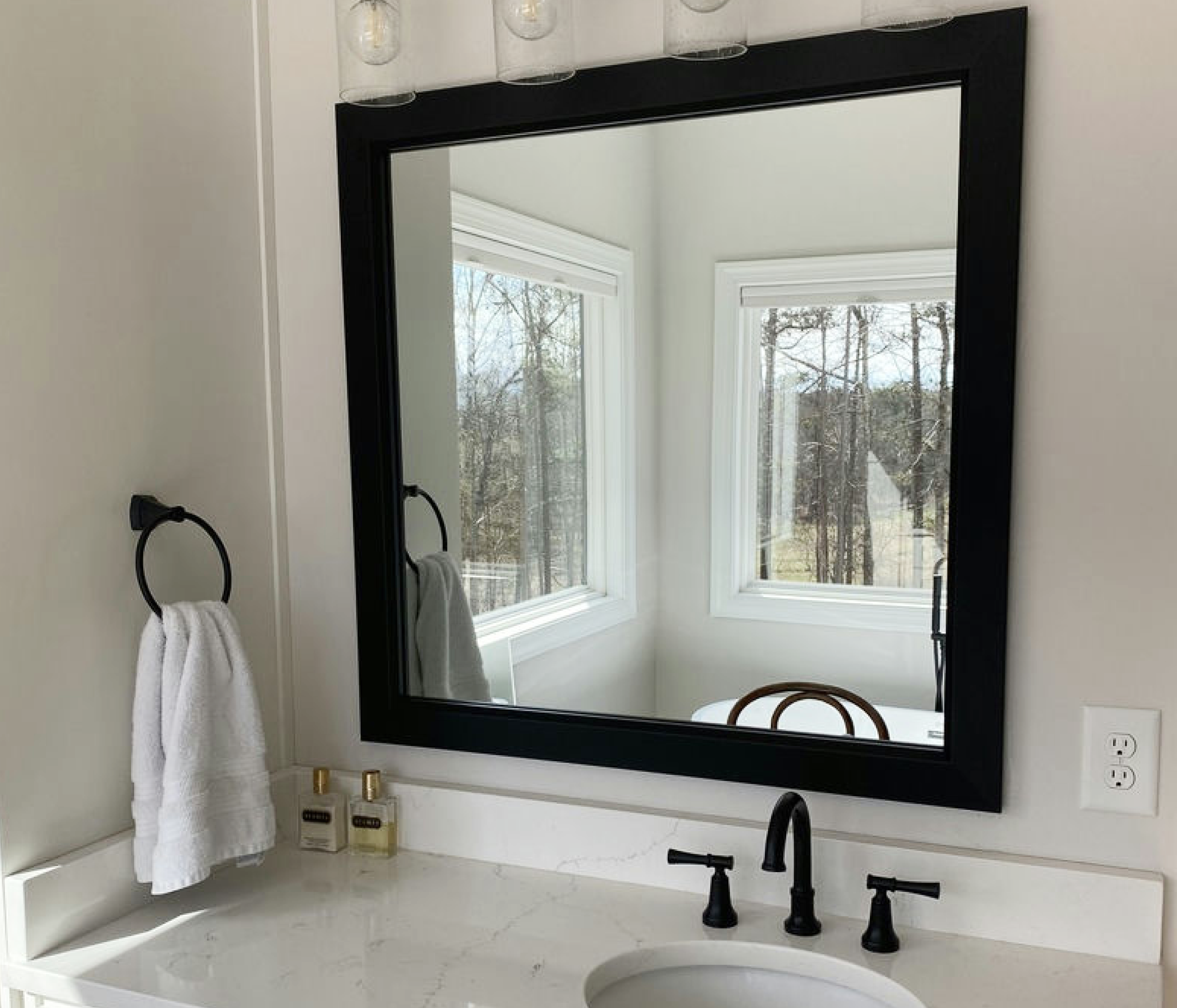 The perfect facelift for new construction, dated, or decaying bathroom mirrors.