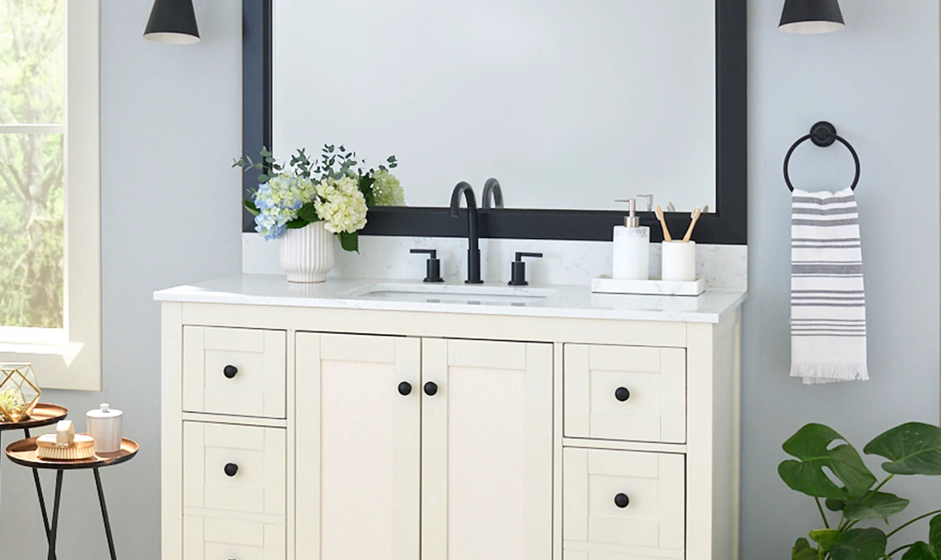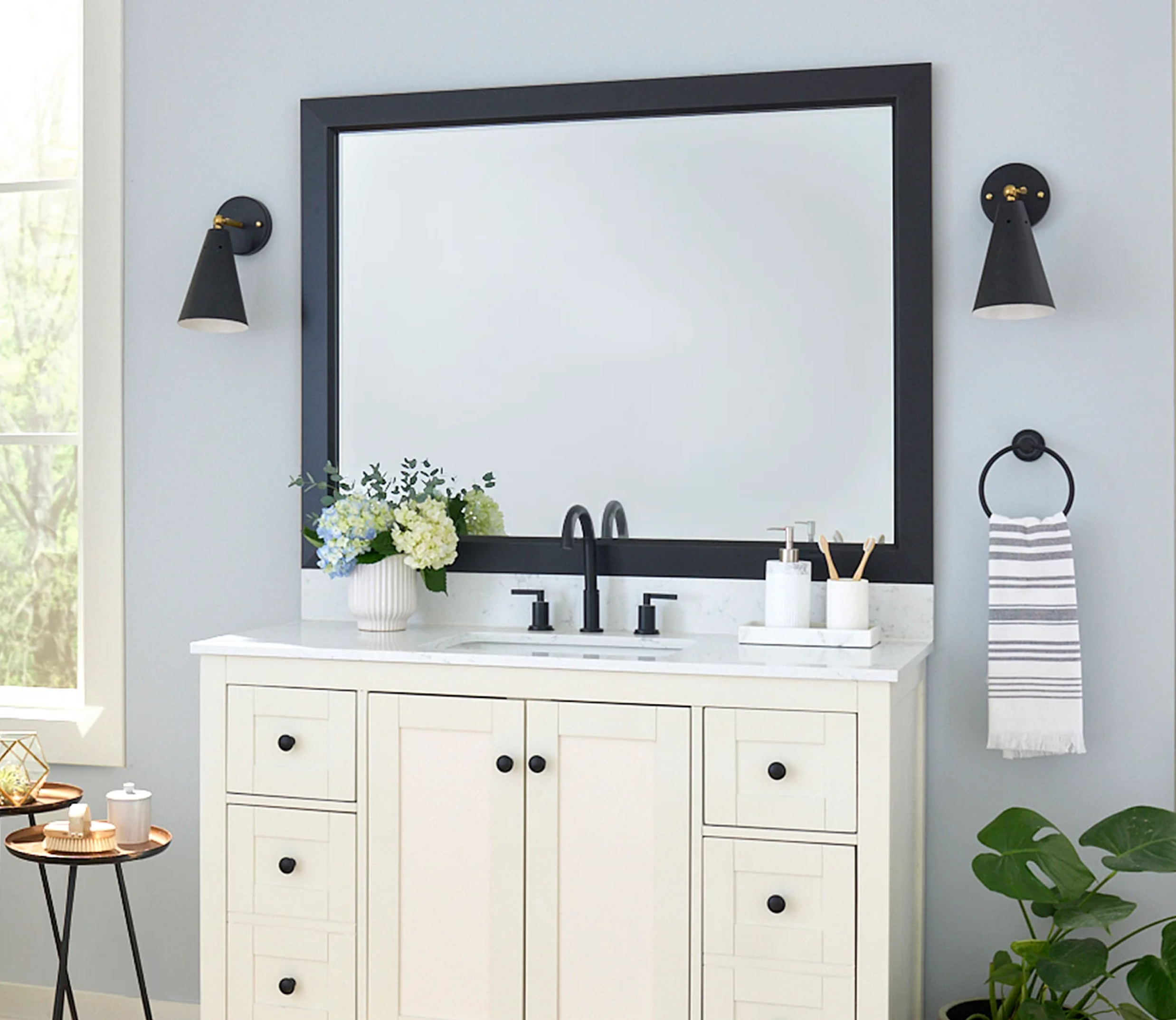The perfect facelift for new construction, dated, or decaying bathroom mirrors.