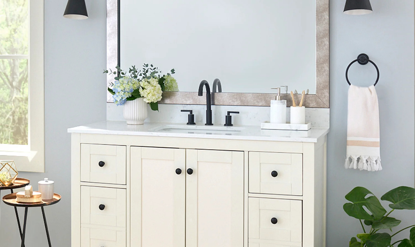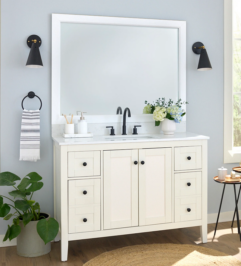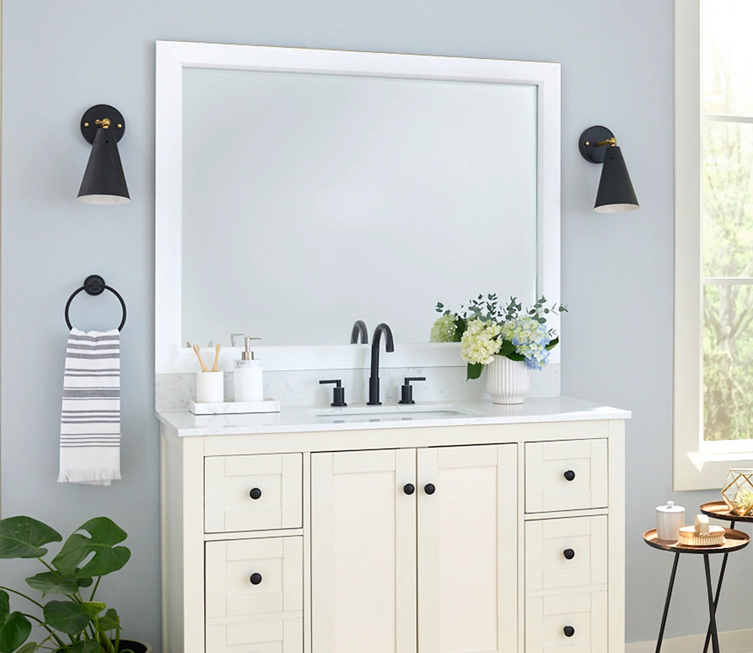 The perfect facelift for new construction, dated, or decaying bathroom mirrors.