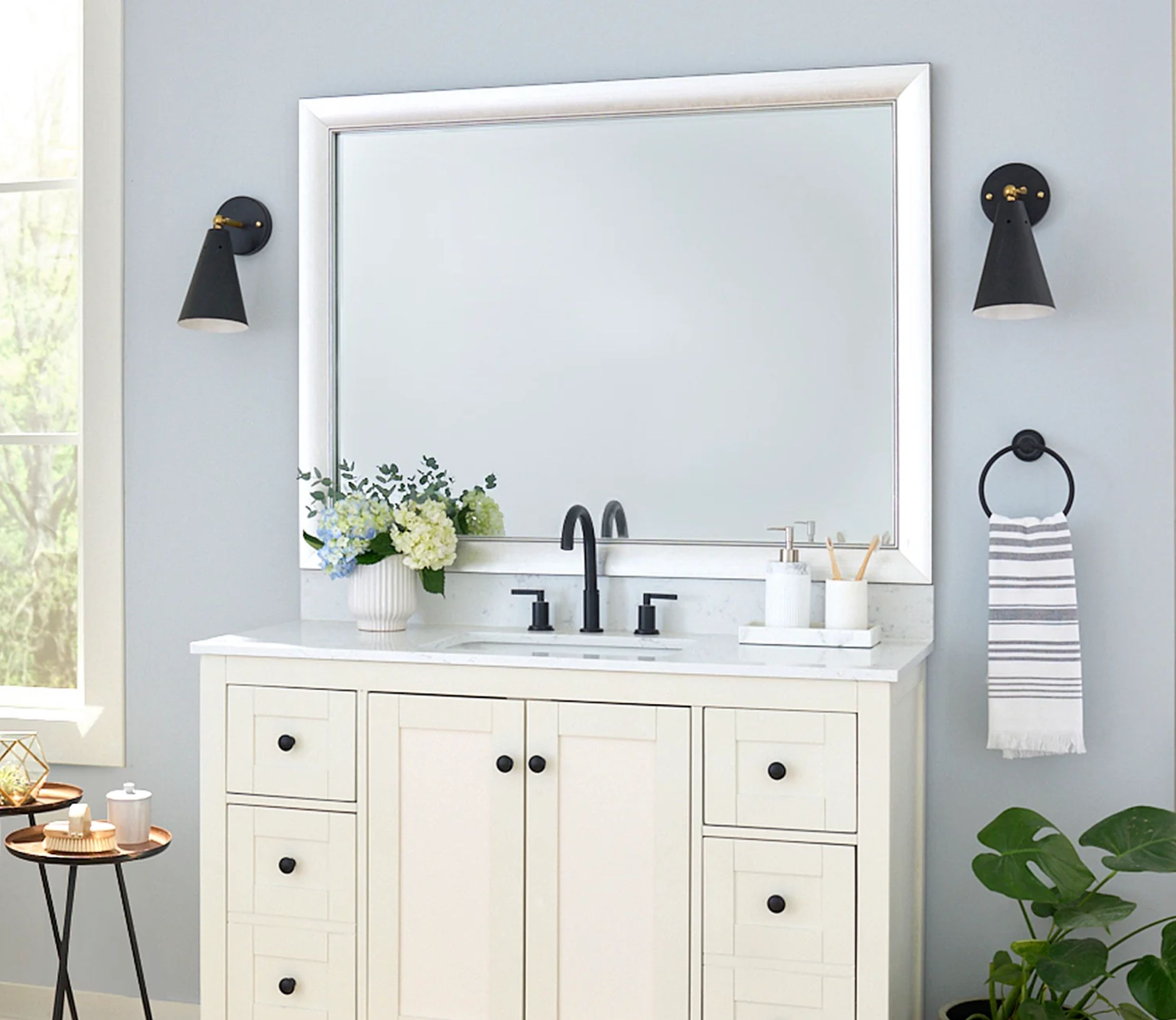 The perfect facelift for new construction, dated, or decaying bathroom mirrors.