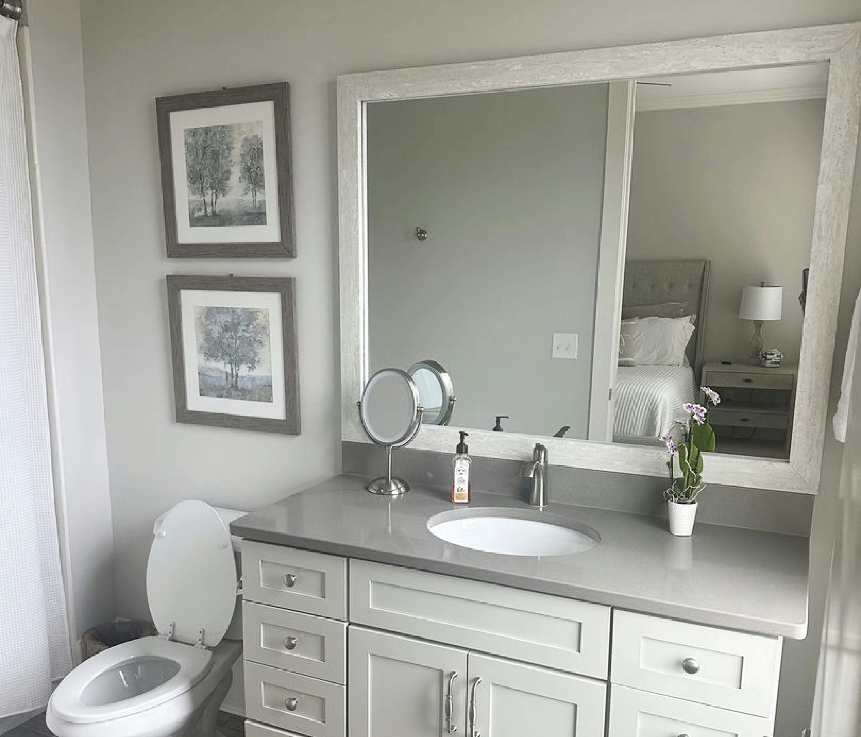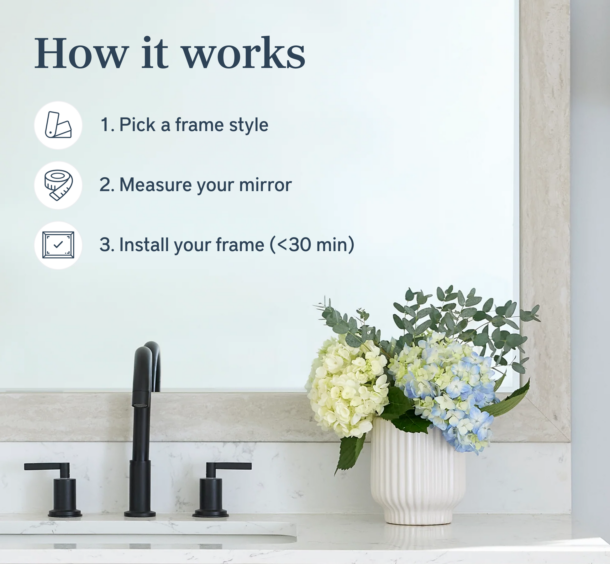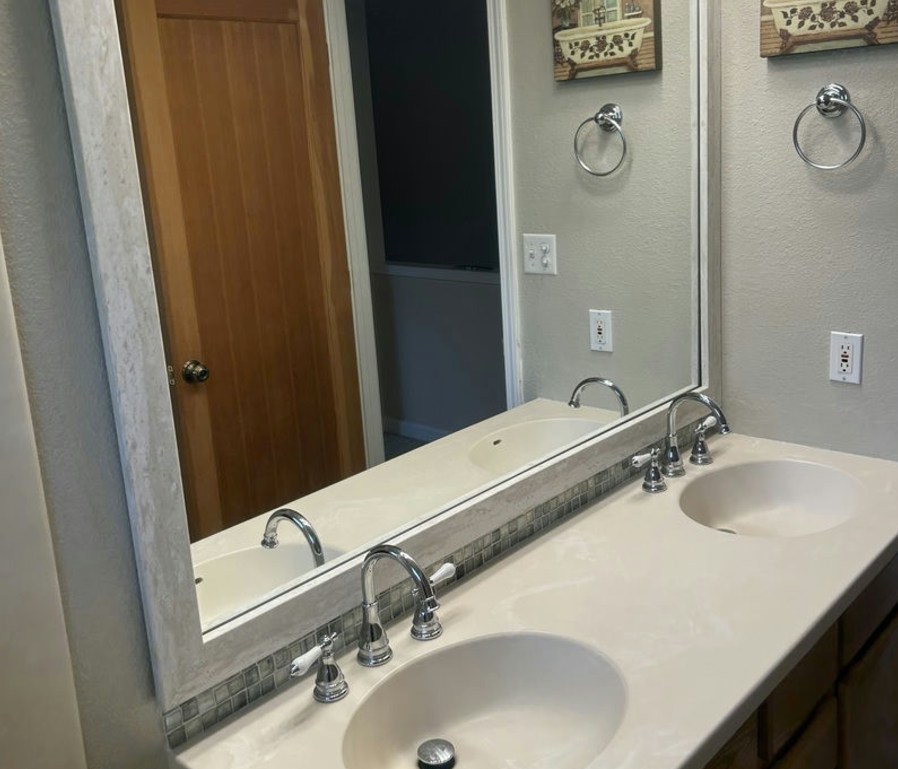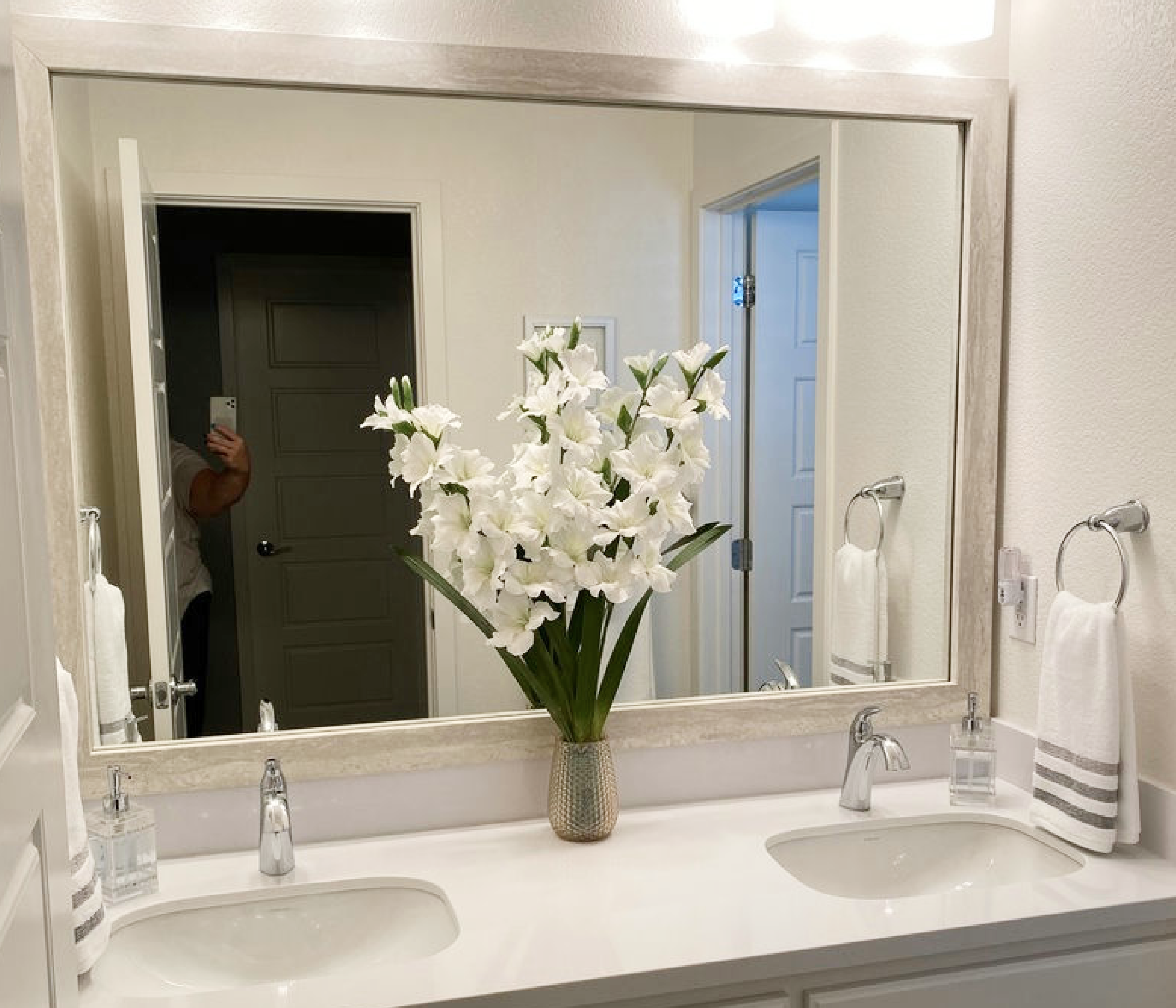 The perfect facelift for new construction, dated, or decaying bathroom mirrors.