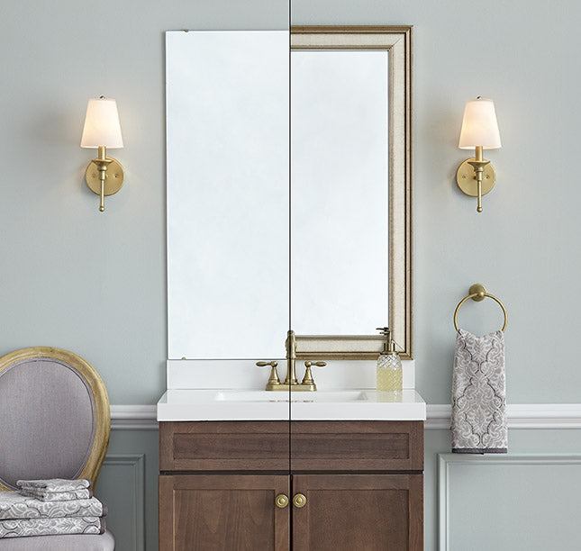 If you've seen the home makeovers featured on HGTV shows like the Property Brothers, Love It or List It, and Flip or Flop you've probably wondered how you can achieve this kind of transformation in your own home. While big projects might be best left to professionals, there are easy, DIY improvements anyone can do! One of these is framing your large, bare bathroom mirror. But don’t take it down and don’t go buy, cut, paint and glue baseboard to trim it!