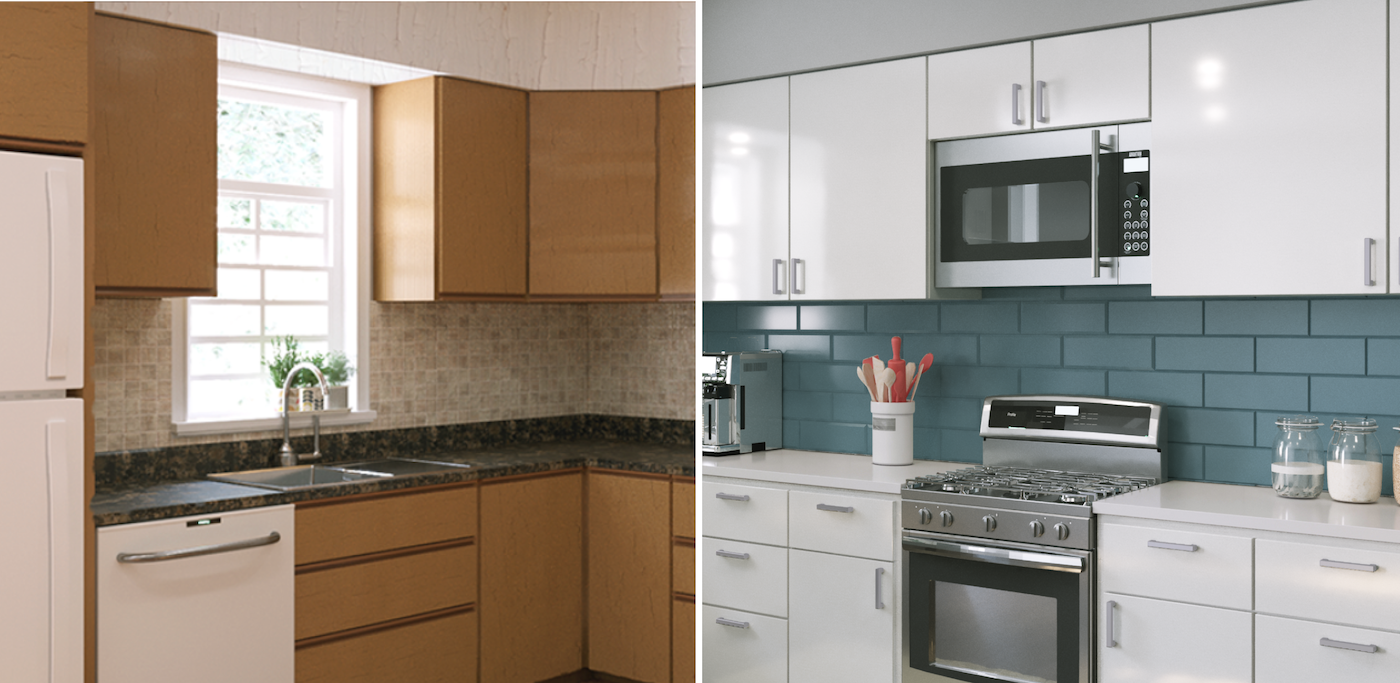 Transform your unit's kitchen & bath with CabinetMate’s custom cabinet refacing kits.