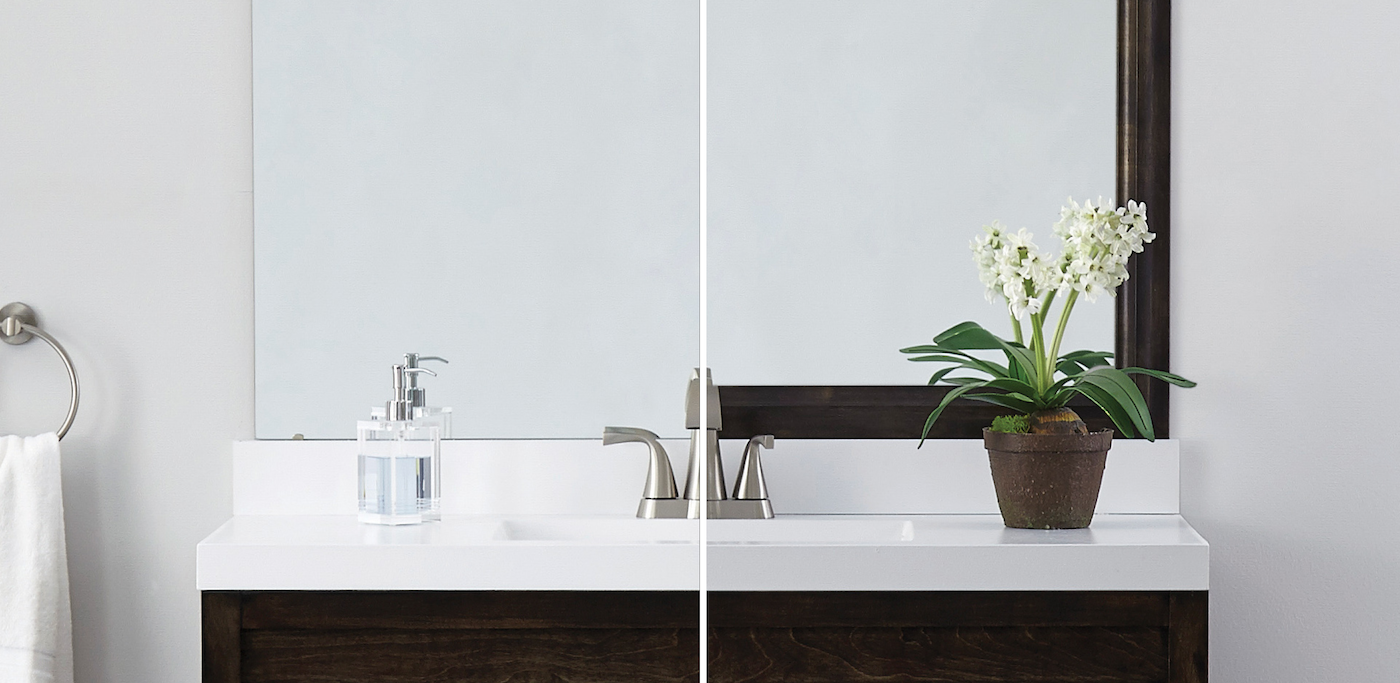 Transform your unit's bath & kitchen with MirrorMate’s custom frame kits.