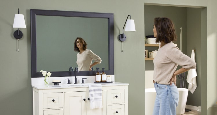 “These made-to-order frames can be installed in less than 20 minutes and you won’t even need to take the mirror off the wall.”