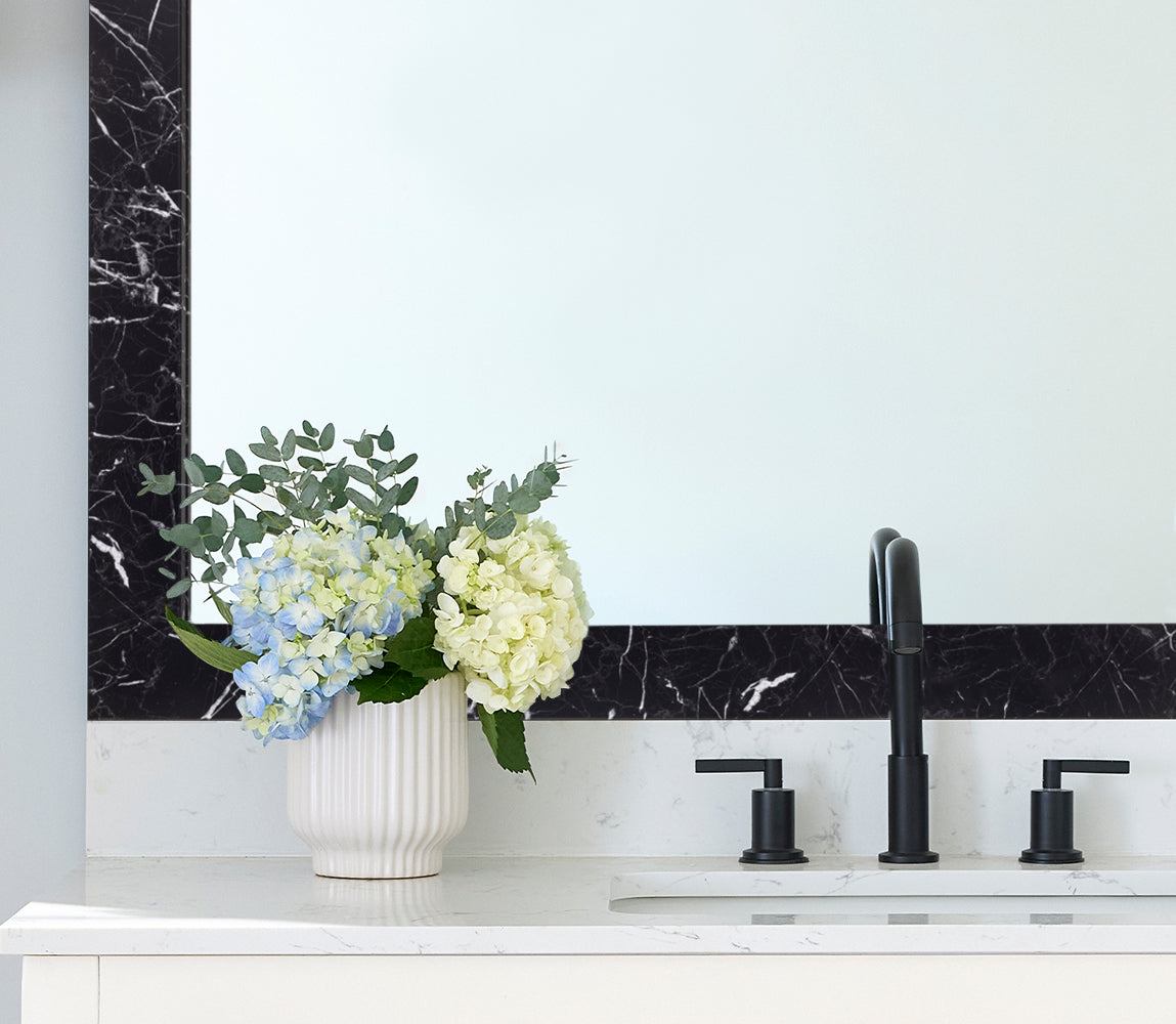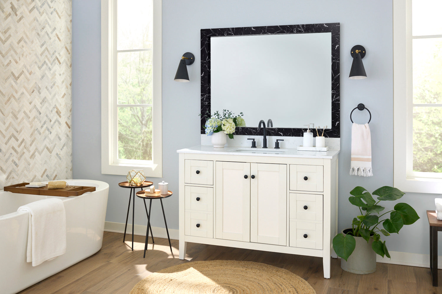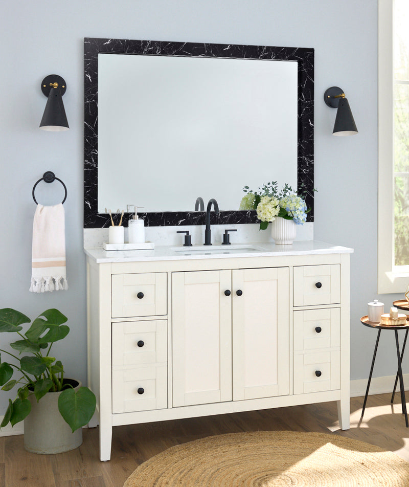 The perfect facelift for new construction, dated, or decaying bathroom mirrors.