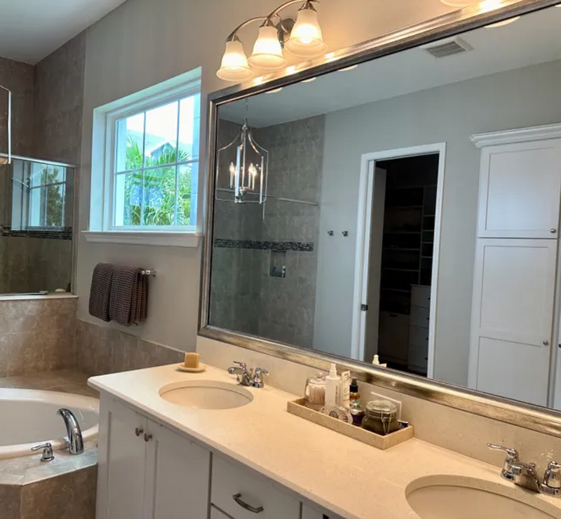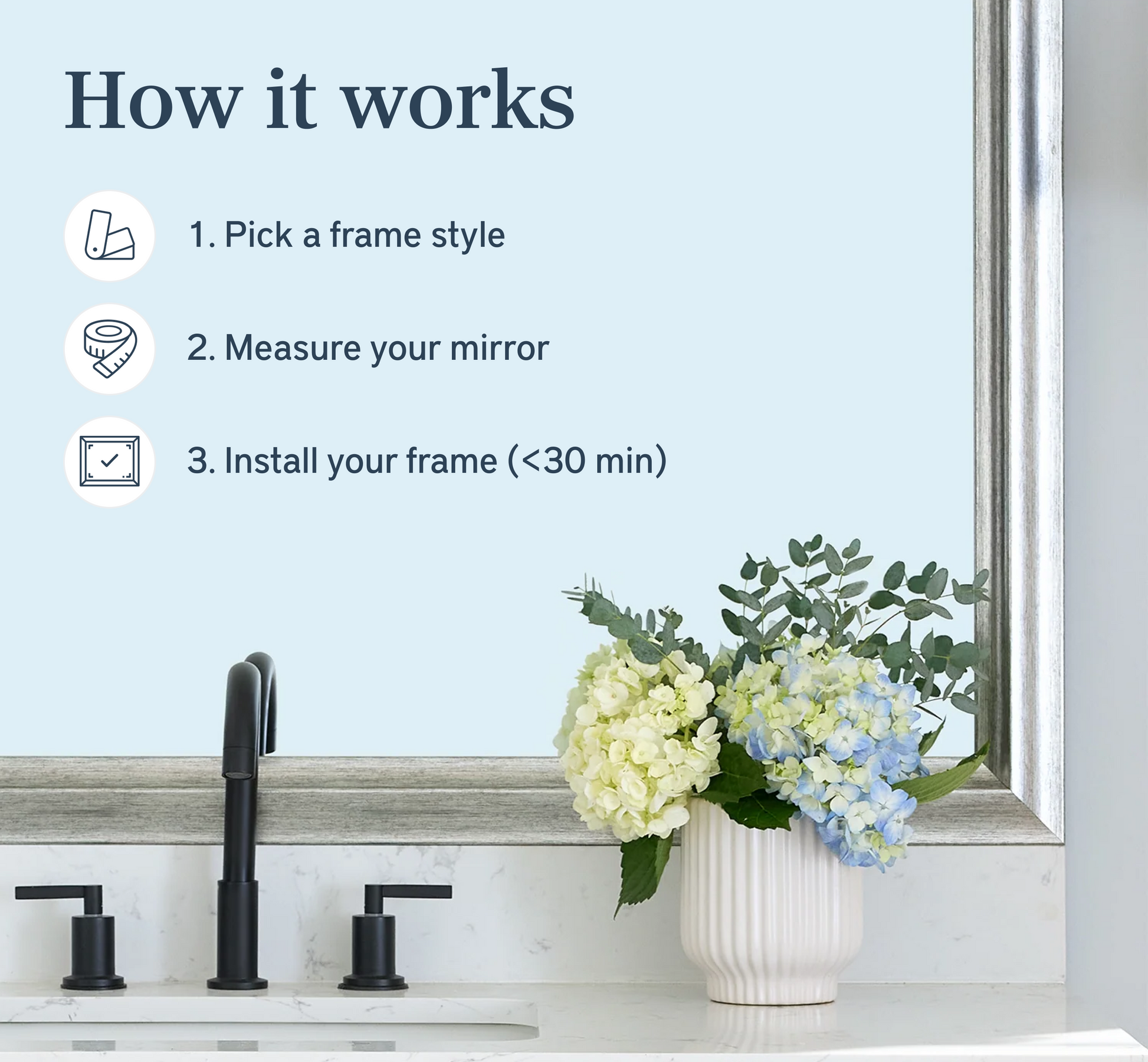 The perfect facelift for new construction, dated, or decaying bathroom mirrors.