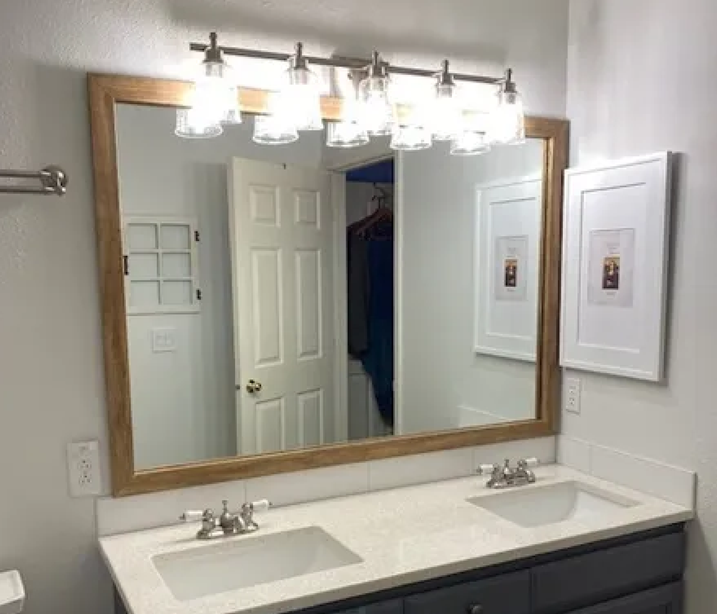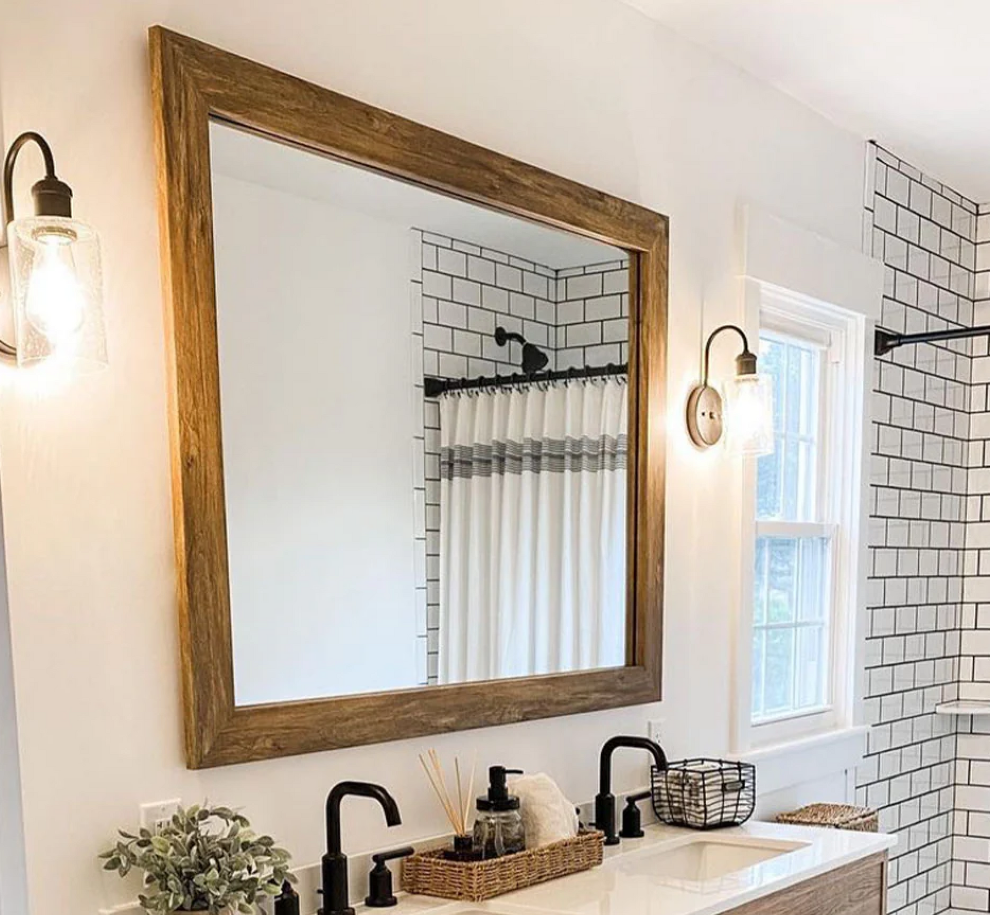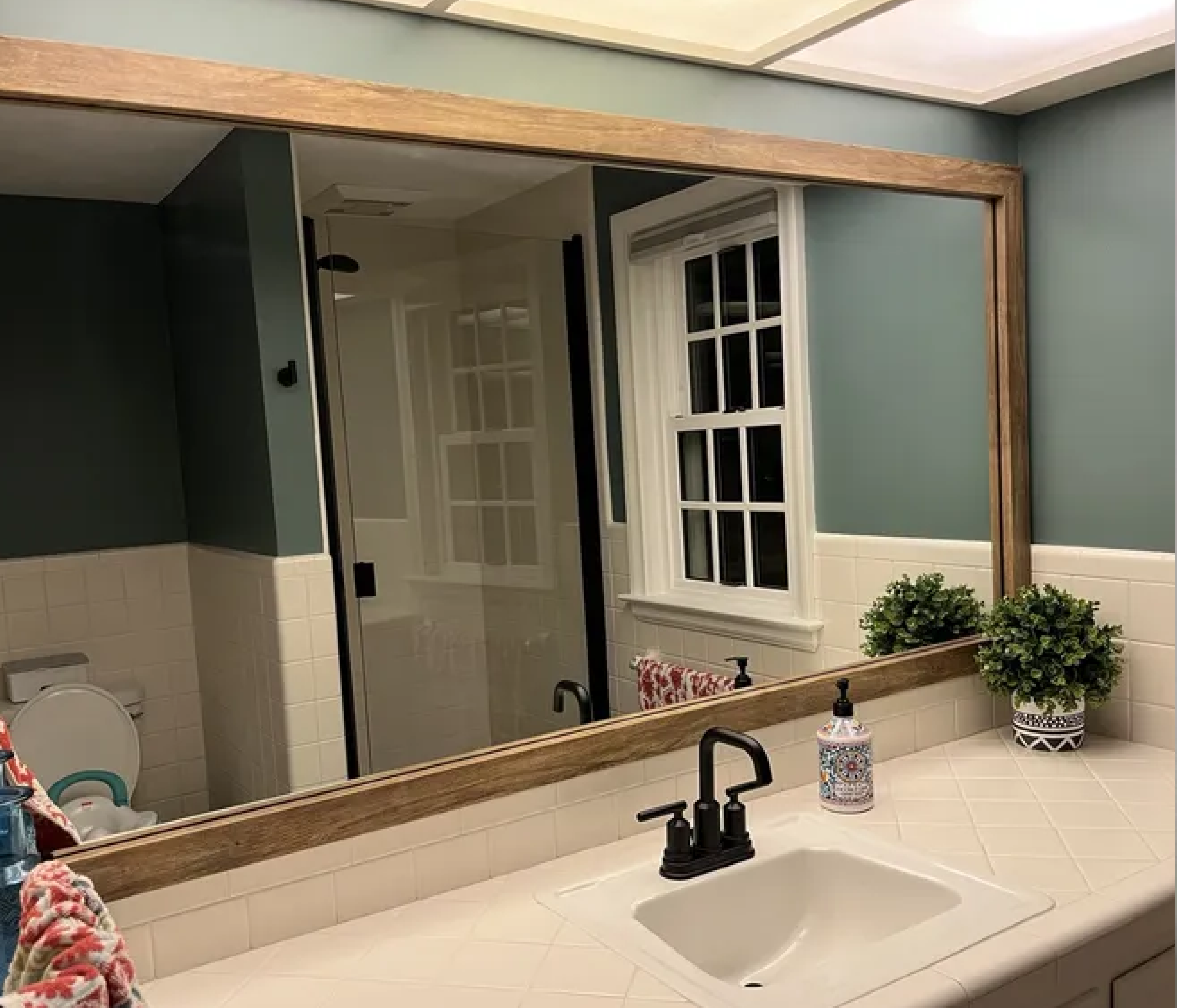The perfect facelift for new construction, dated, or decaying bathroom mirrors.