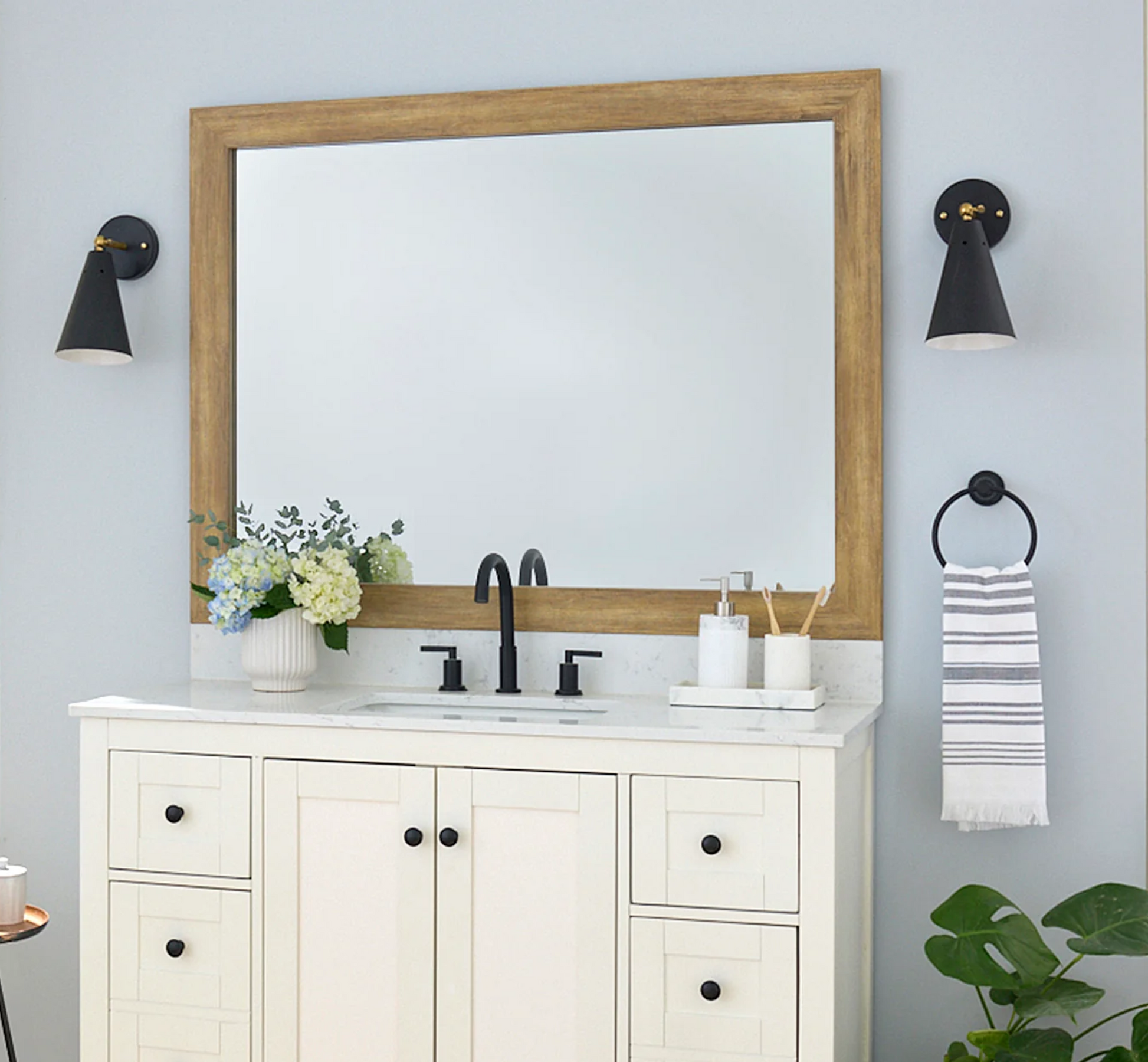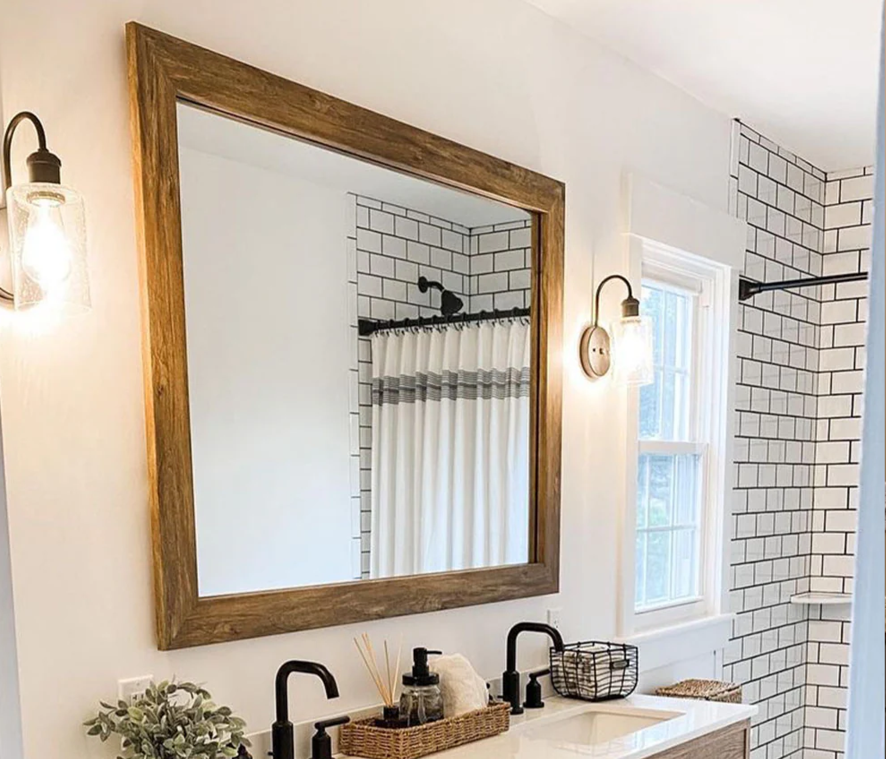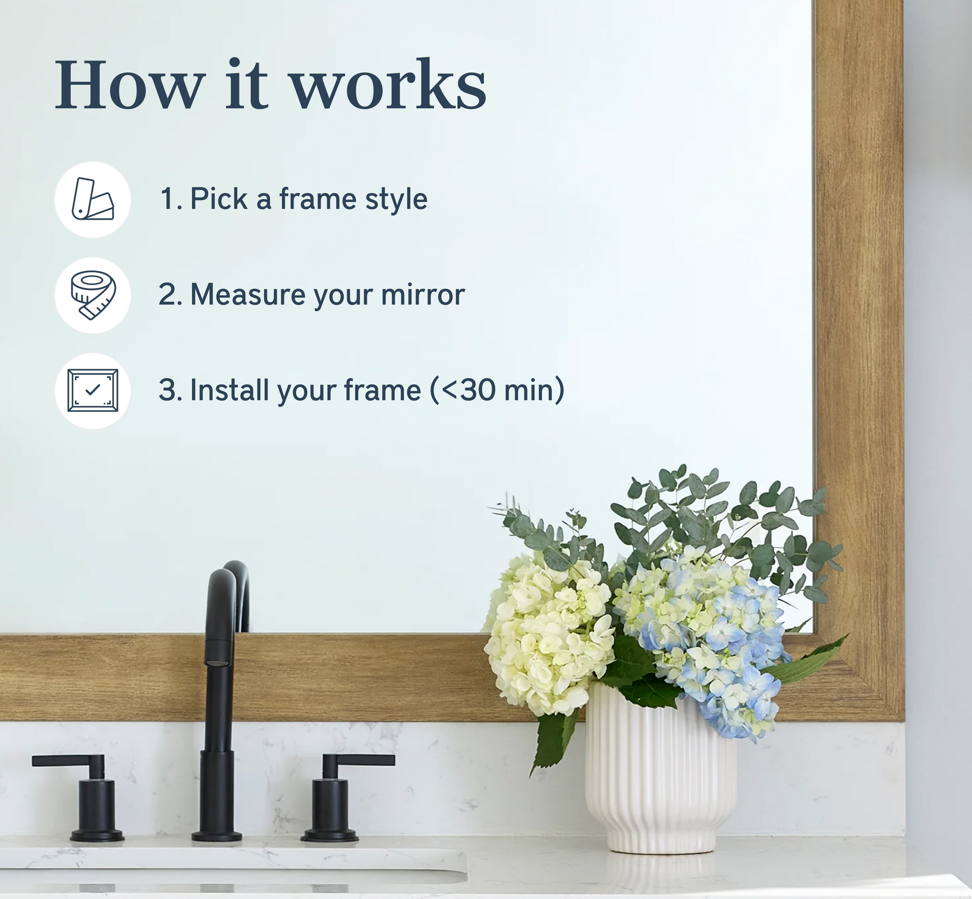 The perfect facelift for new construction, dated, or decaying bathroom mirrors.