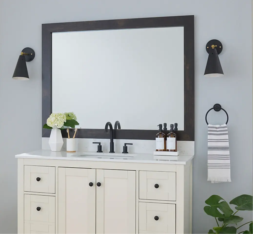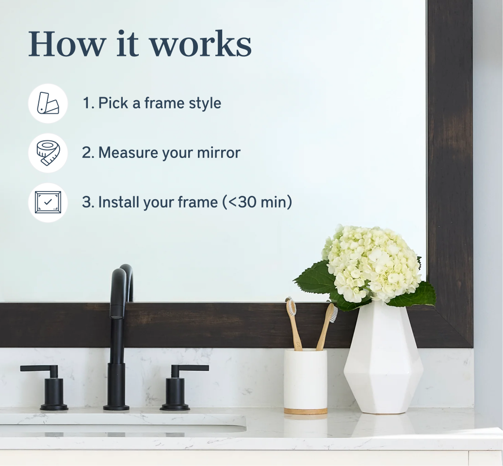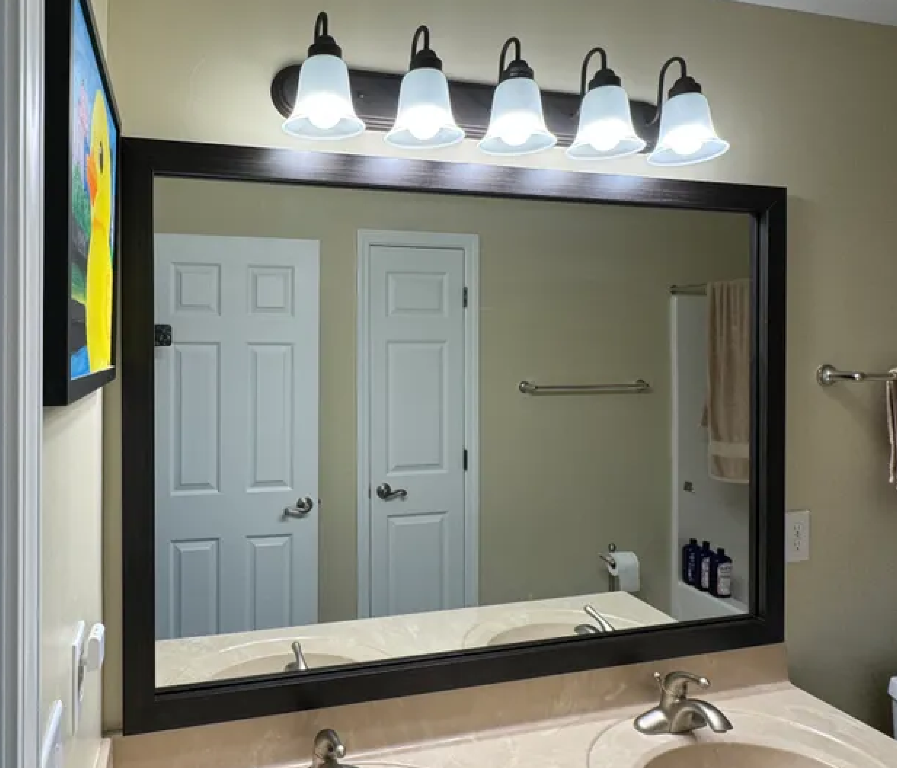 The perfect facelift for new construction, dated, or decaying bathroom mirrors.