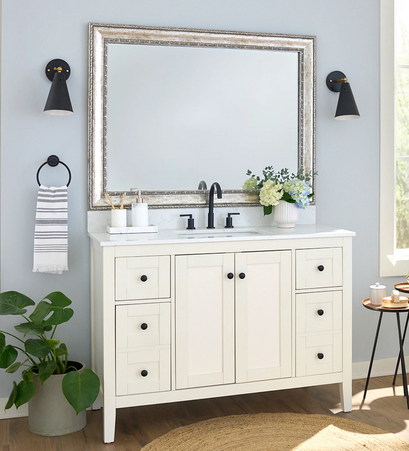The perfect facelift for new construction, dated, or decaying bathroom mirrors.
