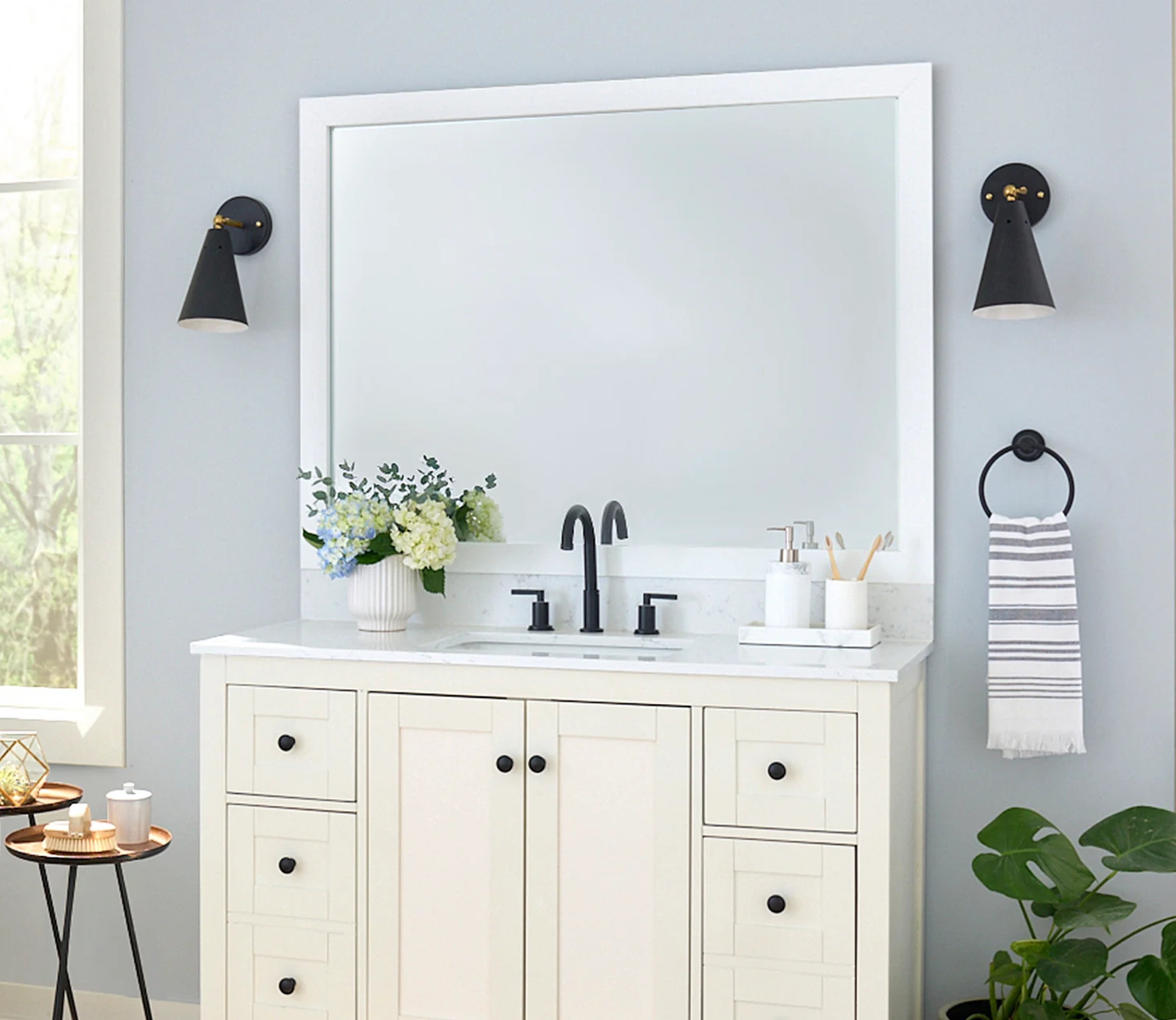 The perfect facelift for new construction, dated, or decaying bathroom mirrors.