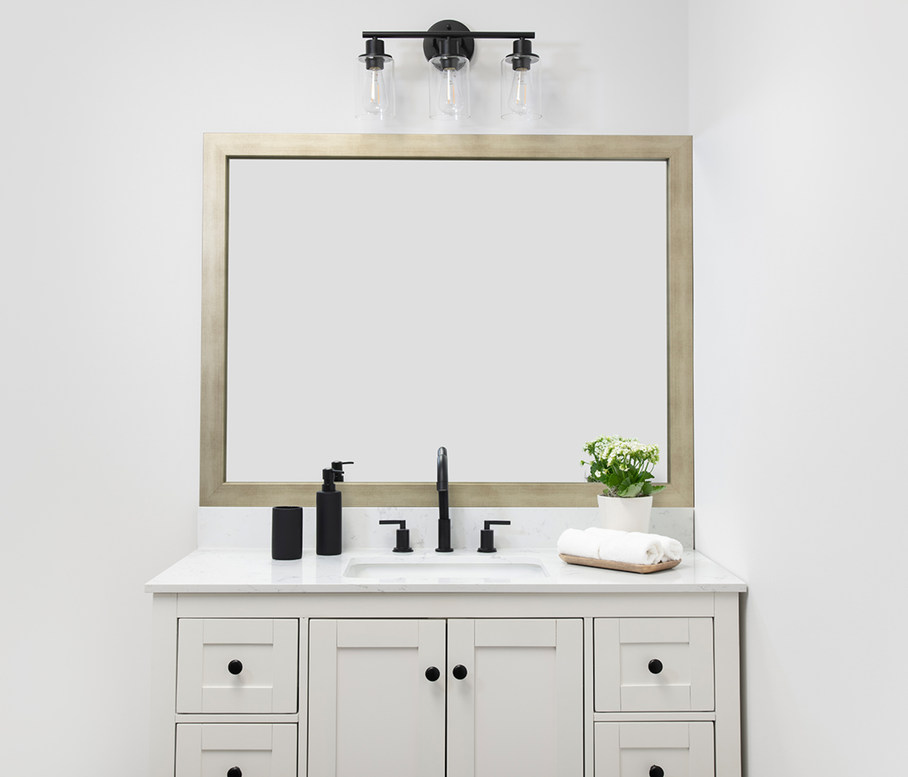 The perfect facelift for new construction, dated, or decaying bathroom mirrors.