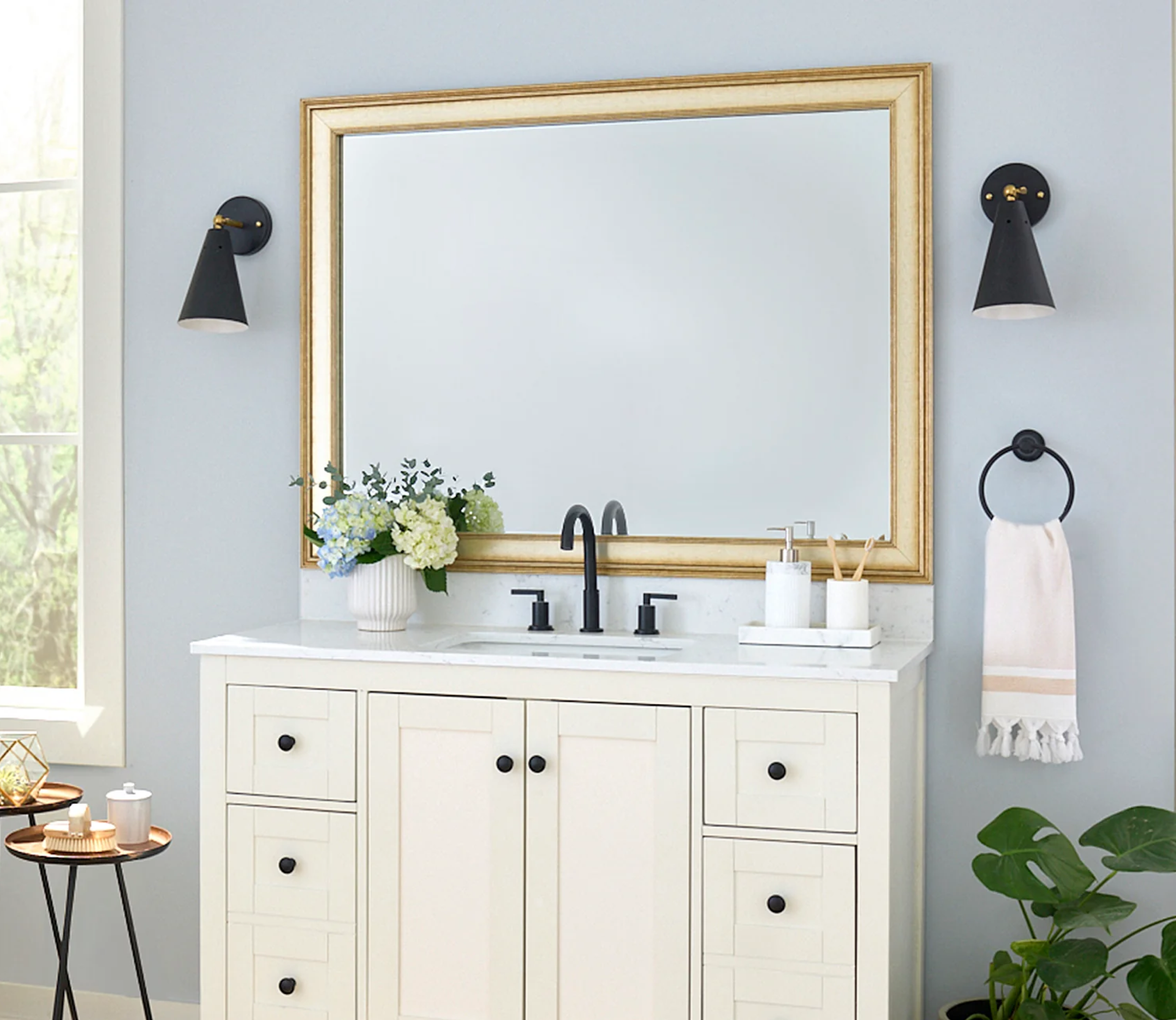 The perfect facelift for new construction, dated, or decaying bathroom mirrors.