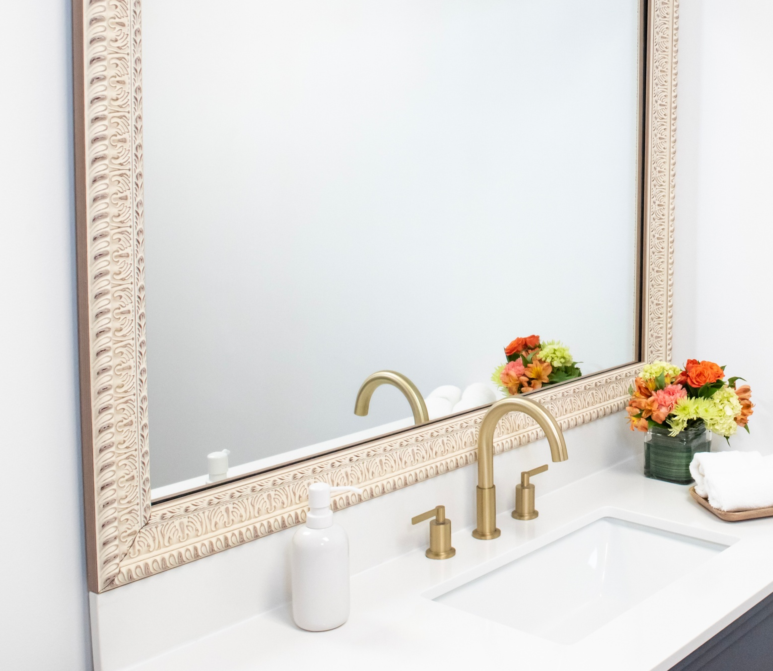 The perfect facelift for new construction, dated, or decaying bathroom mirrors.