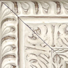 Locate placement corner blocks and remove tape backing from the blocks. Lift frame into place so that it covers the mirror surface evenly on all sides. Once in place, press the placement corner blocks to both upper inside frame corners, as shown.