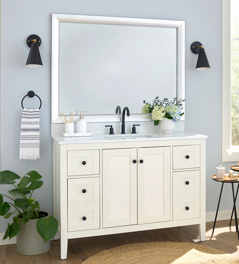 The perfect facelift for new construction, dated, or decaying bathroom mirrors.