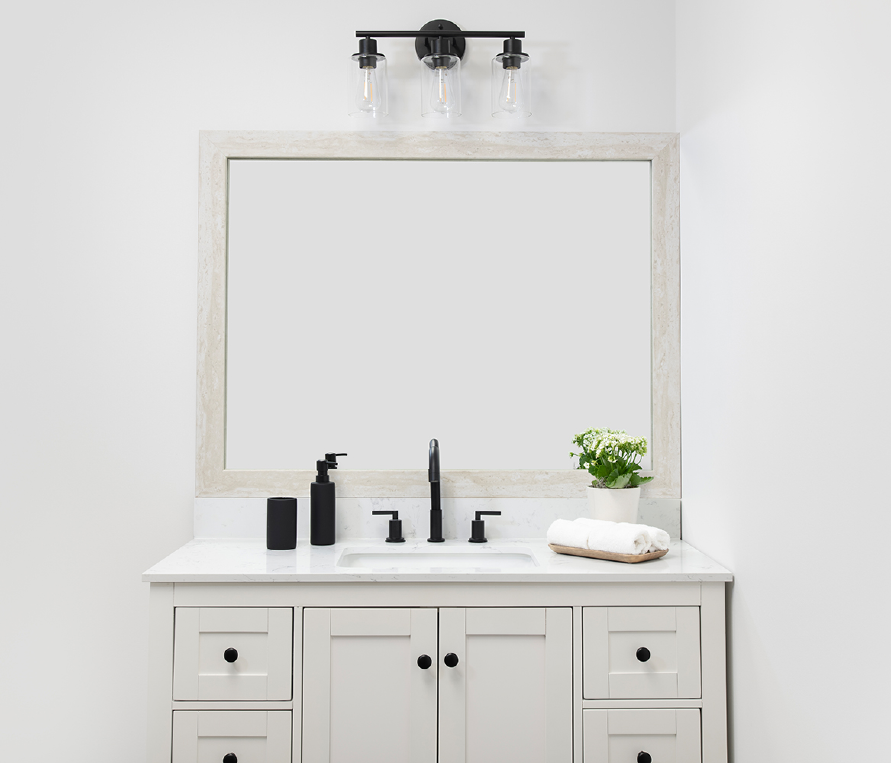 The perfect facelift for new construction, dated, or decaying bathroom mirrors.